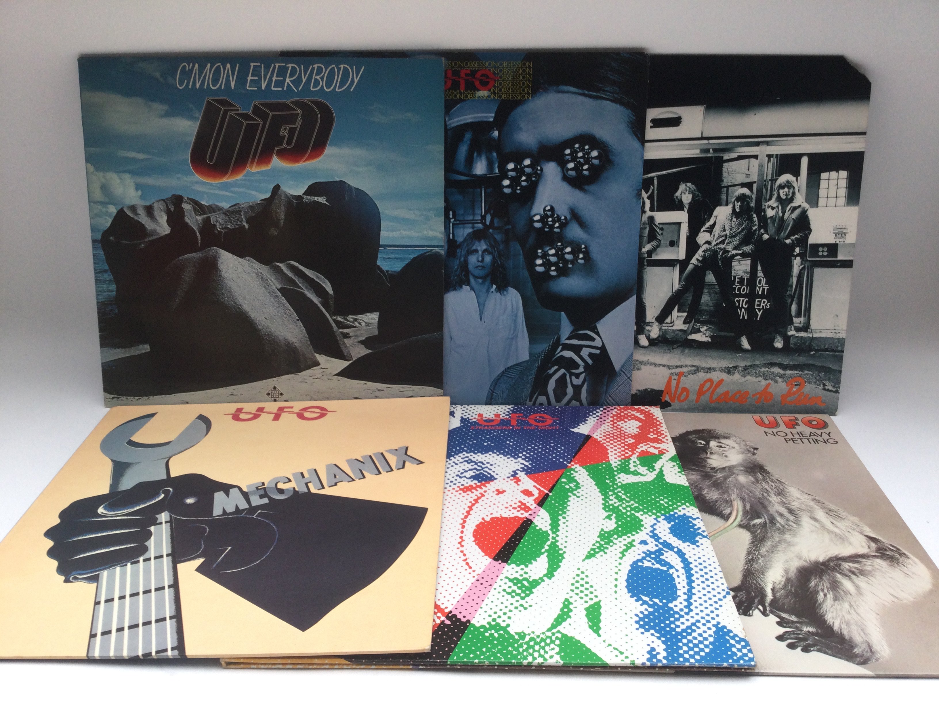 Six UFO LPs comprising 'No Place To Run', 'Mechanix', 'Strangers In The Night' and others.