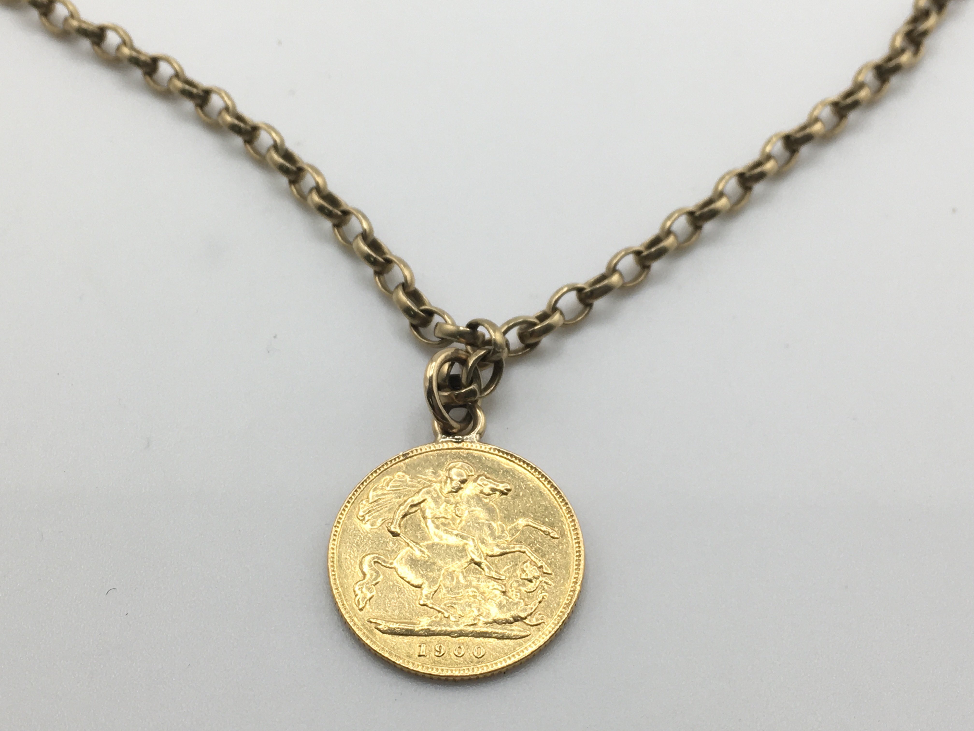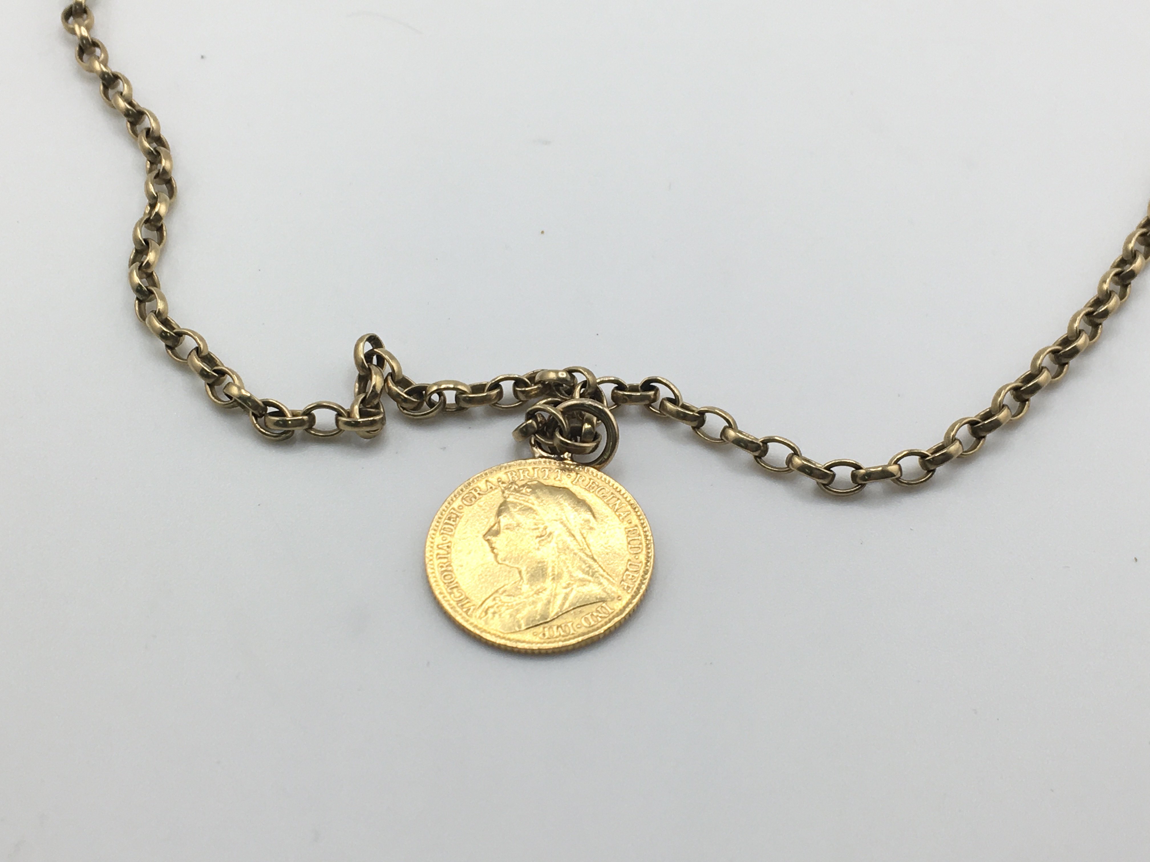 A 1900 half Sovereign on a 9ct gold belcher chain. Total weight 14.7g Postage A