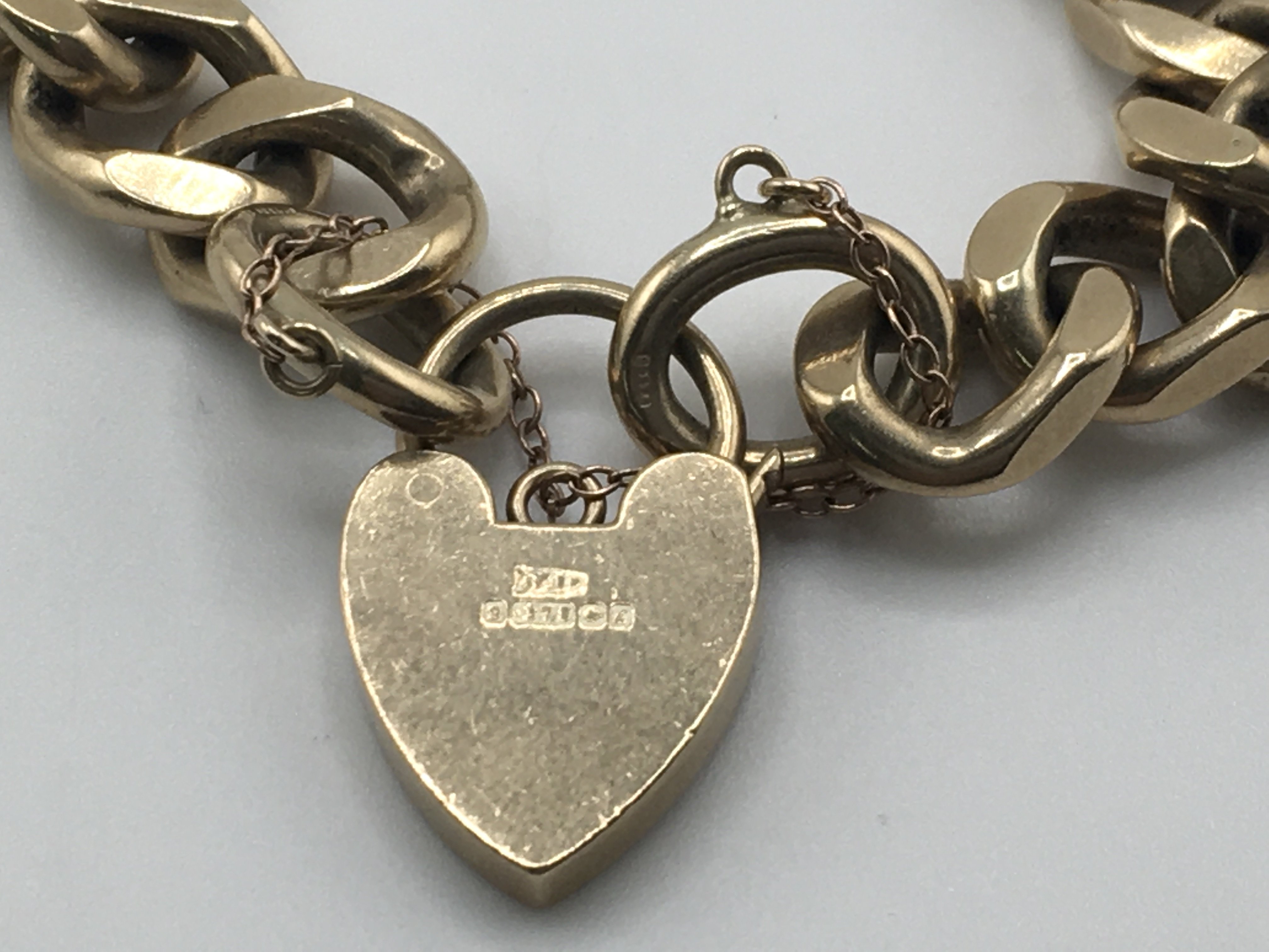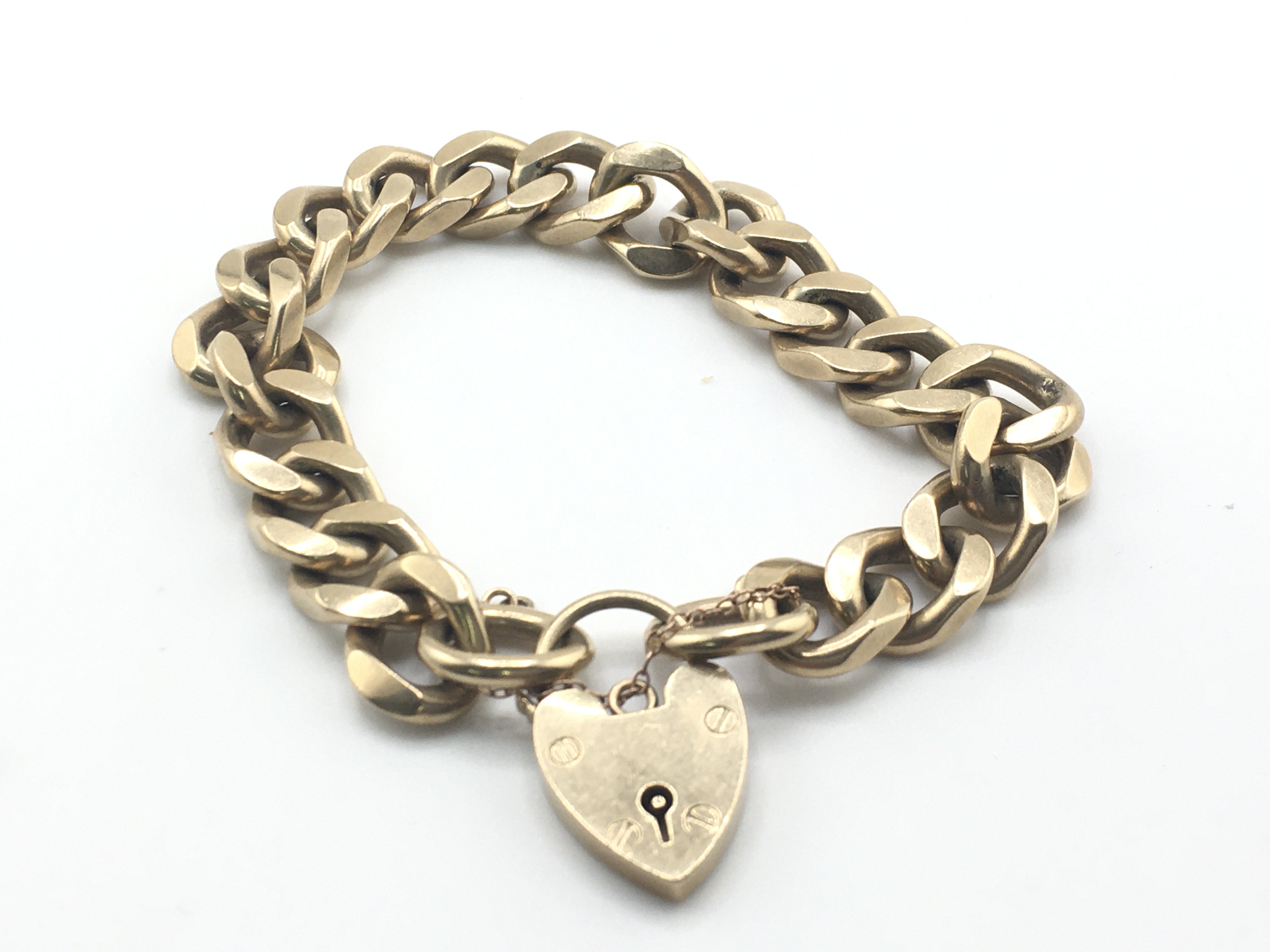 A9ct gold open link bracelet with heart padlock clasp. 59g Postage A