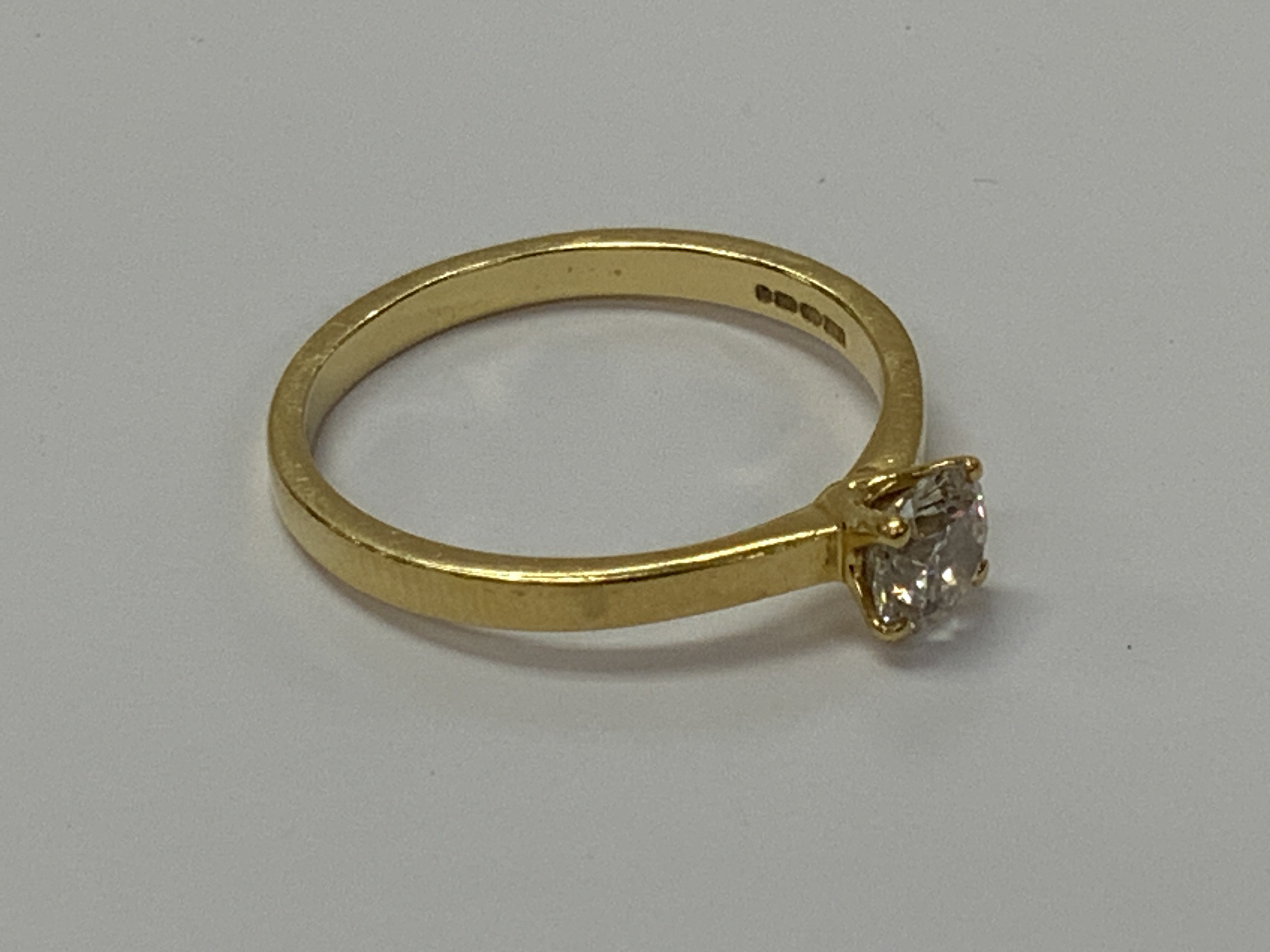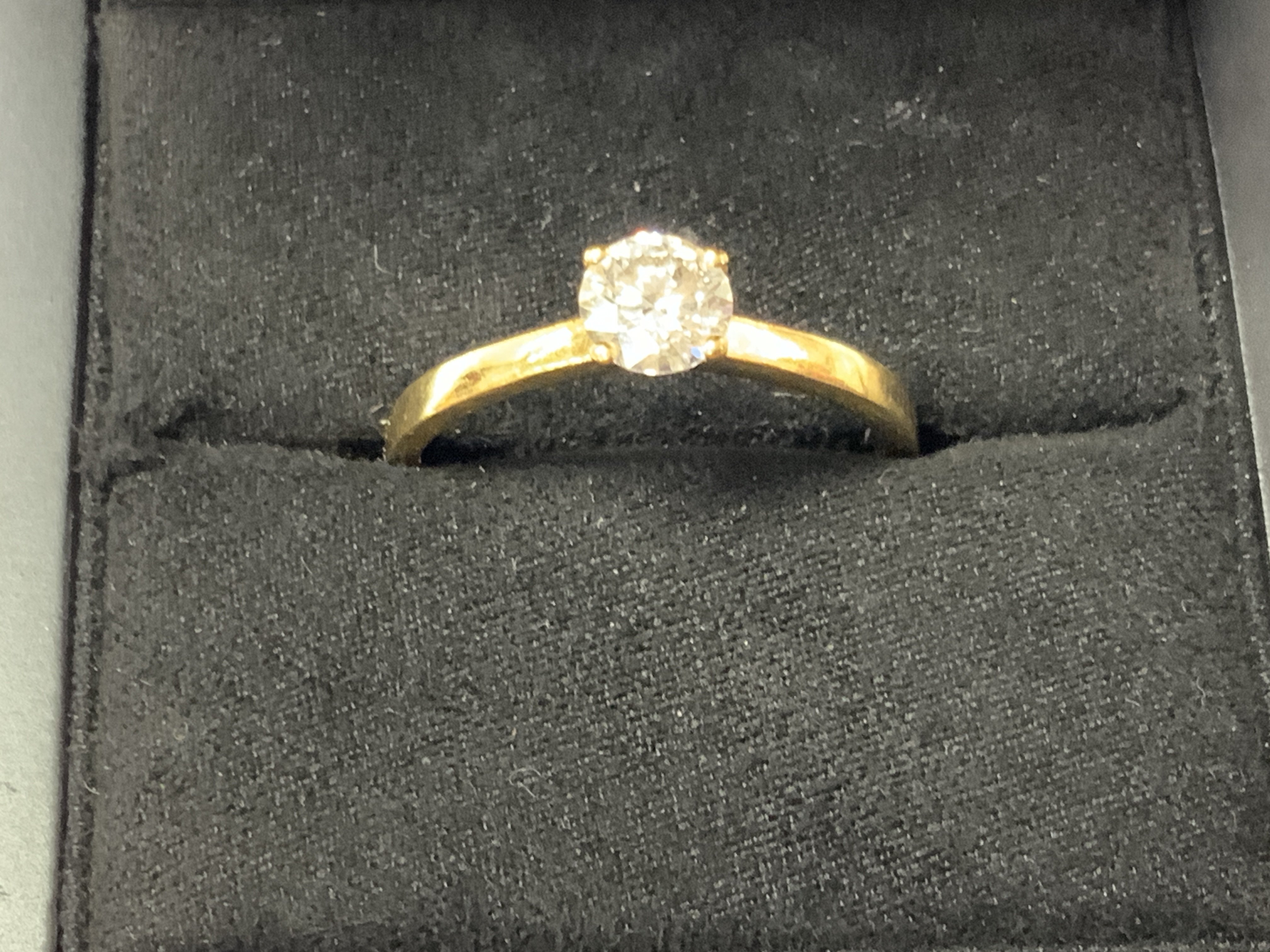 A 77 diamond solitaire ring with box. The diamond with GIA certificate. 0.63 of carat, colour J VS2, ring size approximately Q. Postage category A.