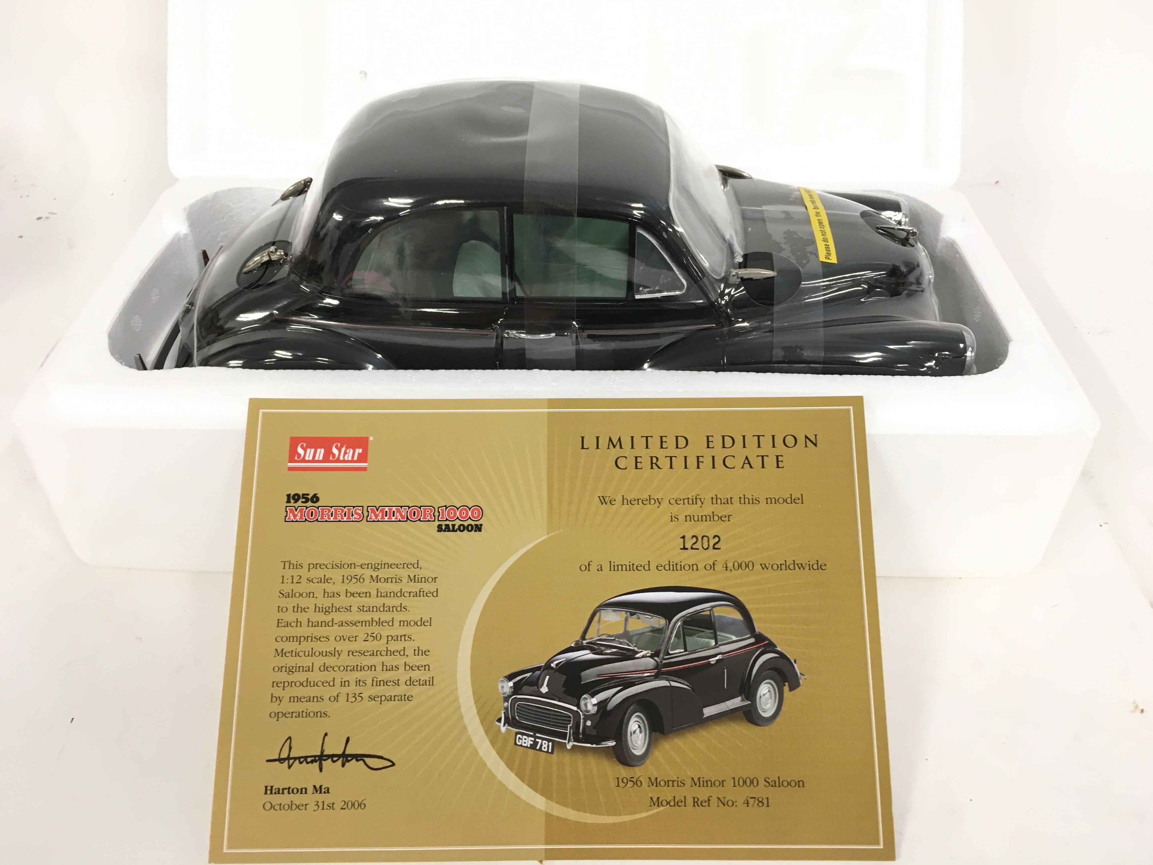 A Boxed Sunstar 1956 Morris Minor 1000 Saloon with Certificate.