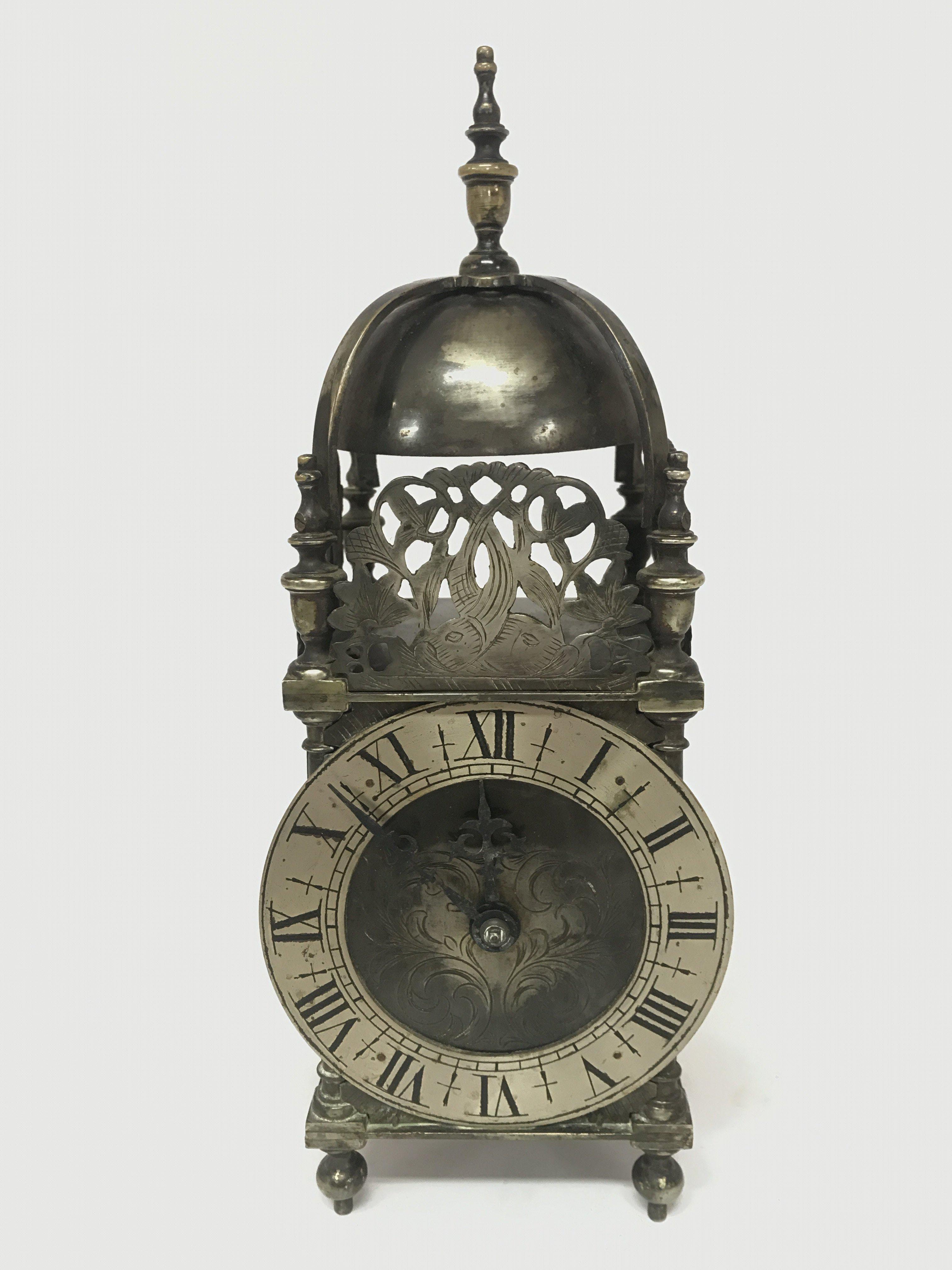 A vintage brass lantern clock with a windup French movement. 31cm tall. Seen working. Postage category C