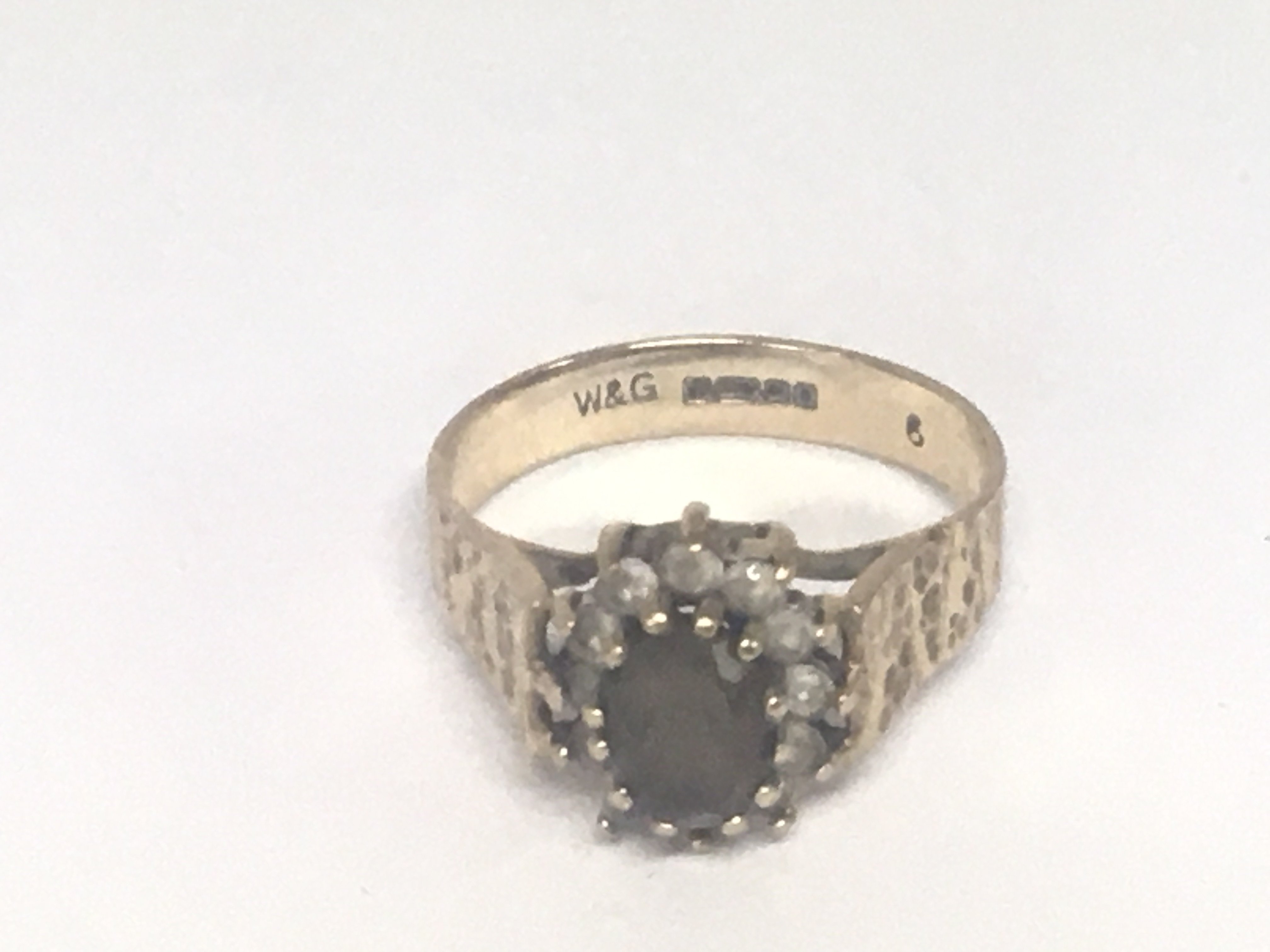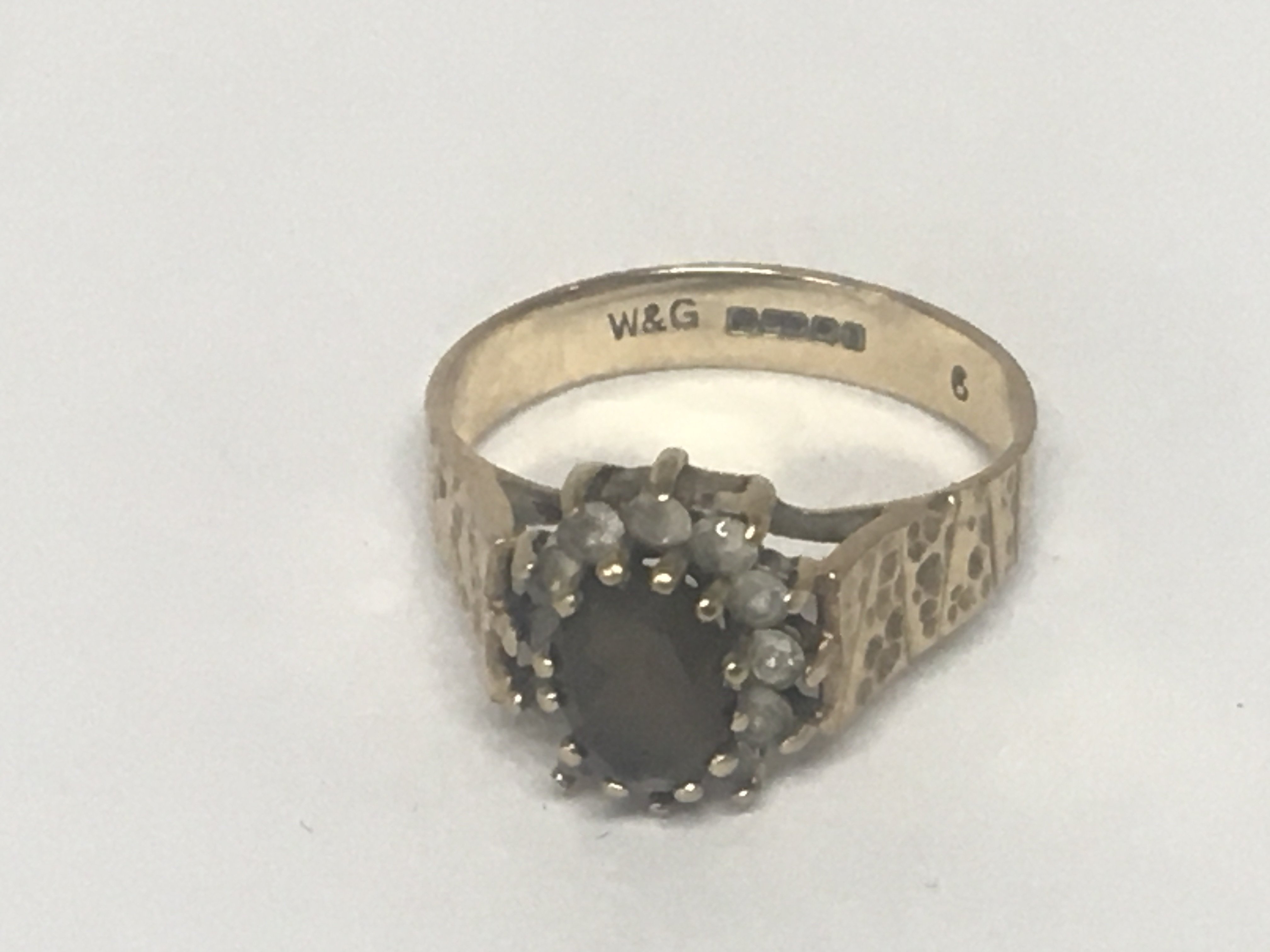 A 9carat gold ring set with a smoked quartz weight 2.5g ring size N.