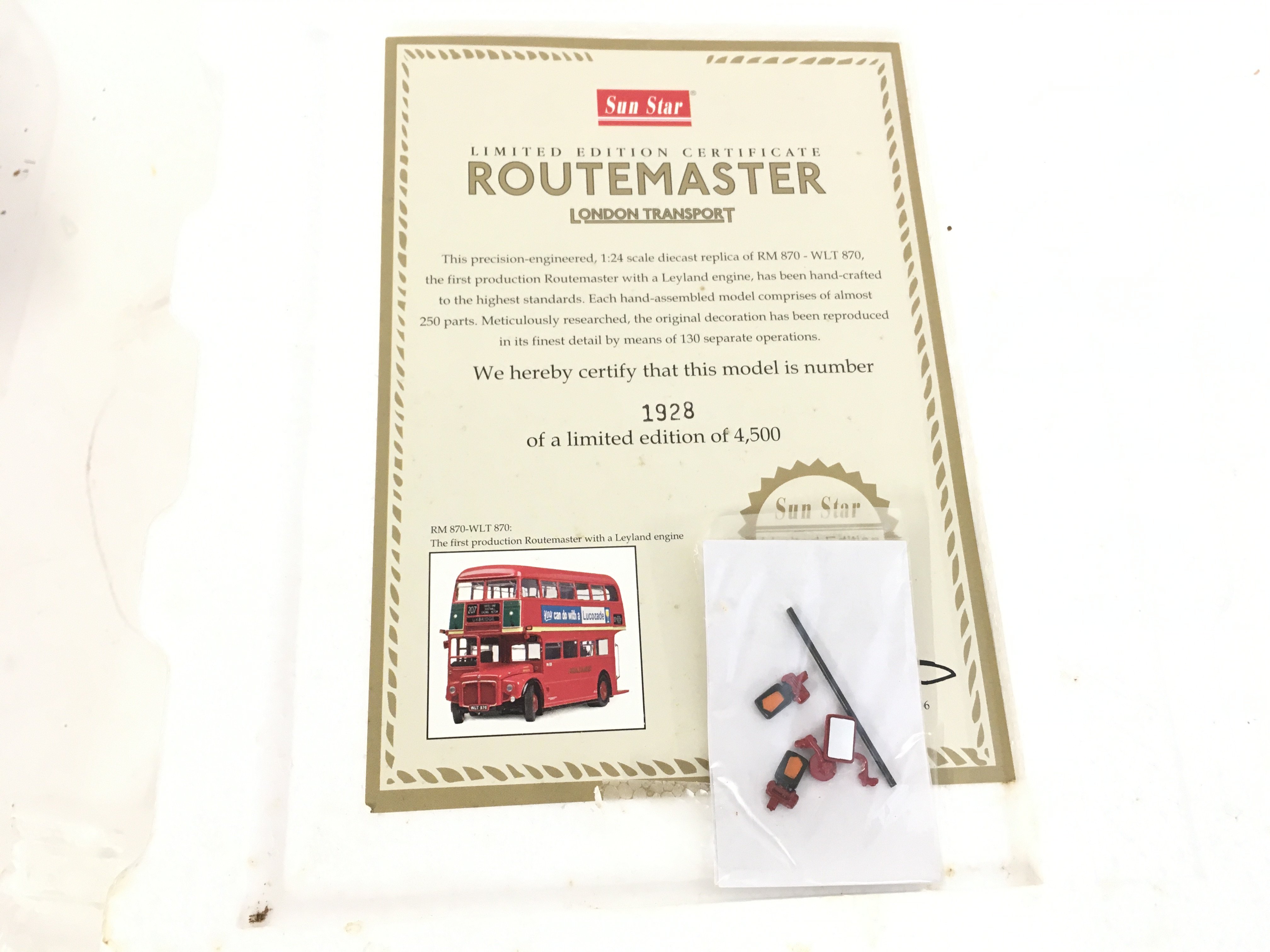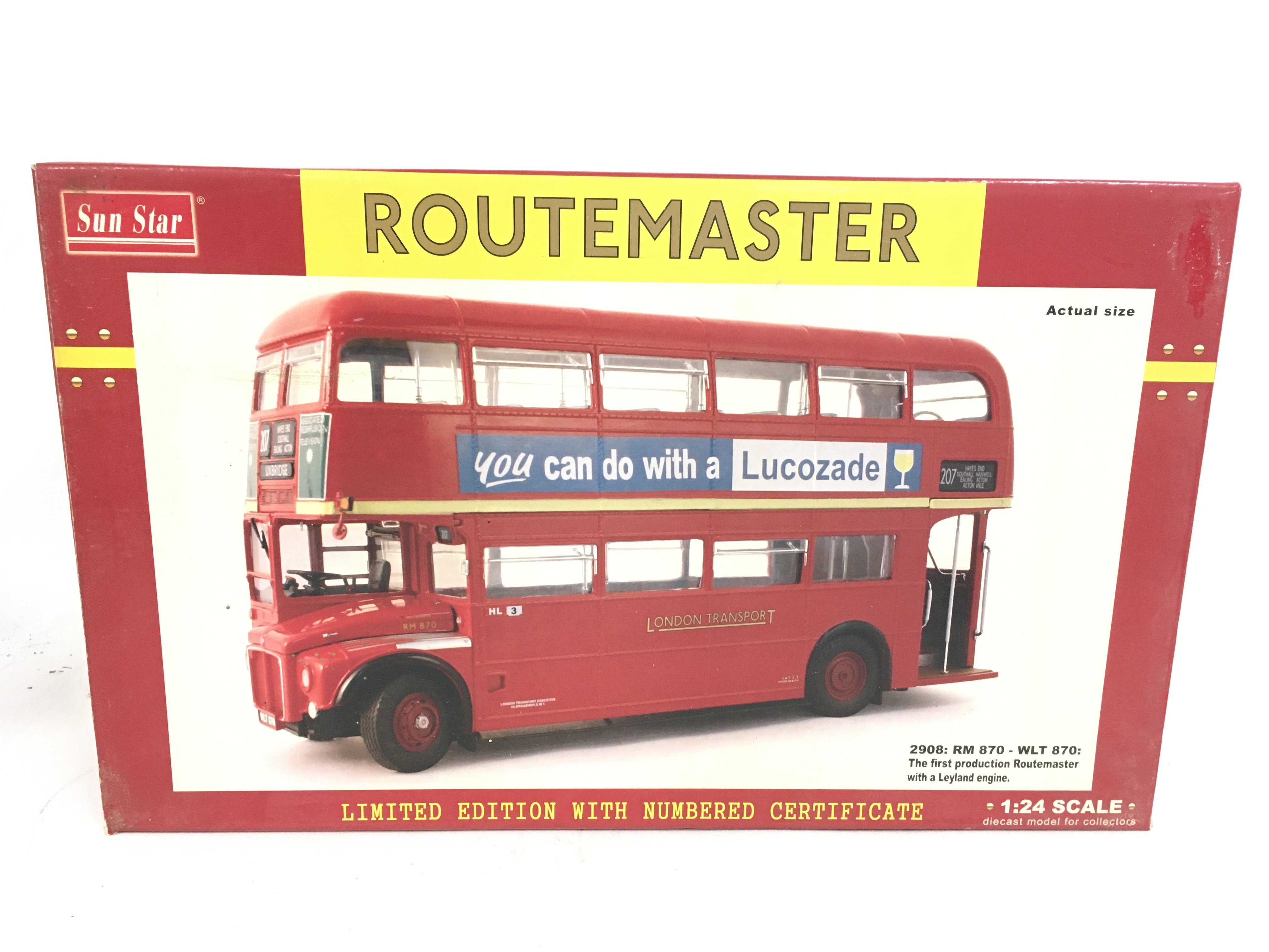 A Boxed Sun Star Routemaster 2908:RM 870-WLT 870 Bus 1:24 Scale. With Certificate and Mirrors.