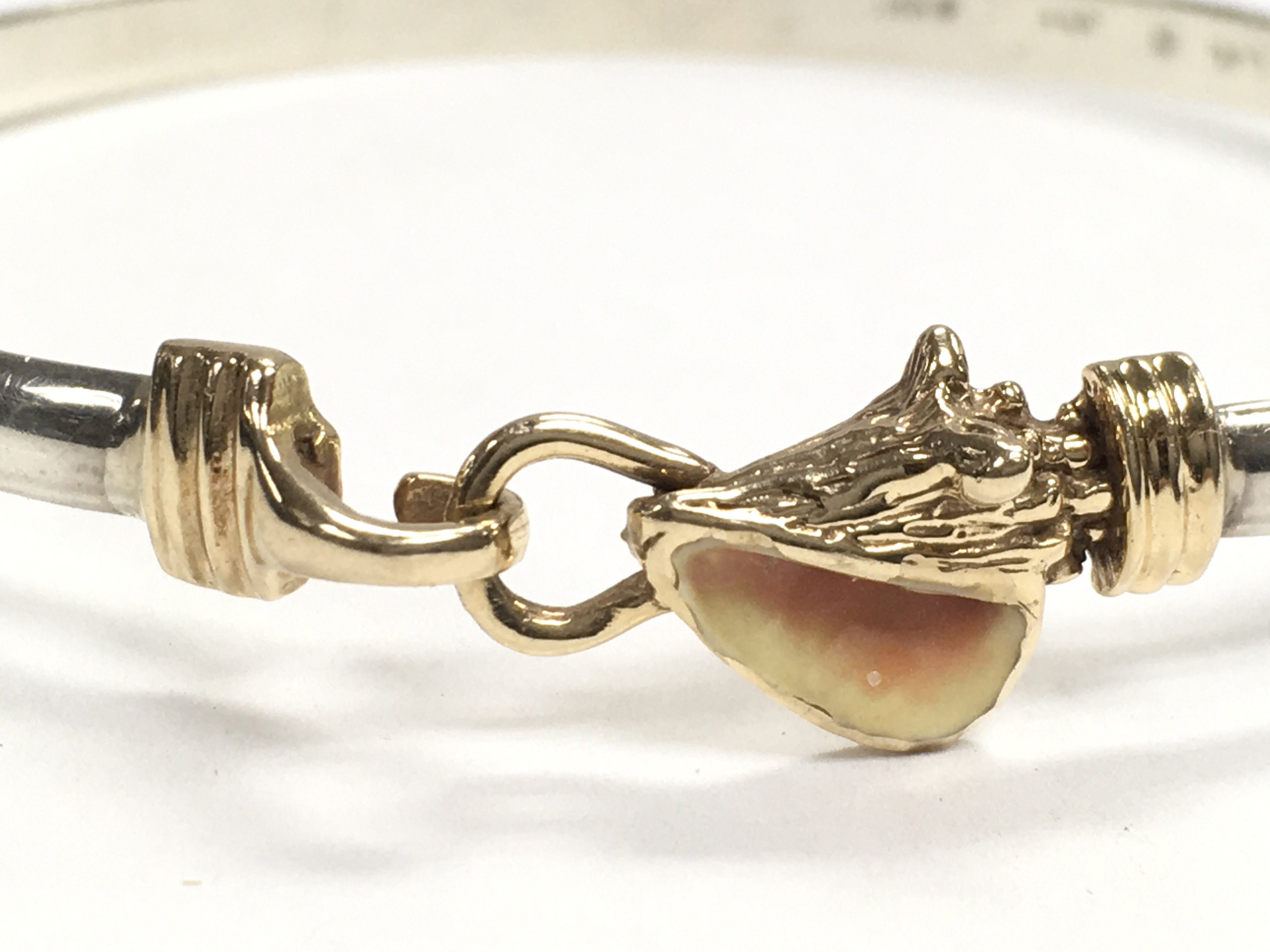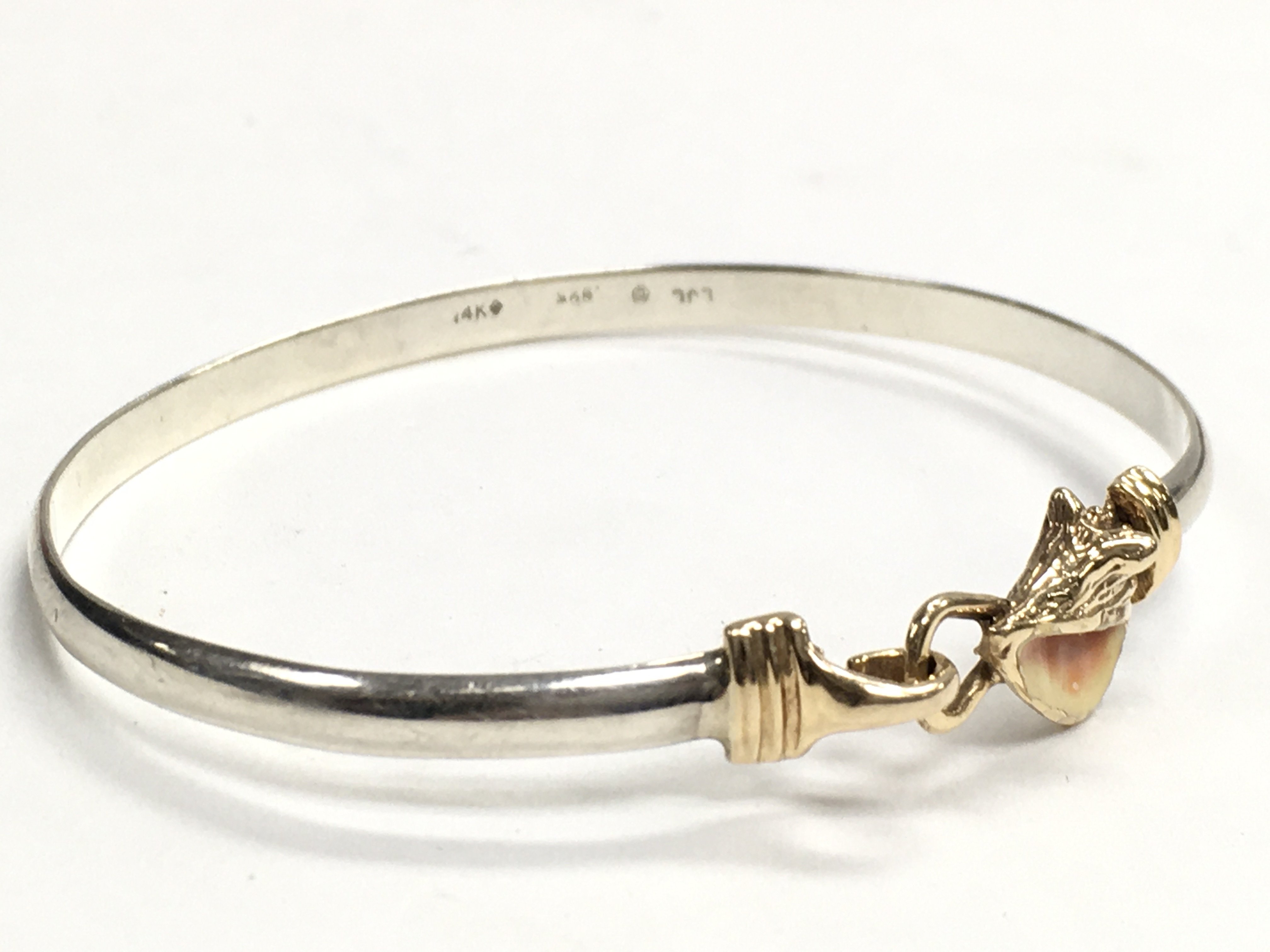 A 14 carat gold and silver bangle , 9.4g. Postage category a