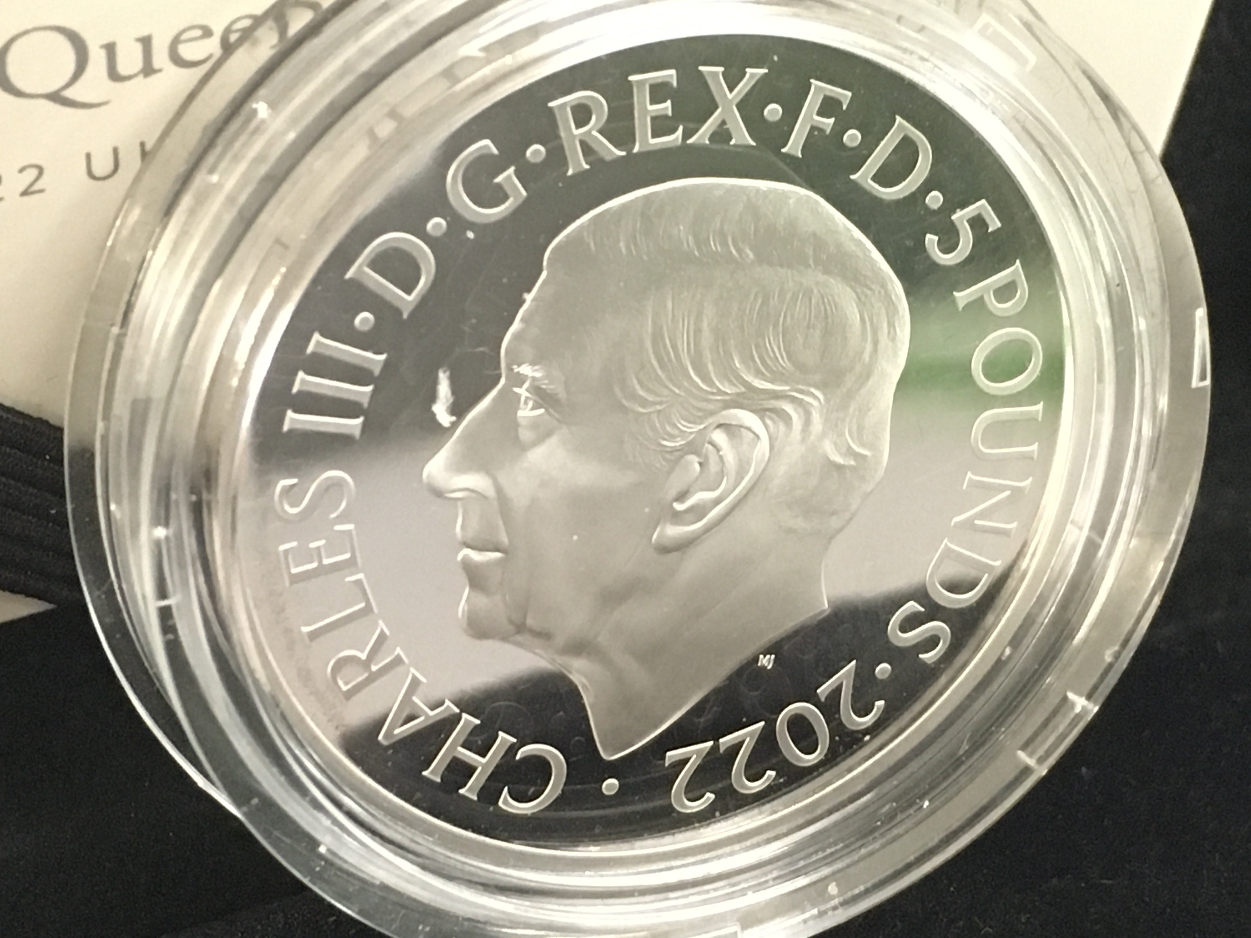 A Silver Proof 2022 UK 5 Her Majesty Queen Elizabeth II coin. Postage cat A