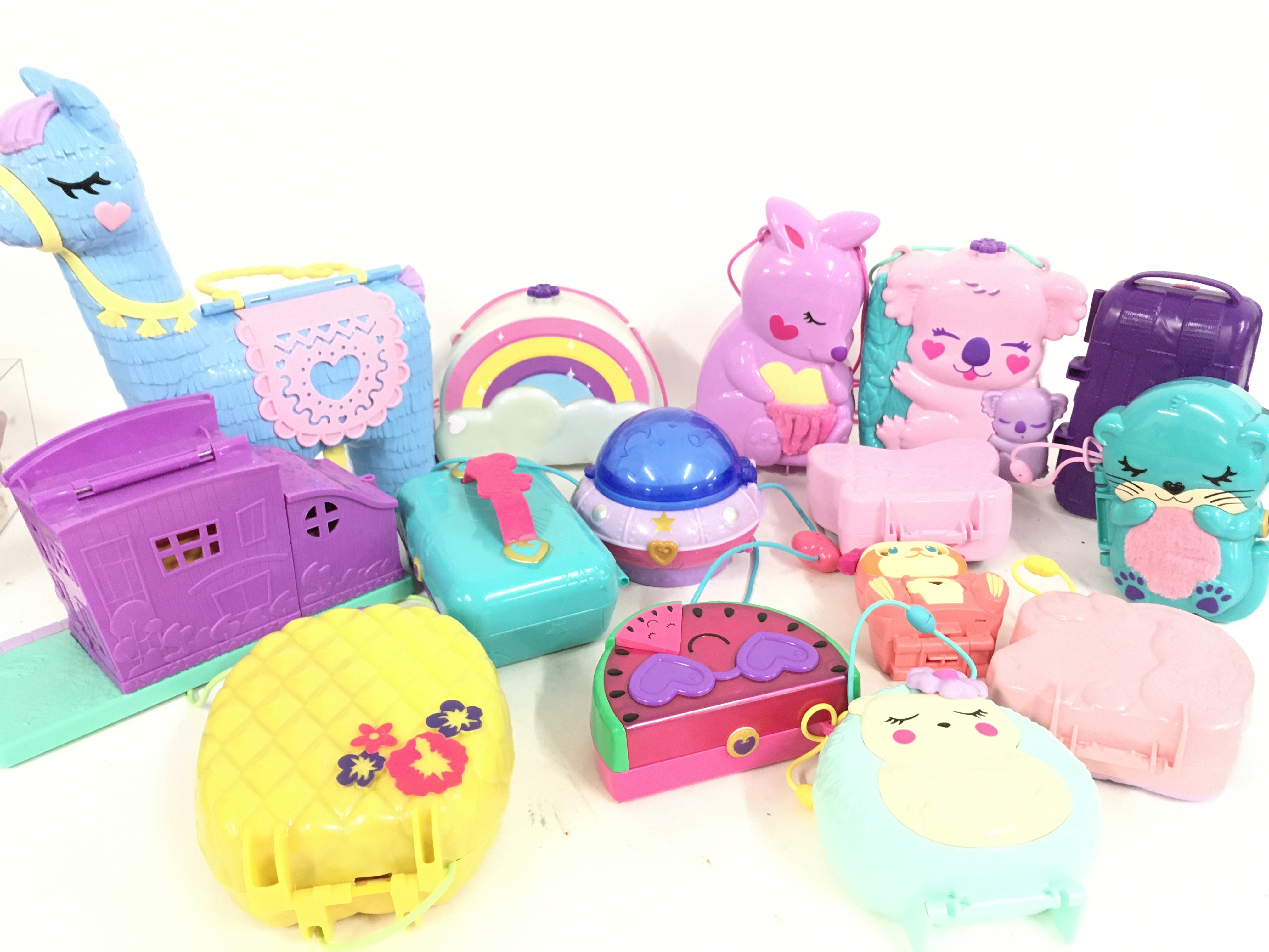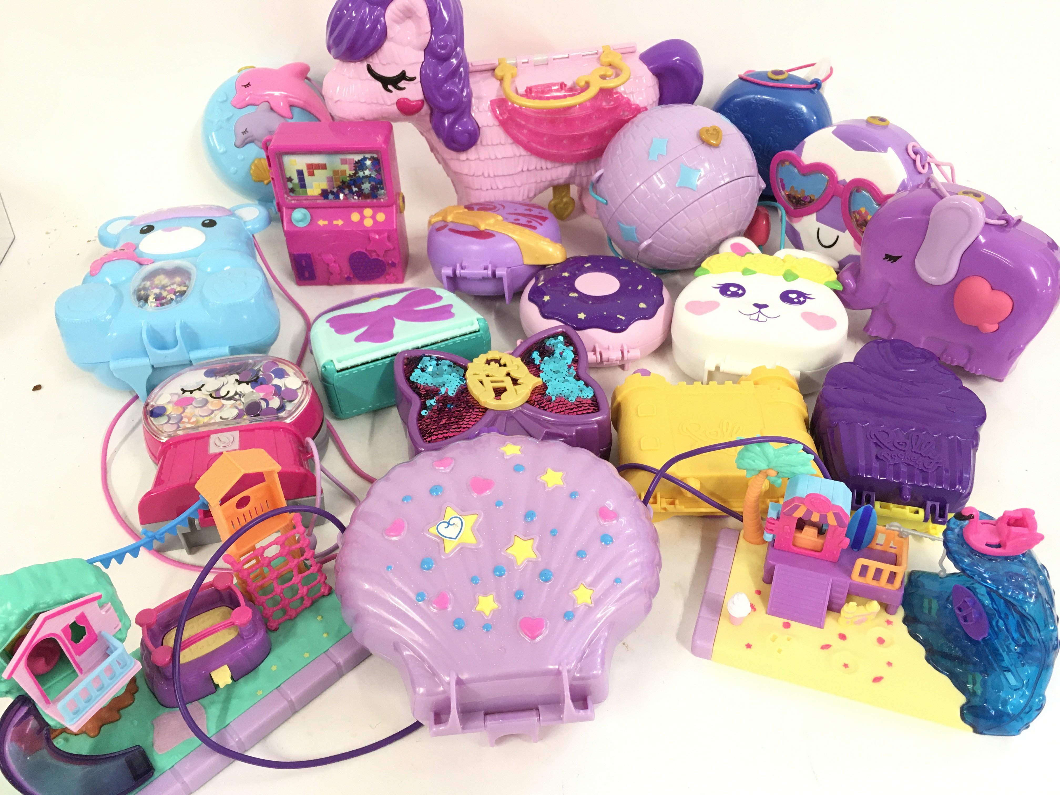 A Box Containing A Collection Of Polly Pockets And Accessories.