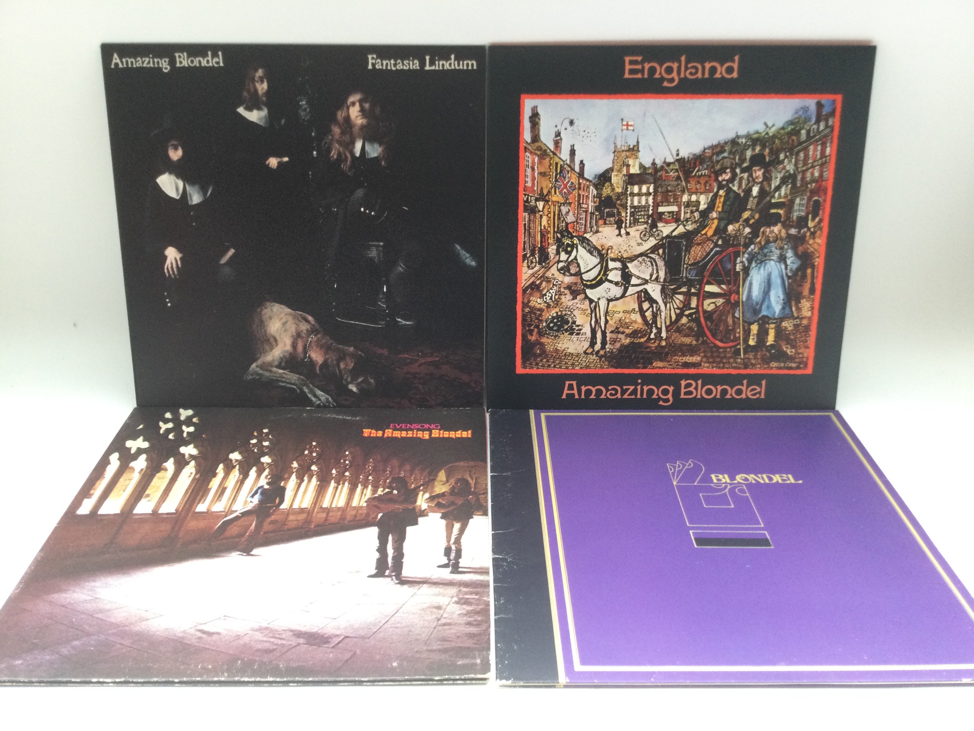 Four Amazing Blondel LPs comprising 'Fantasia Lindum', 'Evensong' and others.