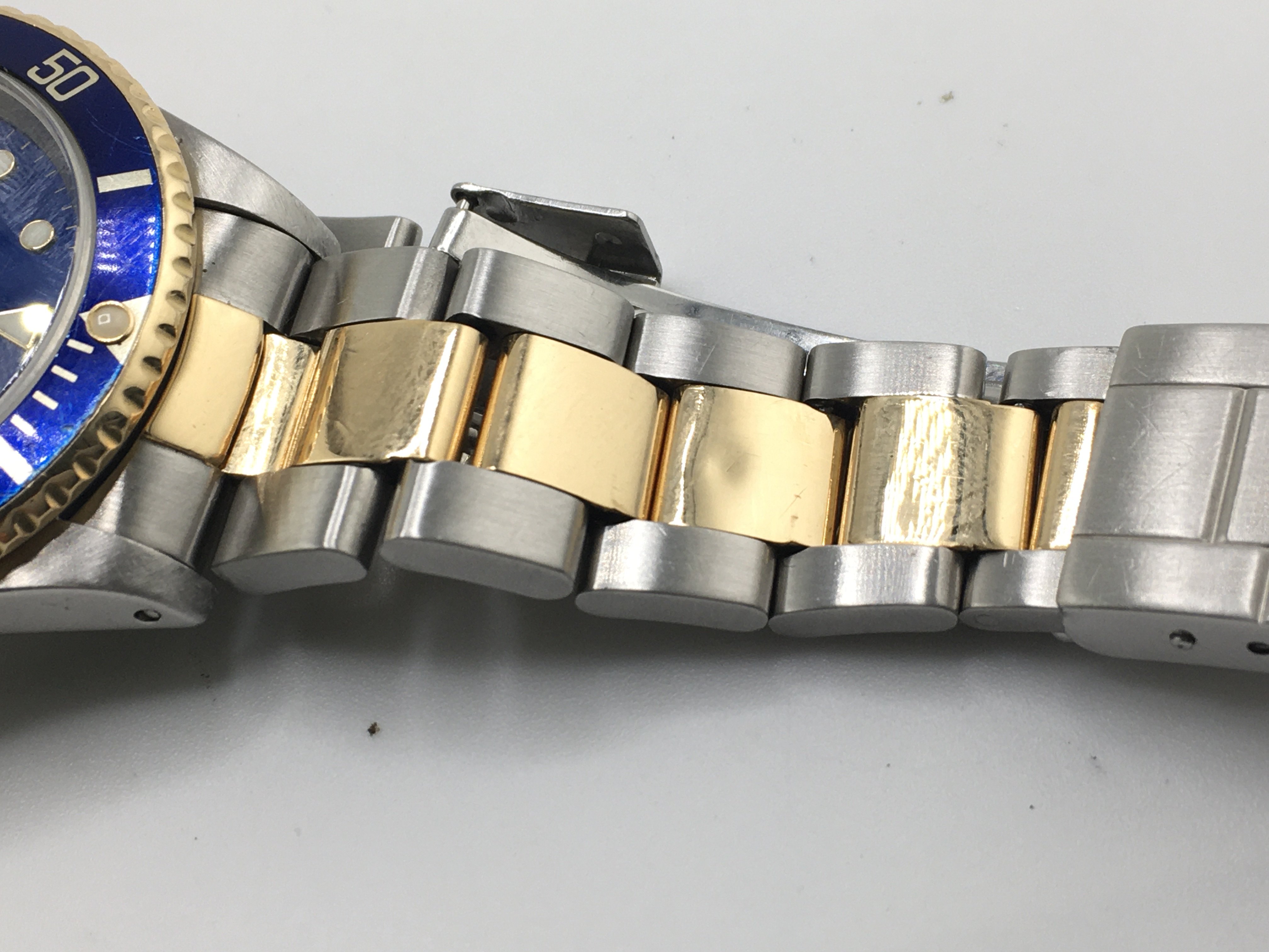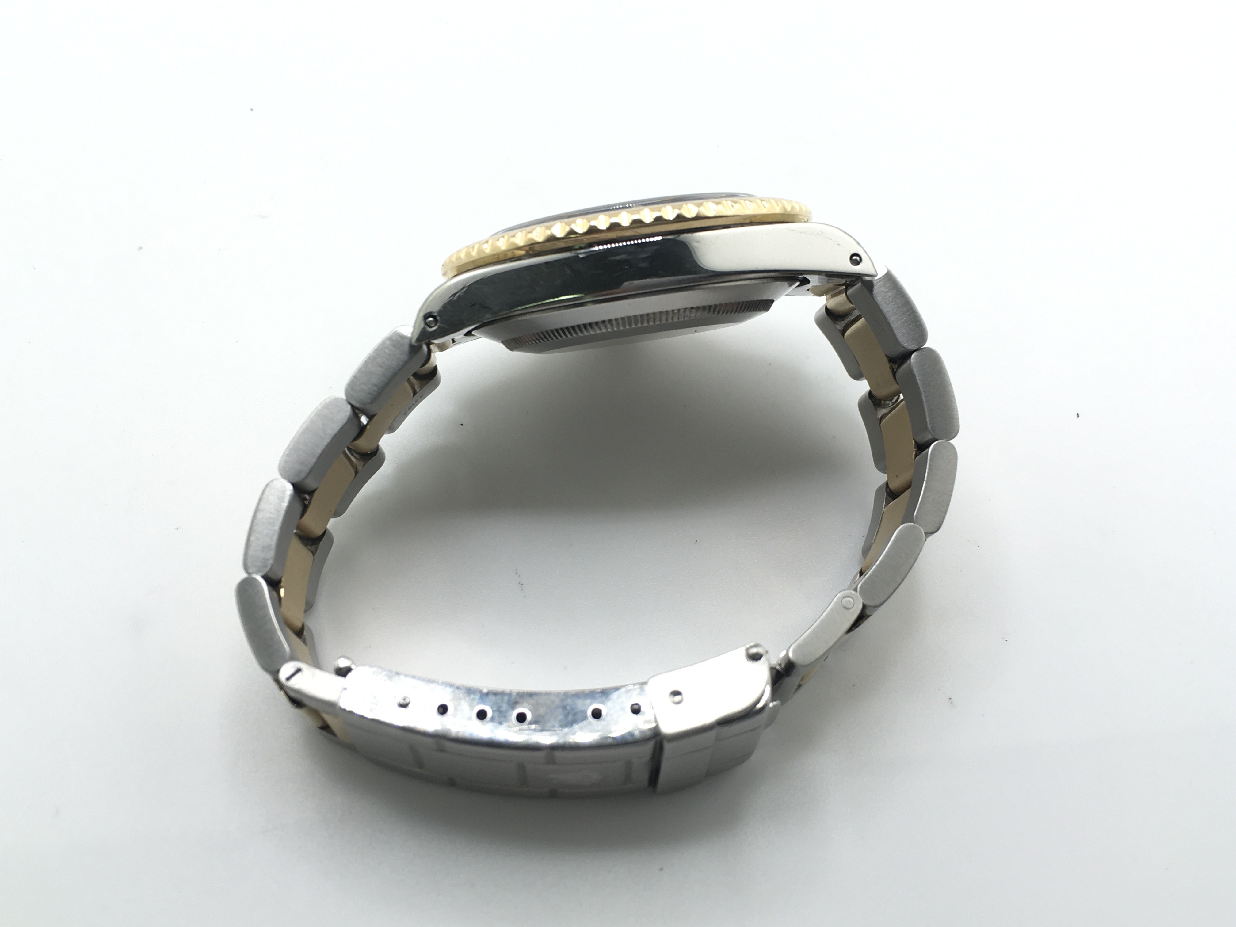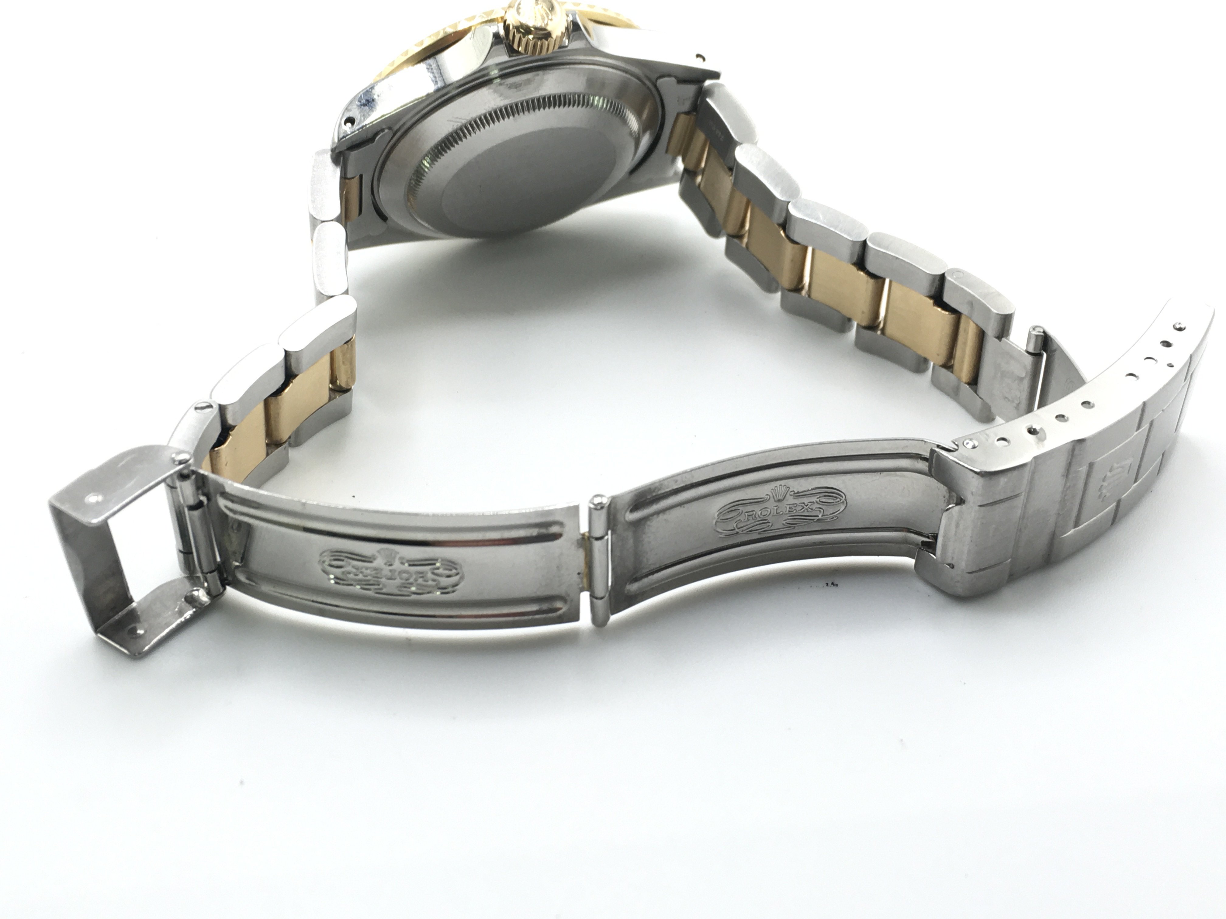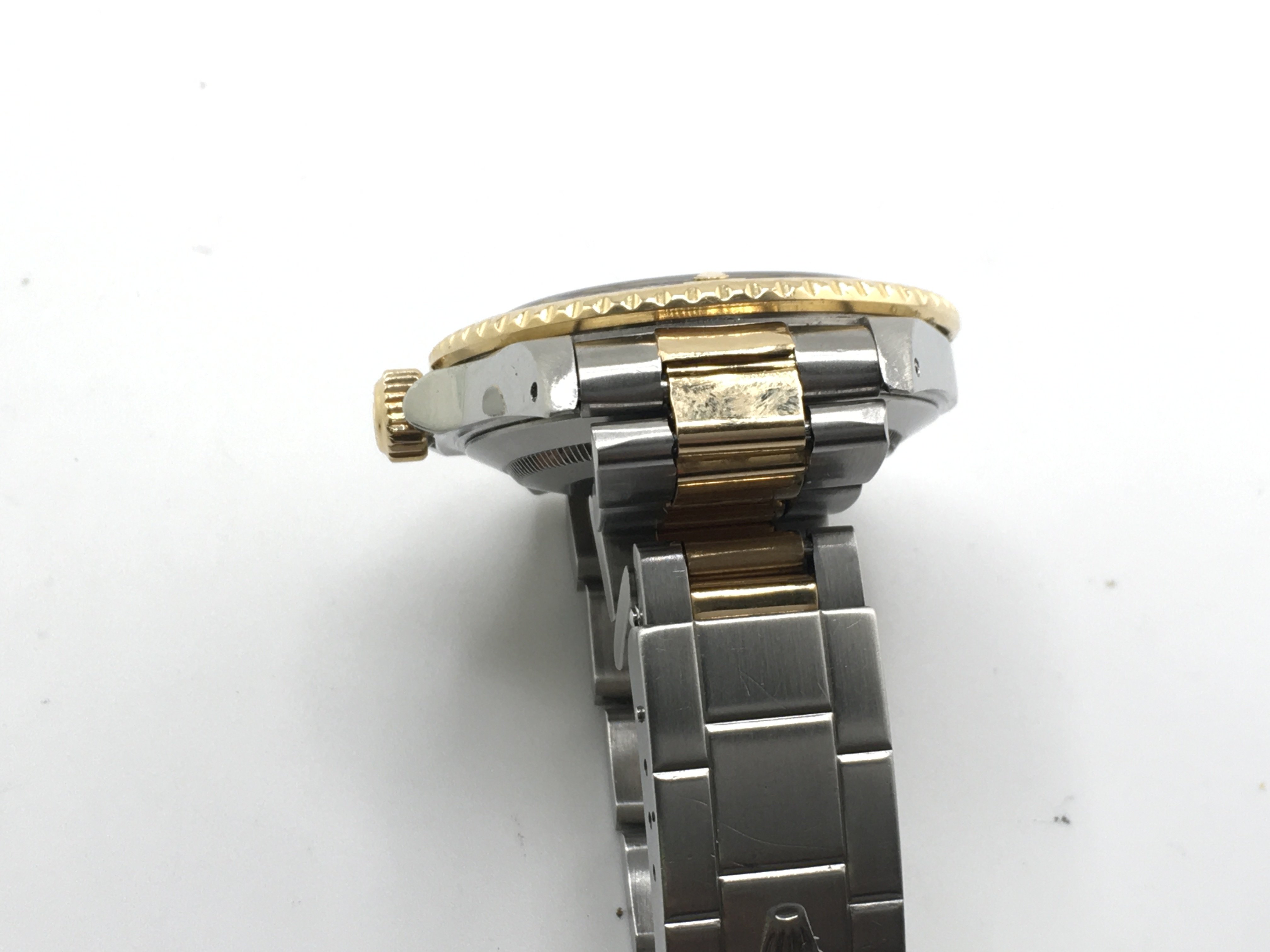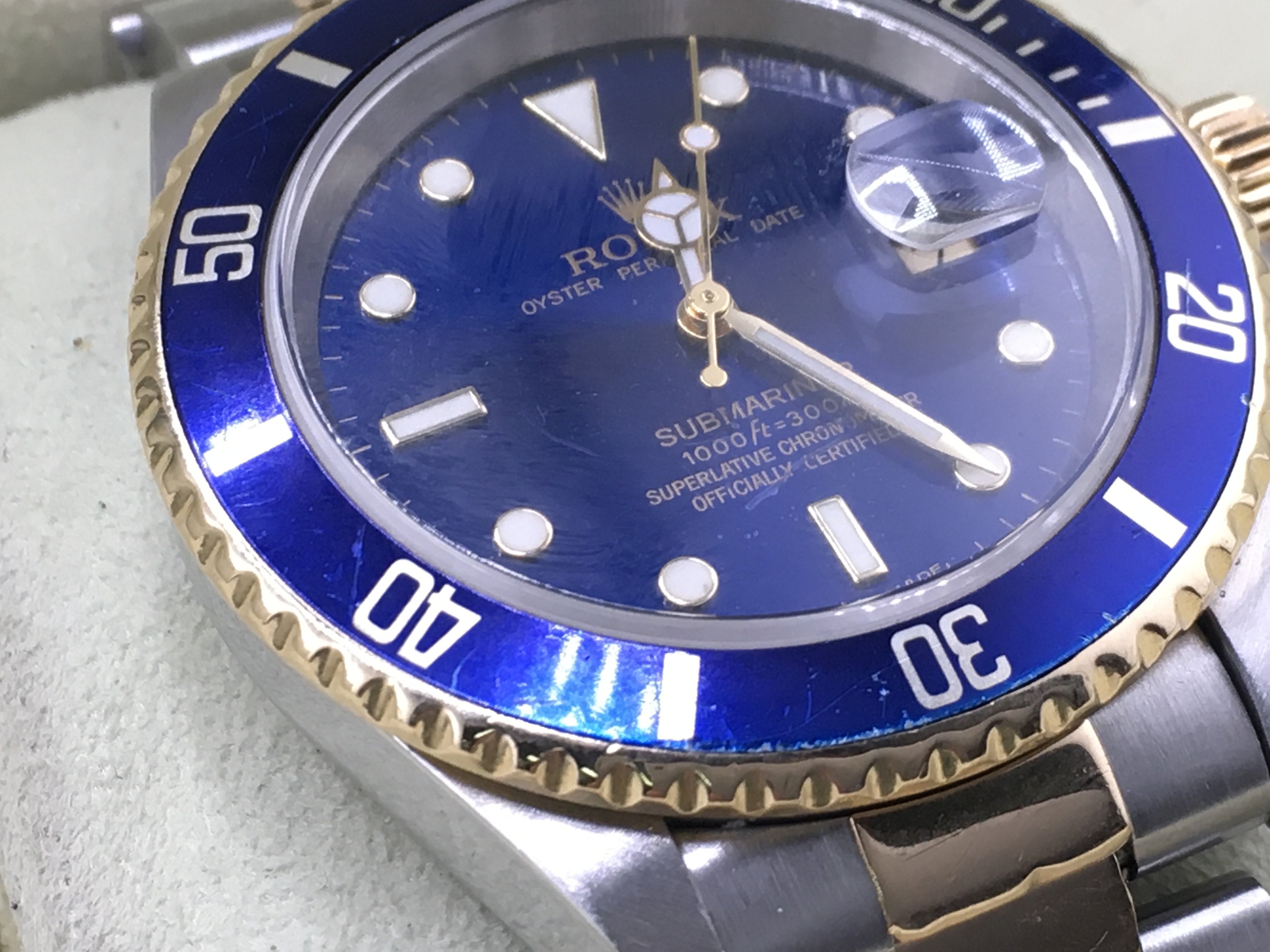 A rolex submariner ref 16613. Blue dial. 40mm gold and steel case. Seen running. Box and papers. The watch has signs of wear. Gold and steel bracelet with fold clasp.