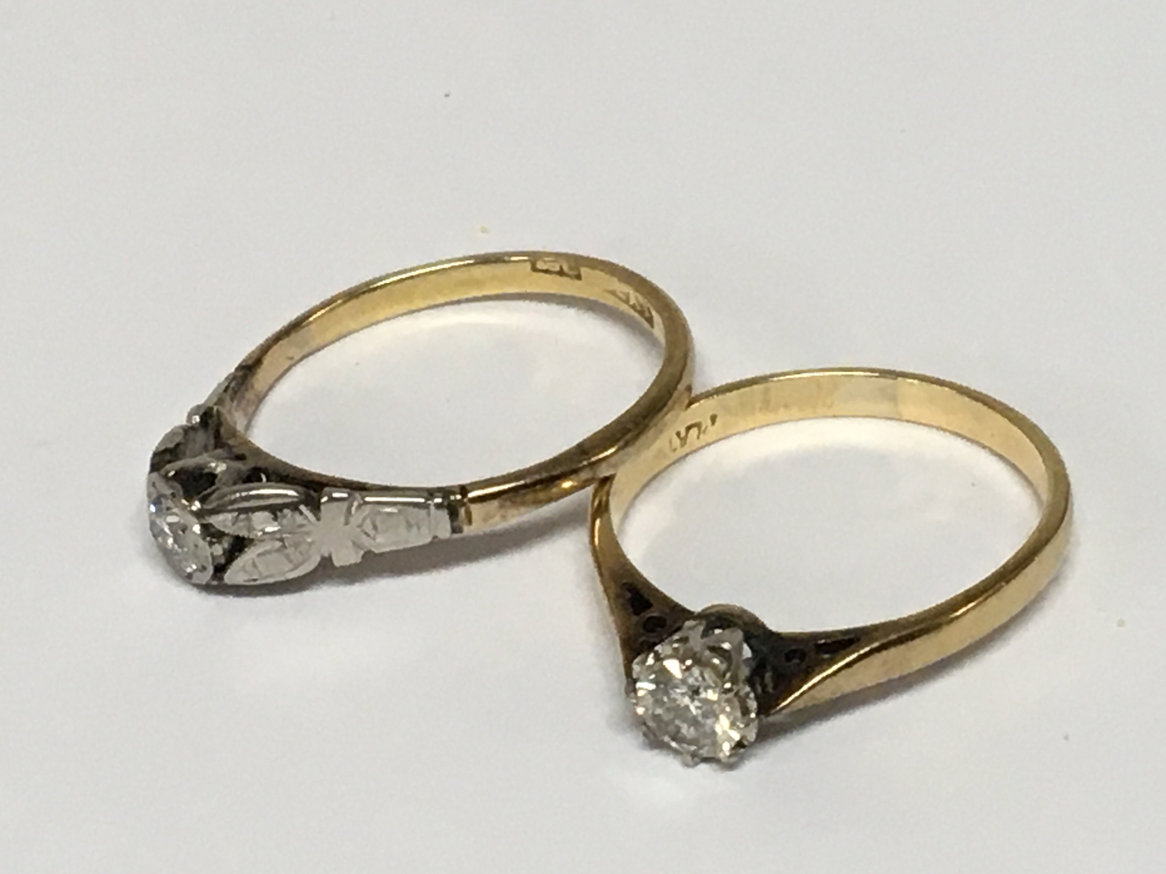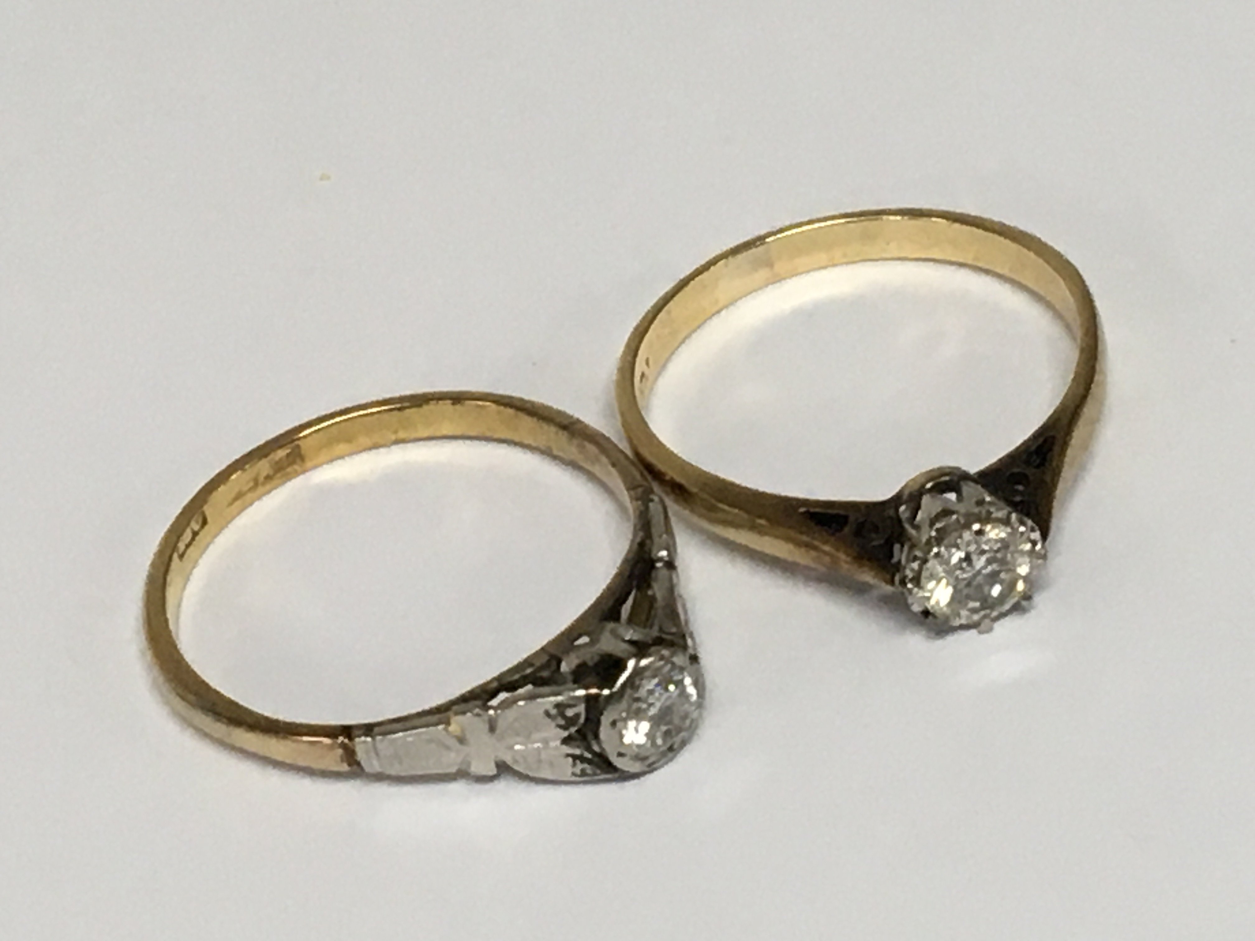 Two 18carat gold rings set with solitaire diamonds. Total weight 4g