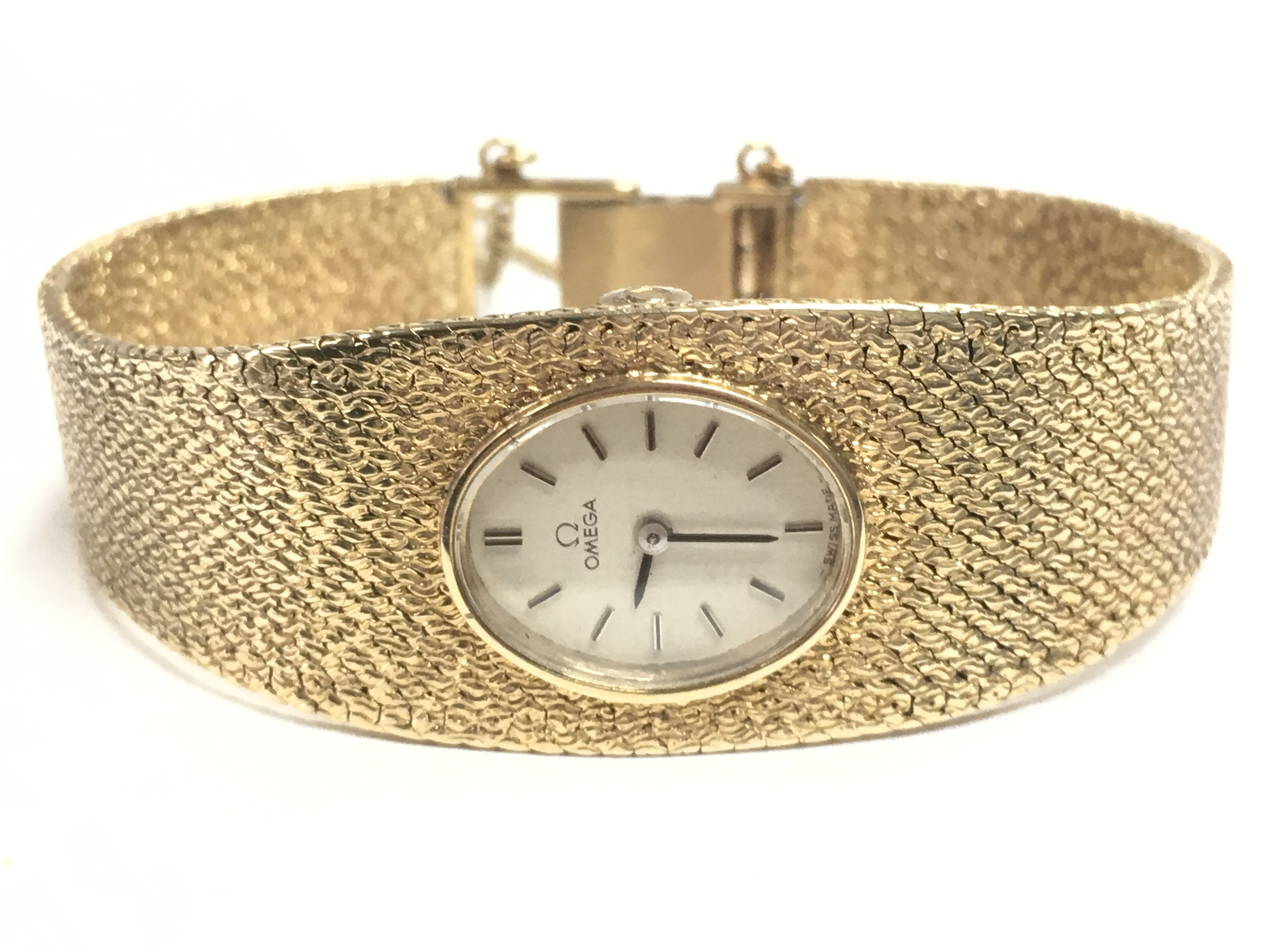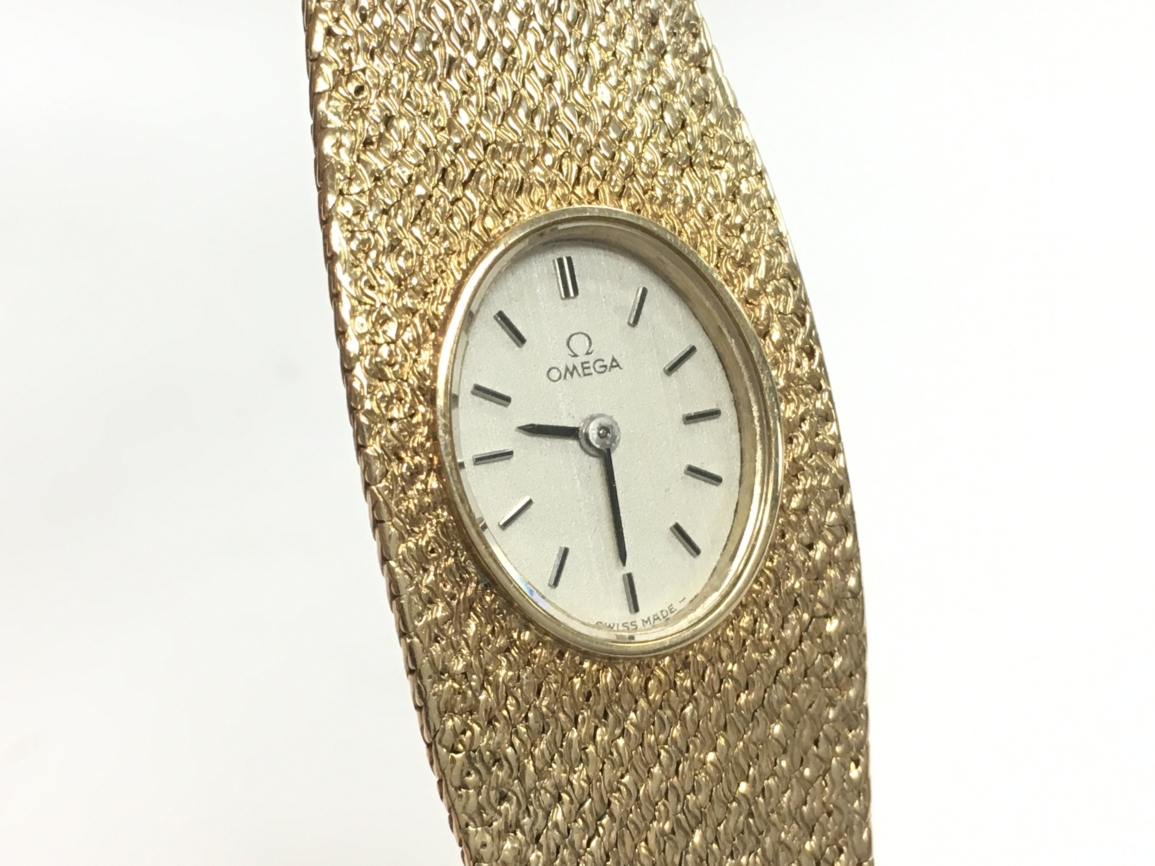 A ladies 9 carat gold Omega watch, 34.65g. Postage category a