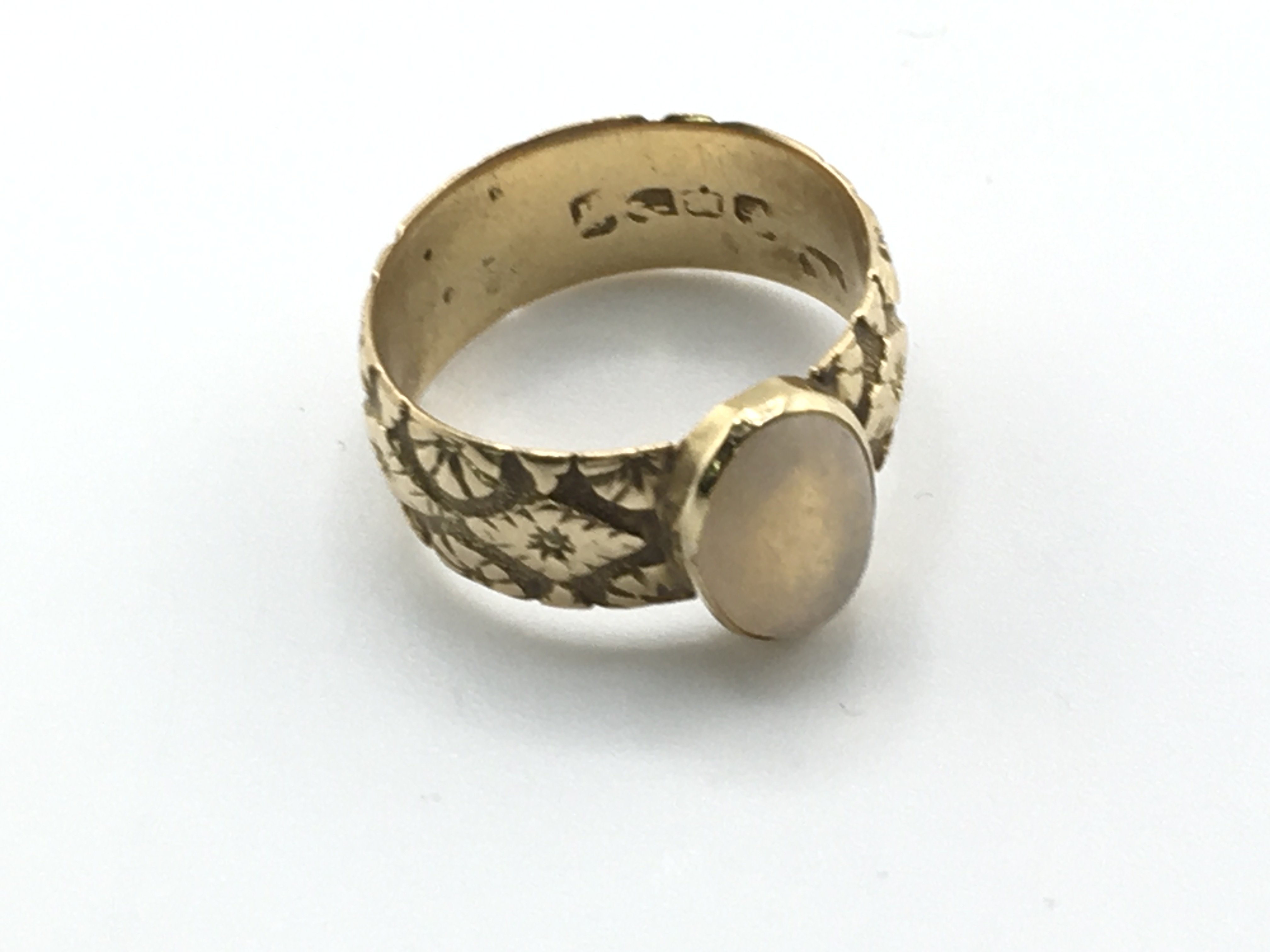 An 18ct gold ring set with gemstone. Size N and 5.10g