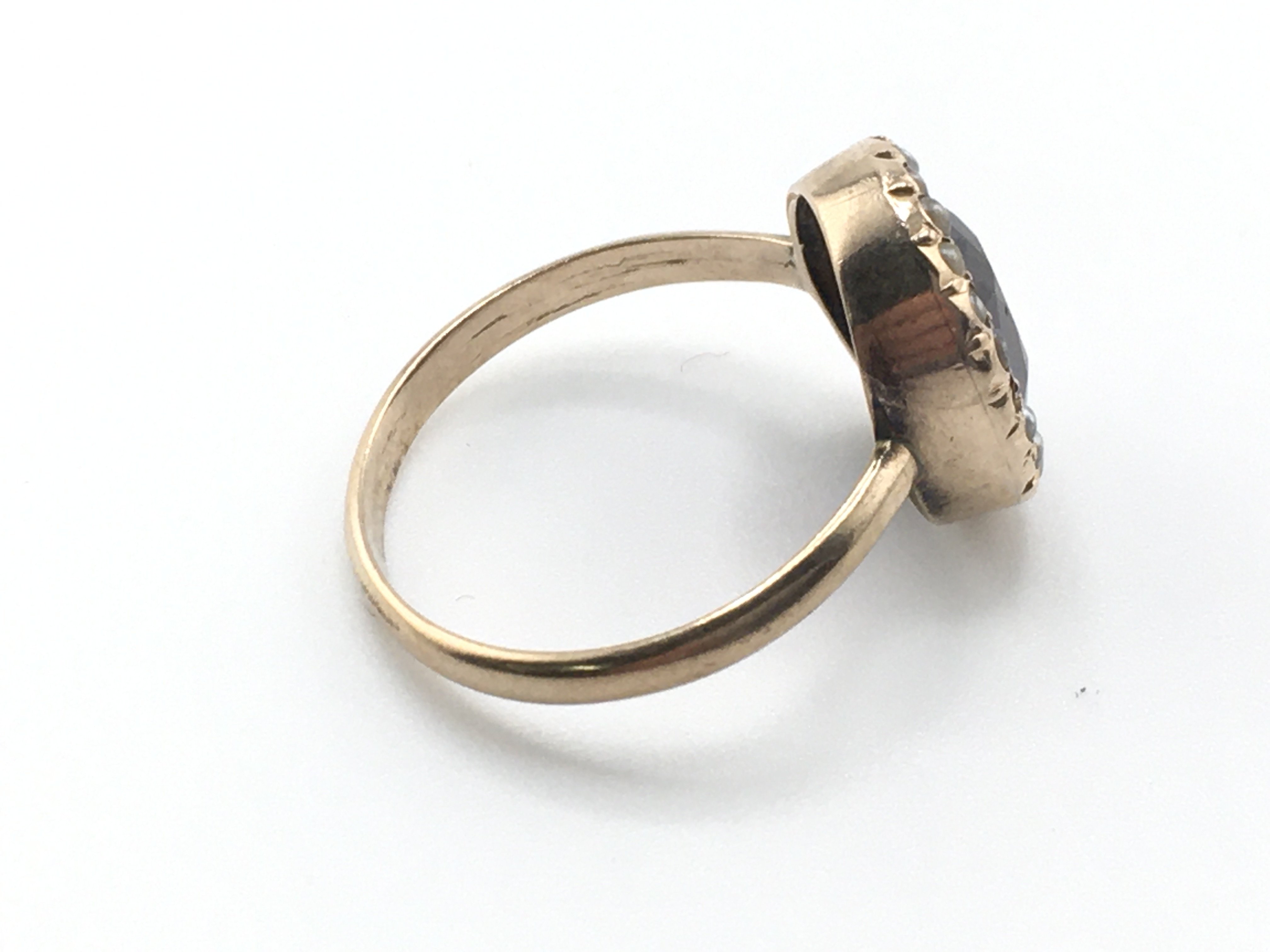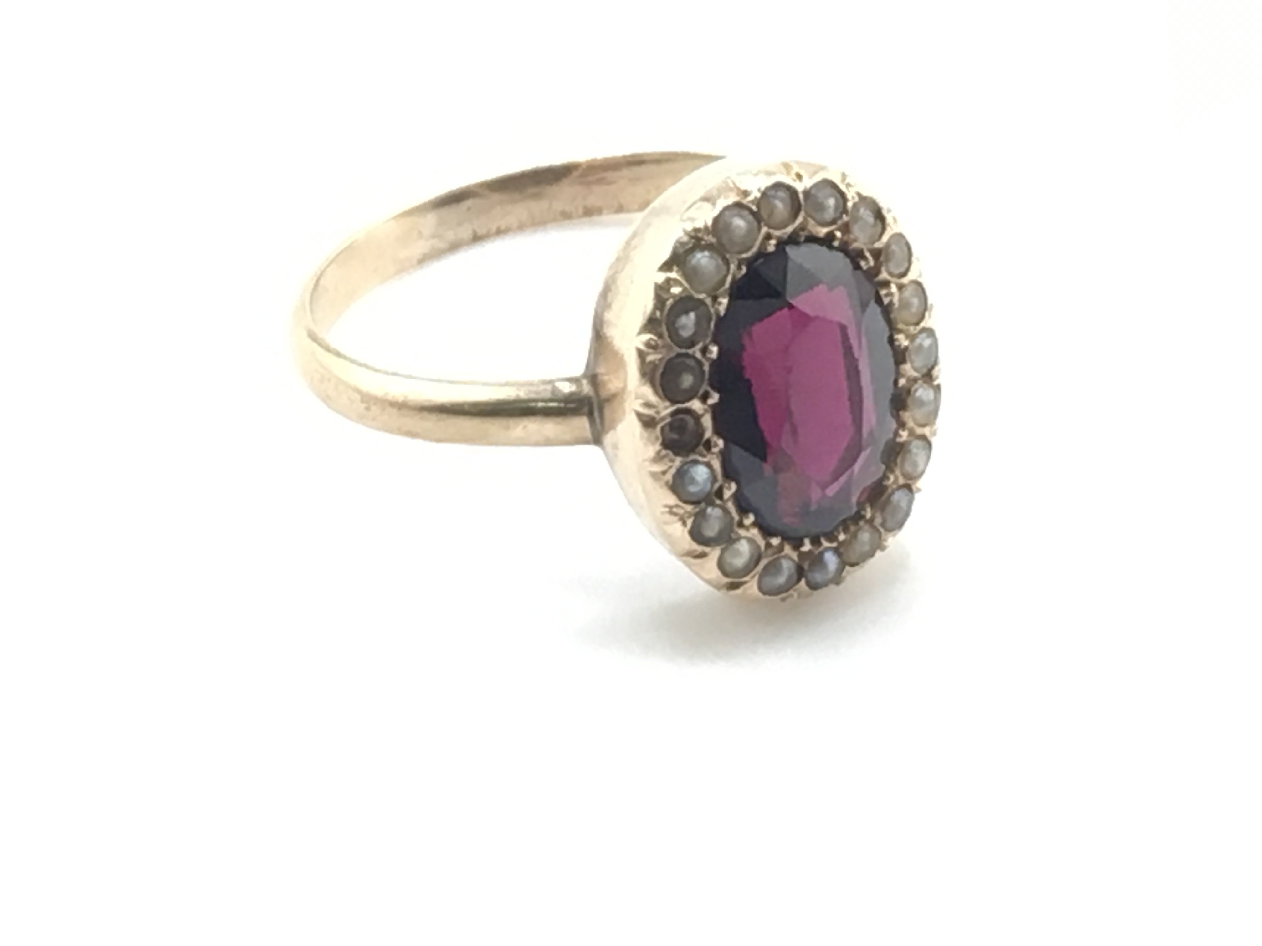 A 9ct gold ring set with garnet 2.7g and size P Postage A