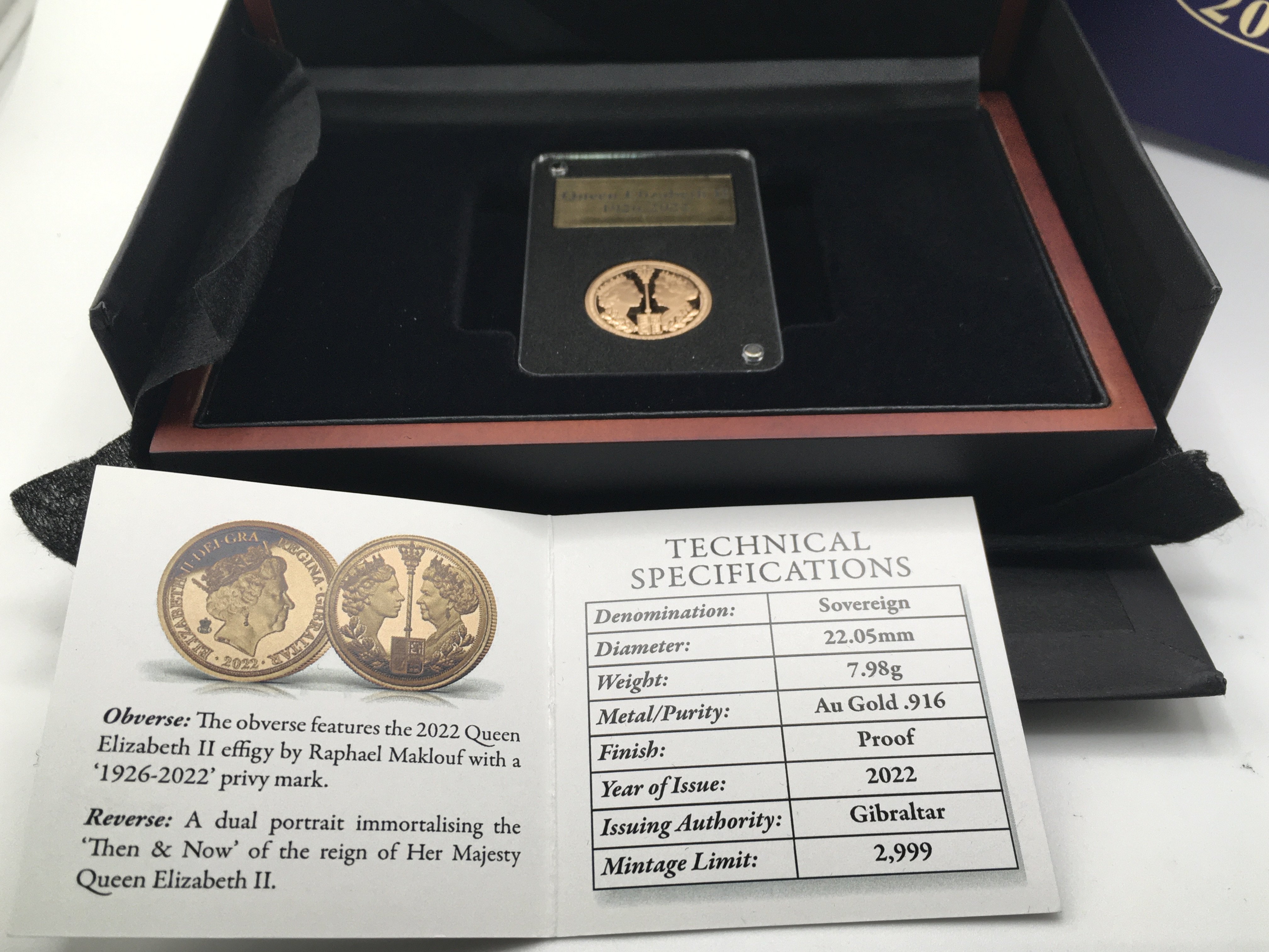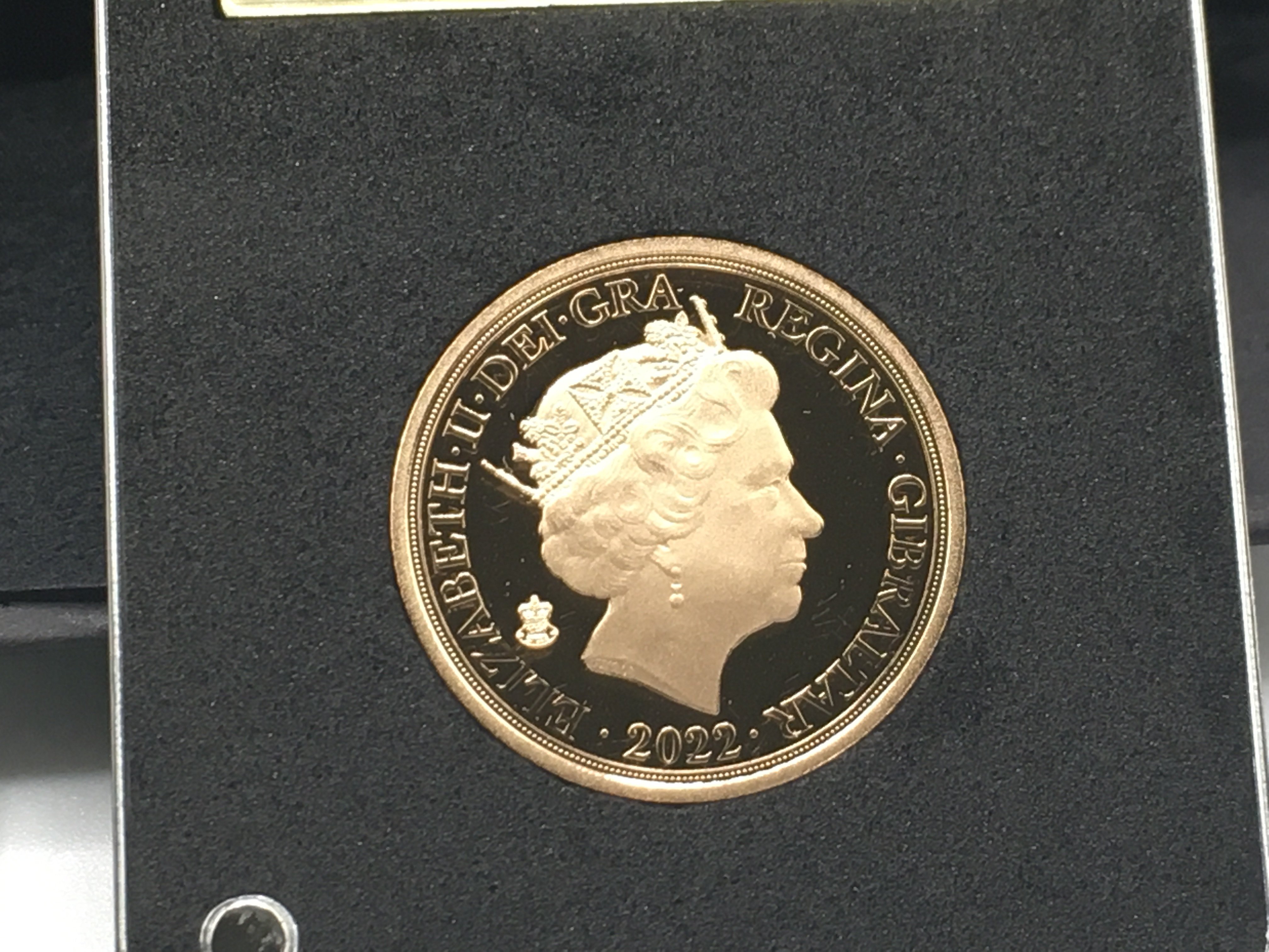 A 2022 Gibraltar full gold proof sovereign. Postage B