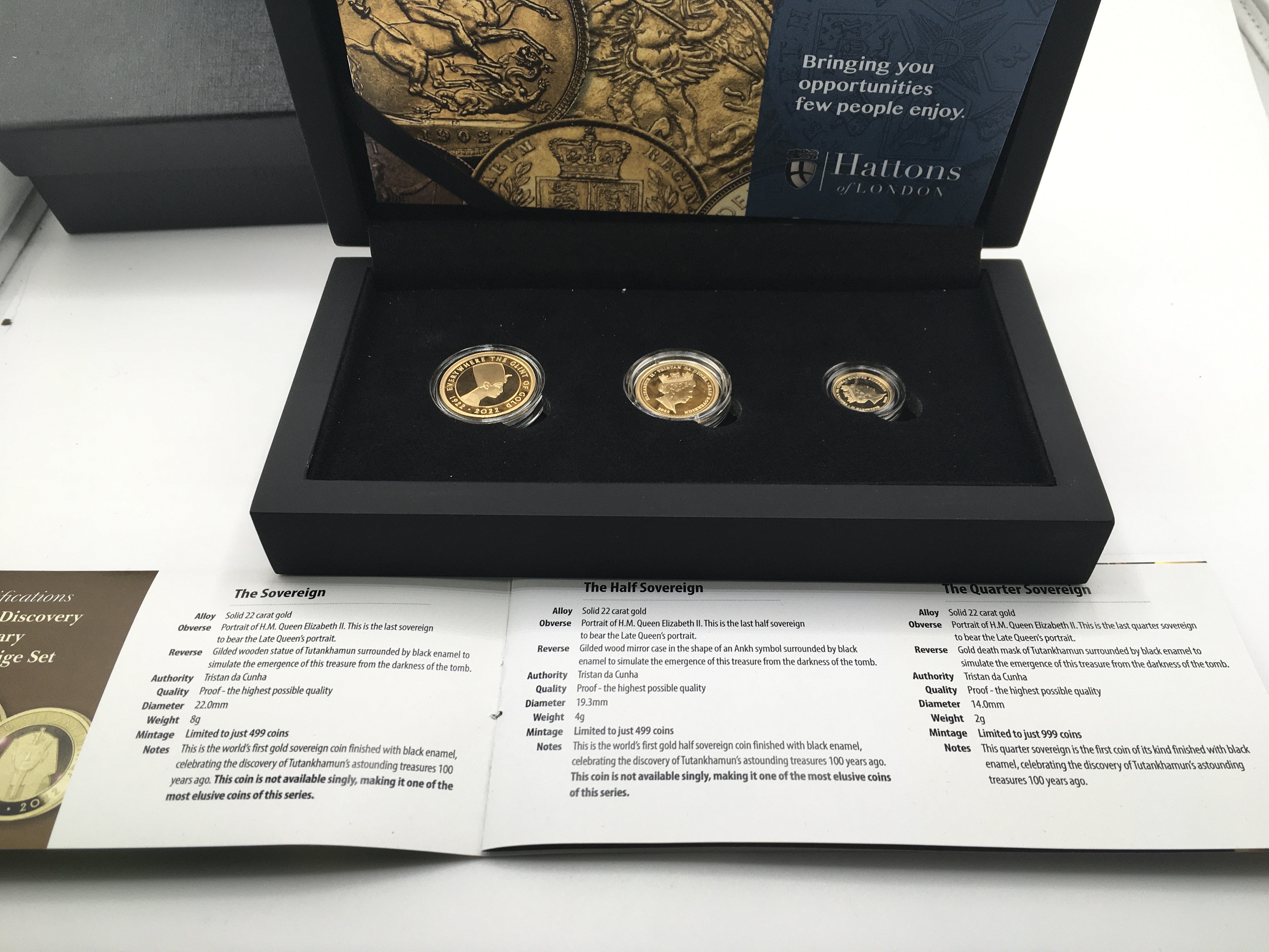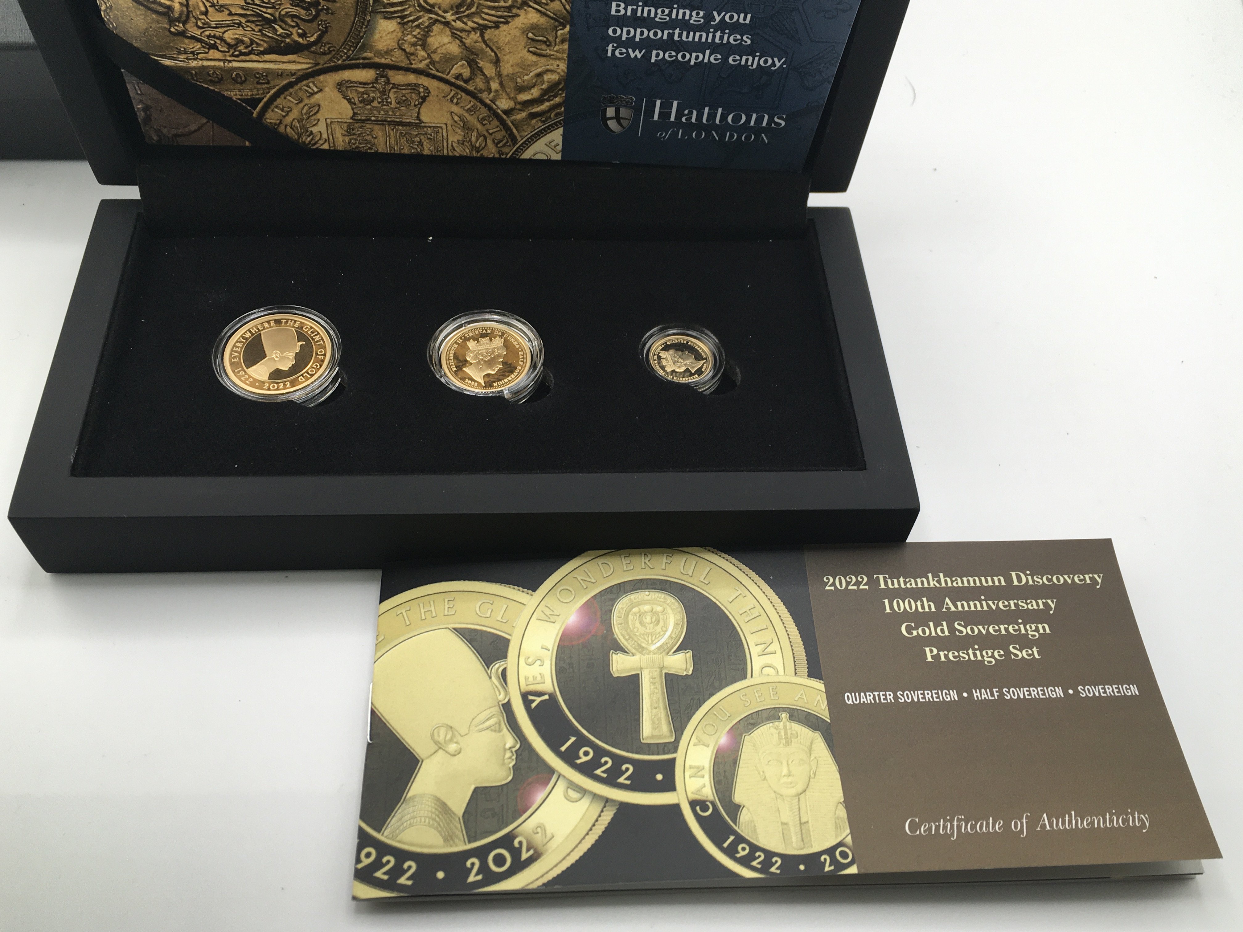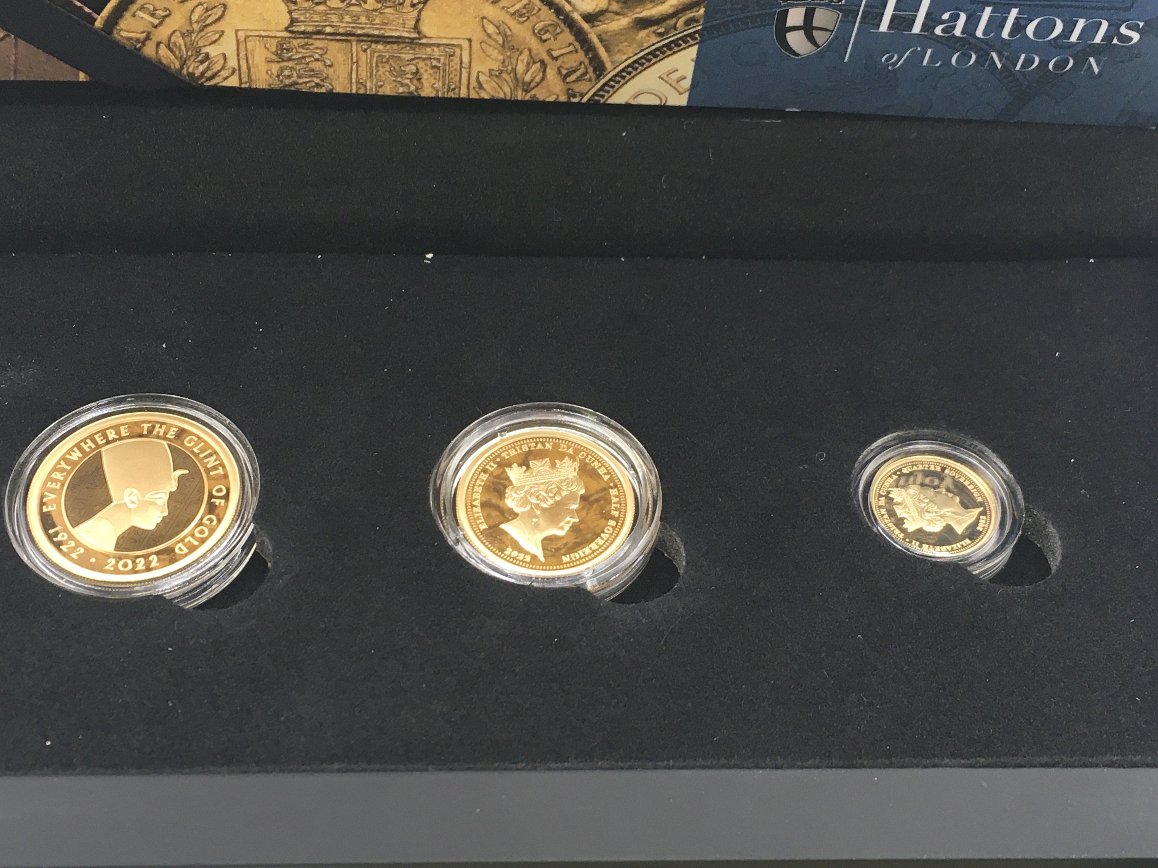 2022 Tutankhamun 100th anniversary gold proof set including a full a half and a quarter sovereign. Postage B