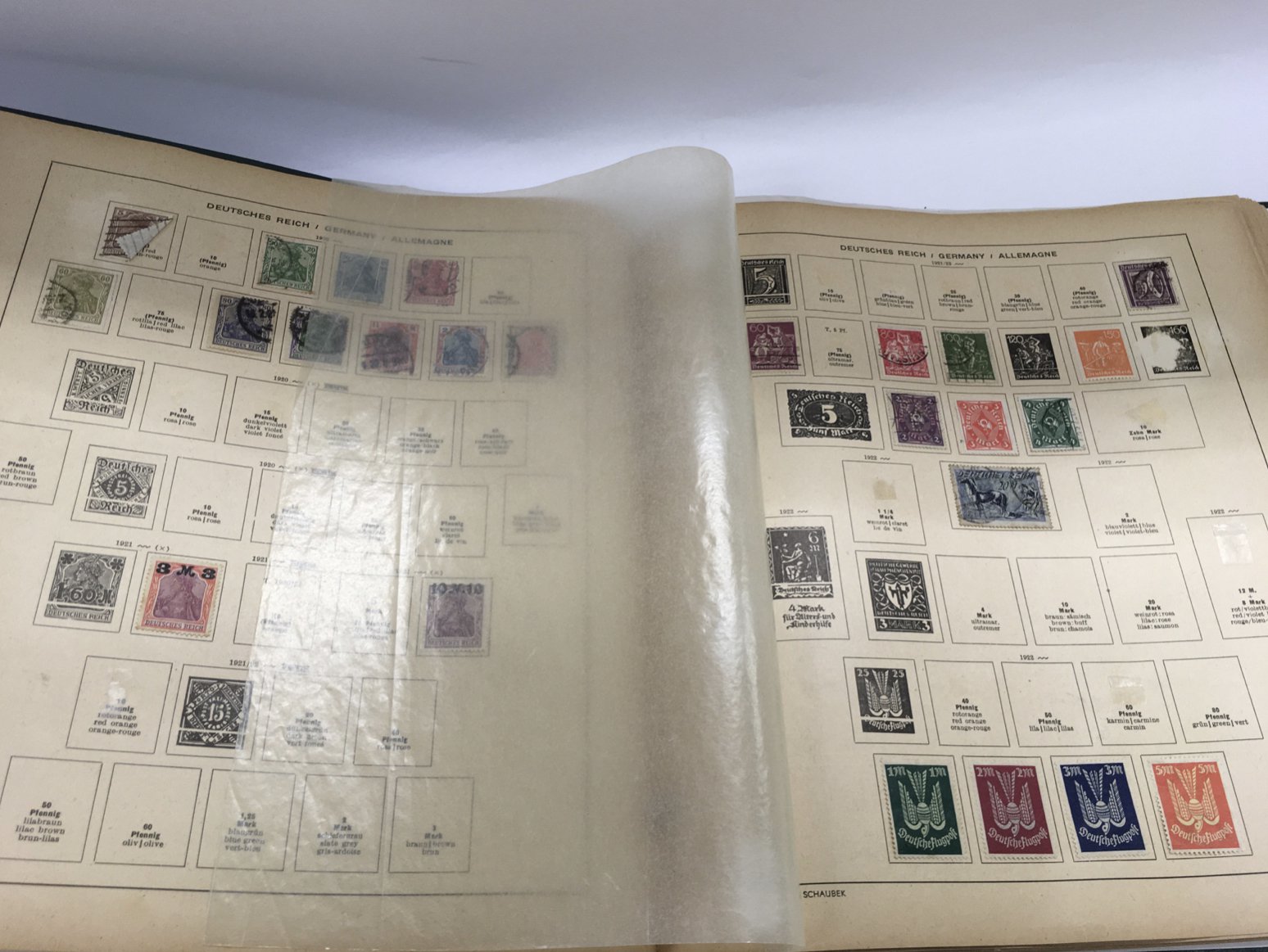An album of German stamps containing prewar and unused stamps