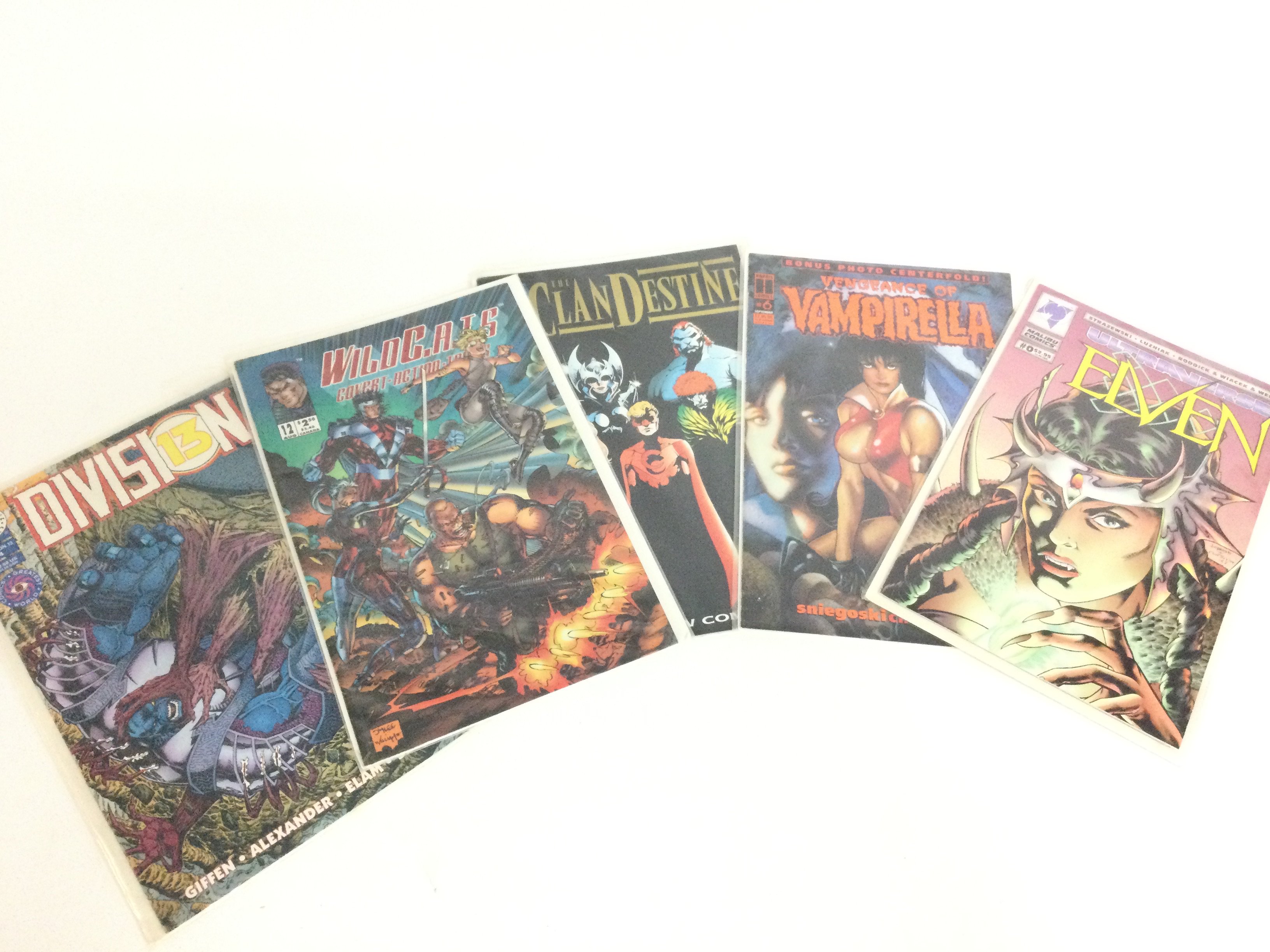 A collection of Comic Books including Ultraverse Elven #0, Vengeance Of Vampirella #6, Division 13 #4, The Clandestine Preview Issue & Wildcats Covert Action Team #12. Postage category B. NO RESERVE