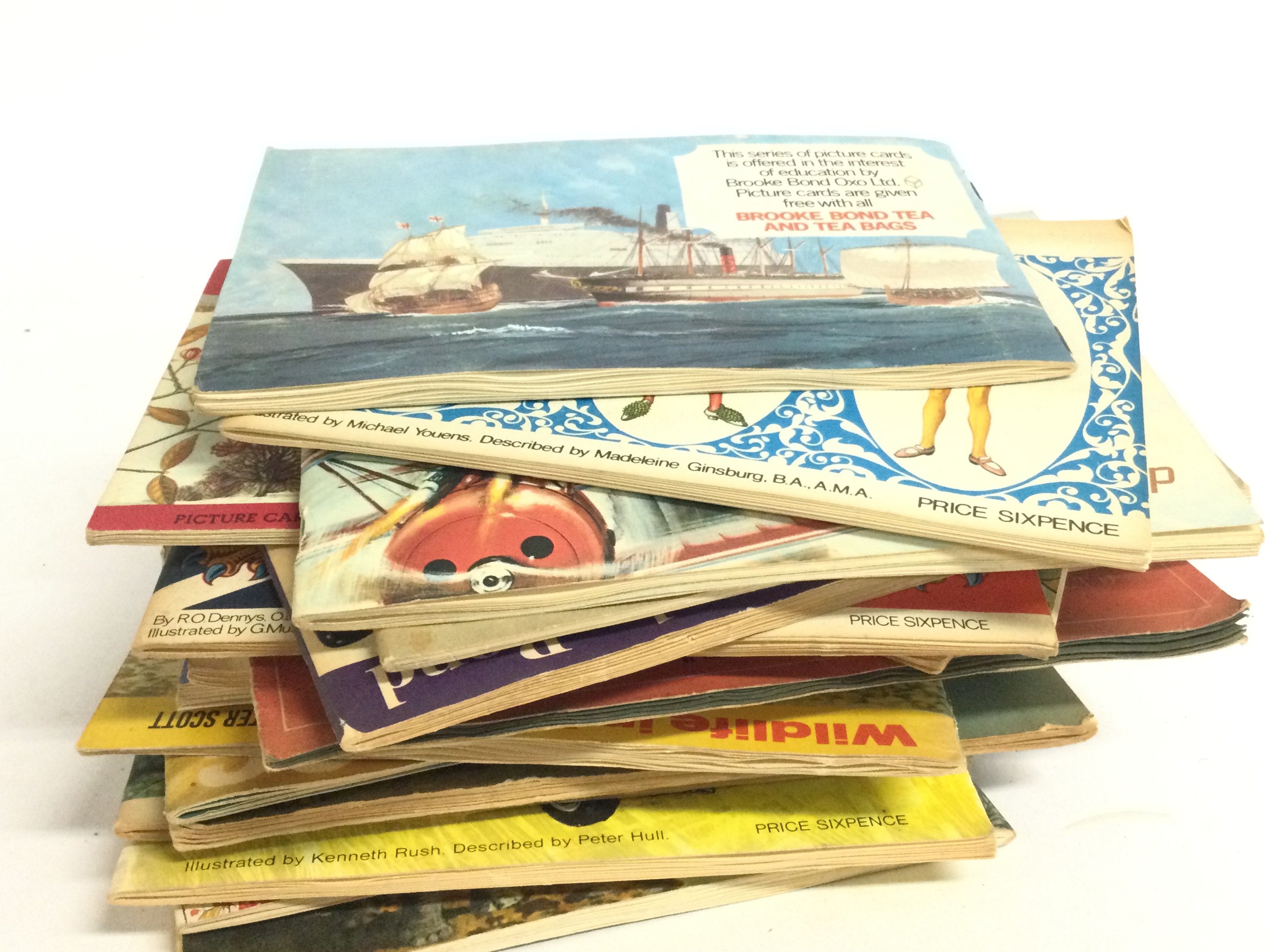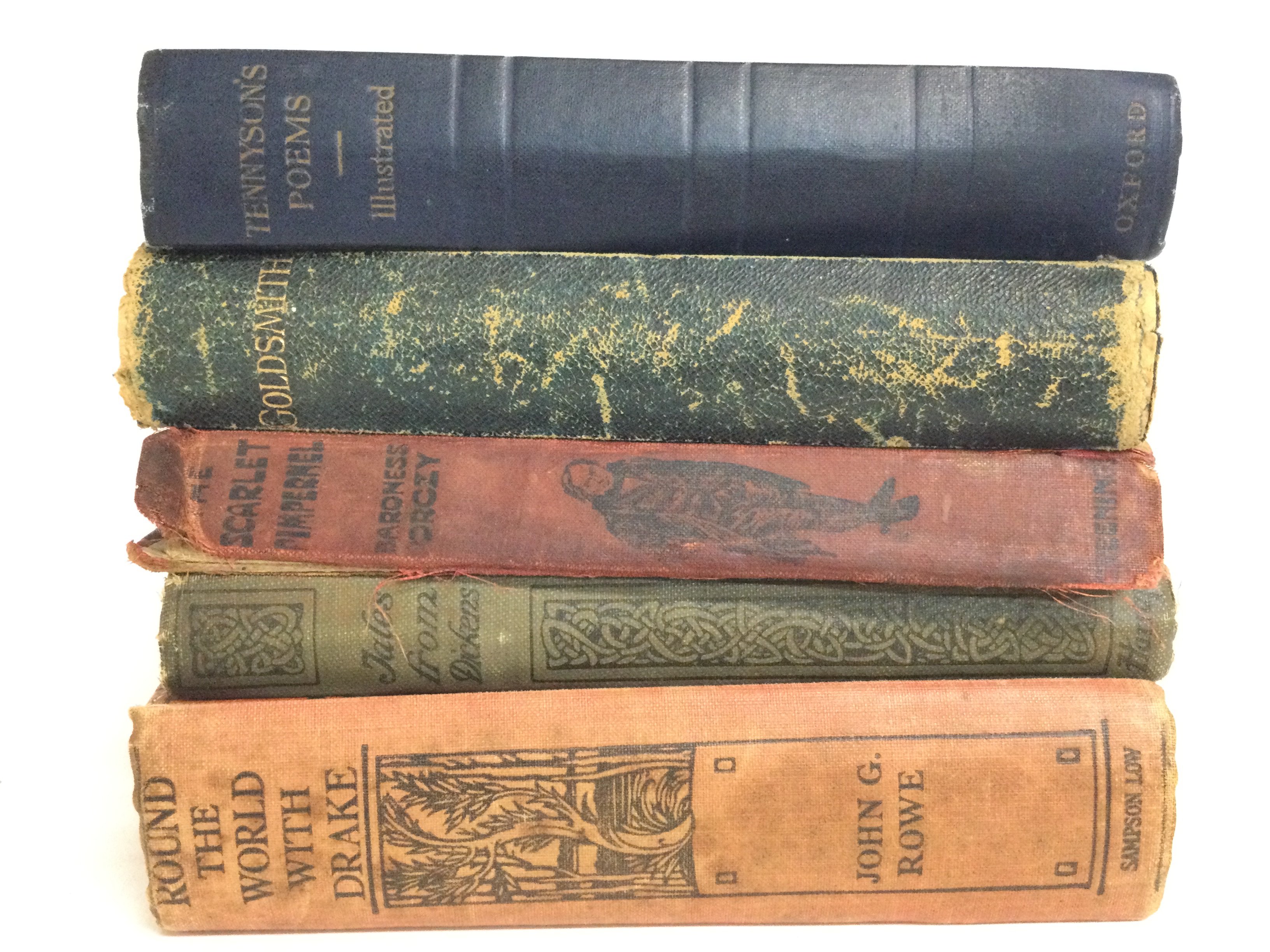 A collection of late 19th/early 20th century vintage childrens books including Tennysons Poems, Poems and plays of Oliver Goldsmith and mostly full Brooke bond booklets. NO RESERVE