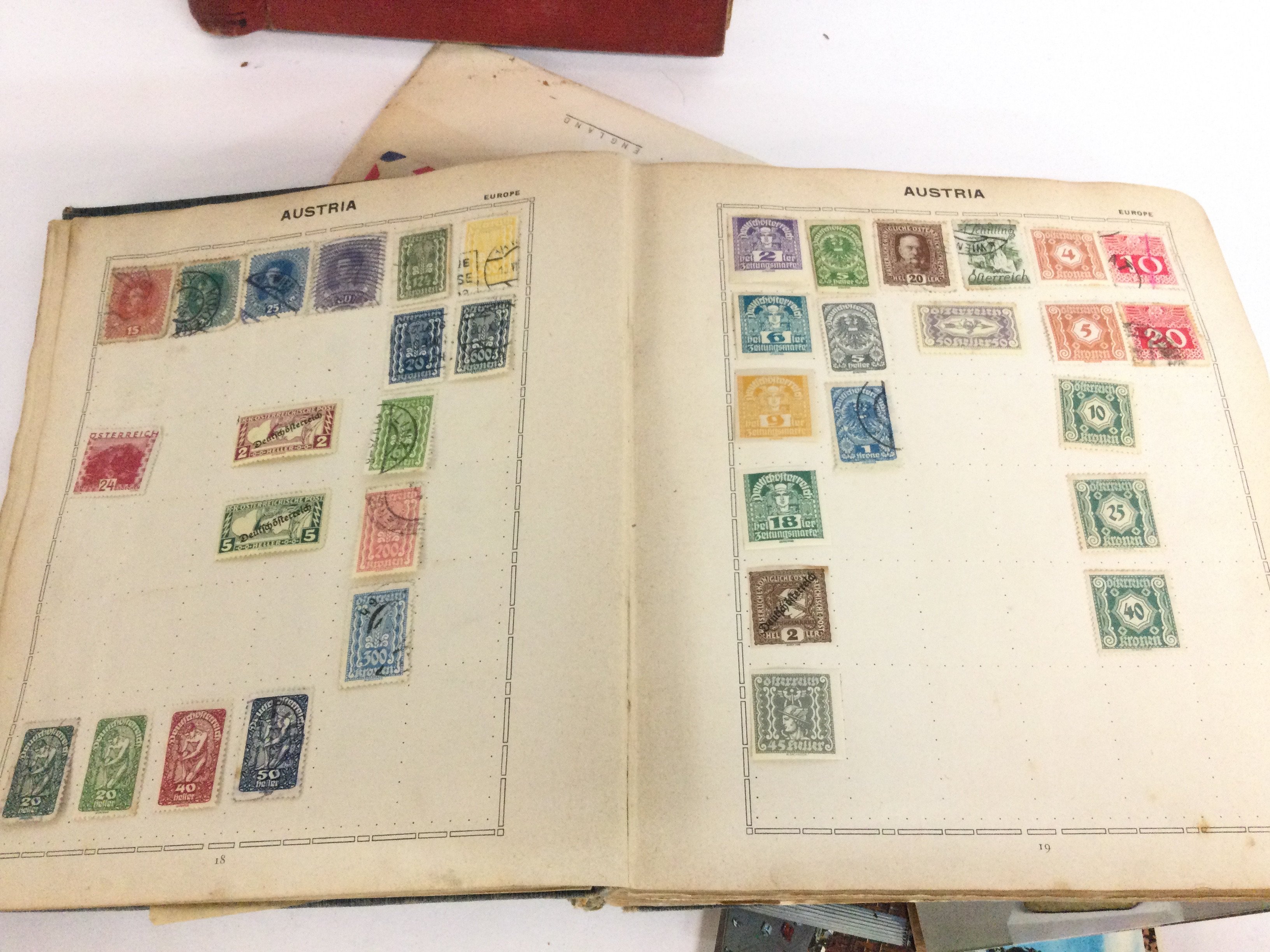 Stamp albums containing world stamps, some unused also tourist postcards and others. NO RESERVE
