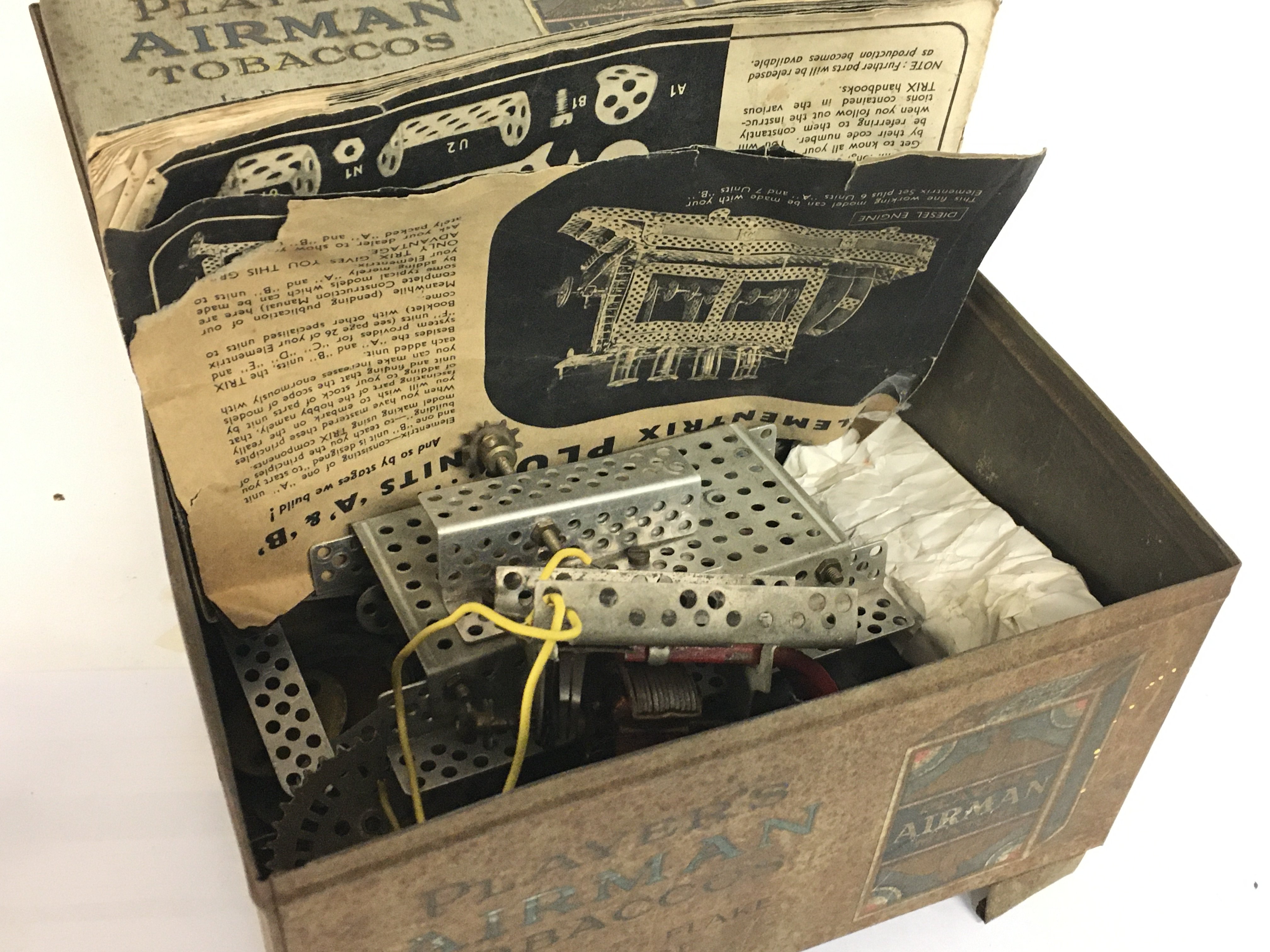 A 1940s Players airman tin cigarette box vintage Meccano parts and manual. NO RESERVE