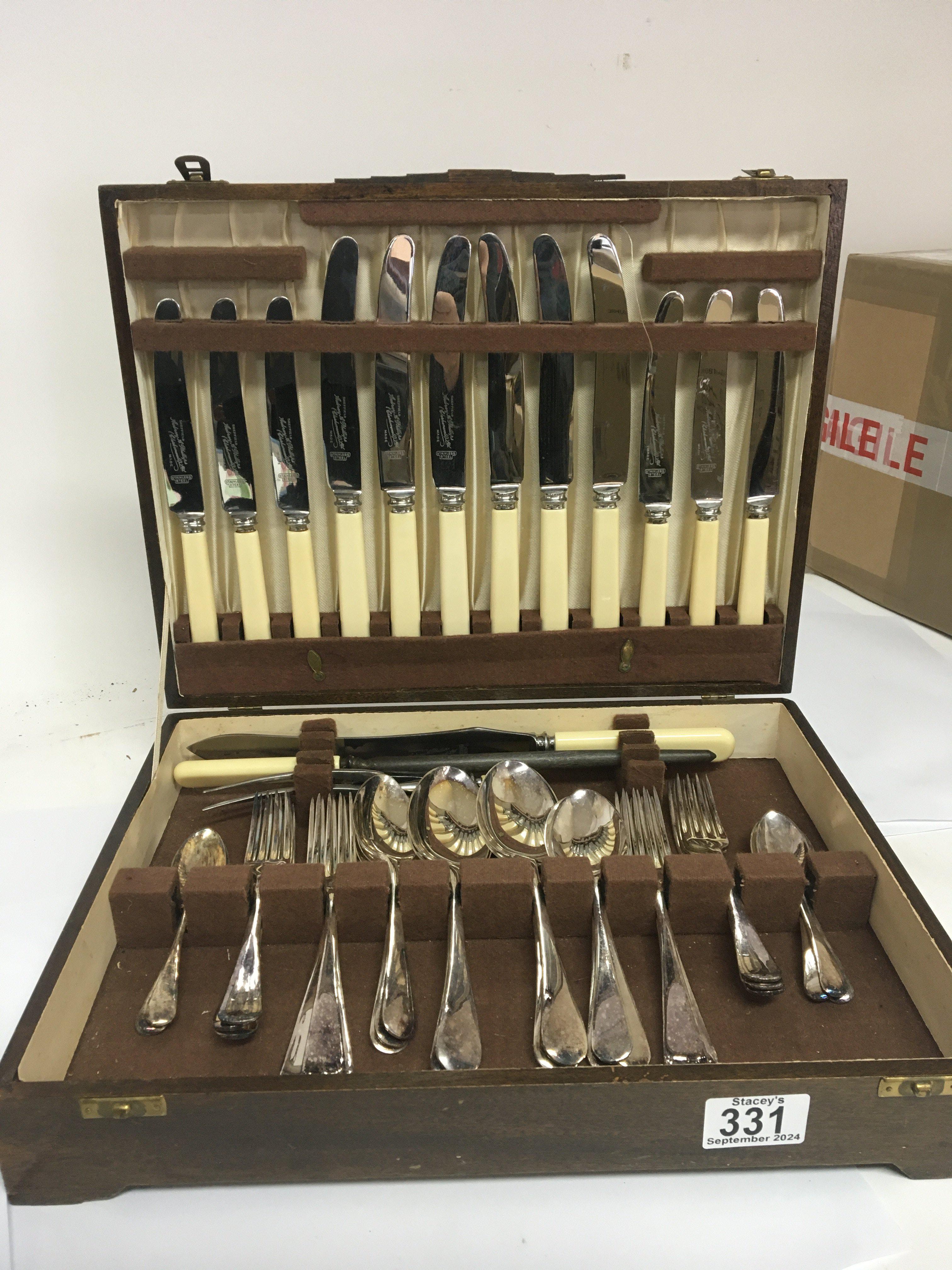 A canteen of Sheffield plated EPNS cutlery complete in a fitted case.