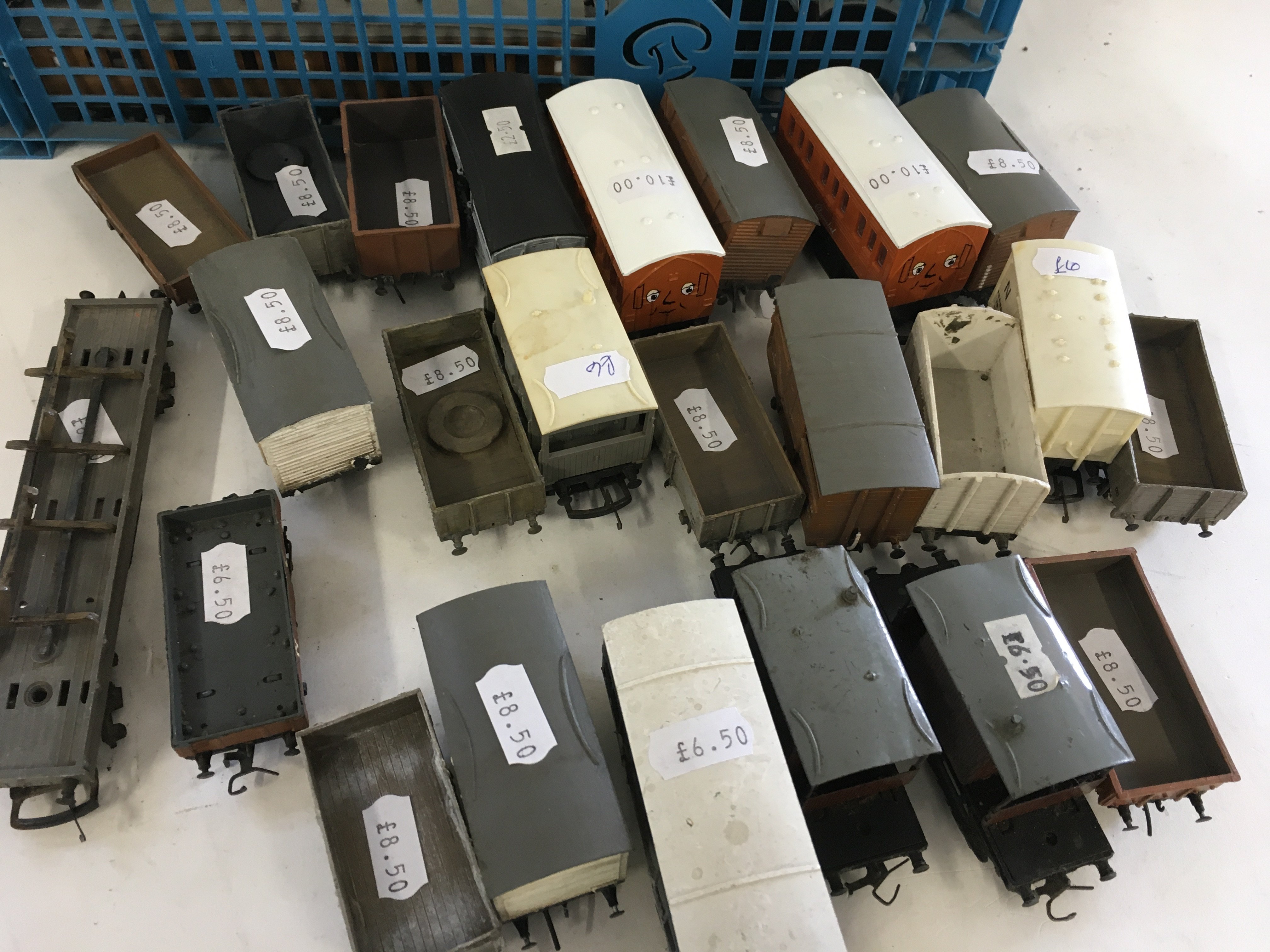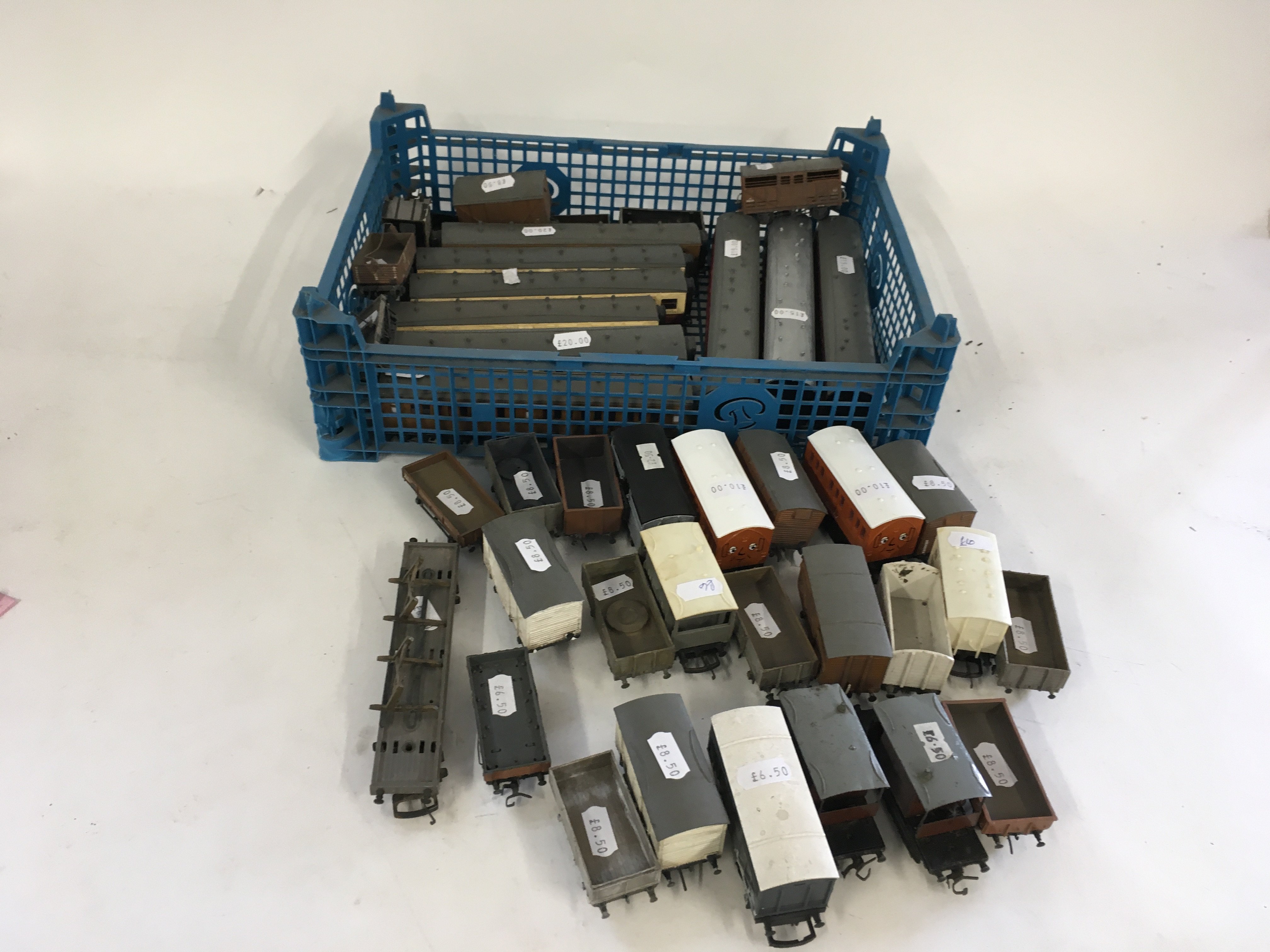 A joblot collection in excess of 40 model railway wagons and coaches by various manufacturers all 00 gauge.