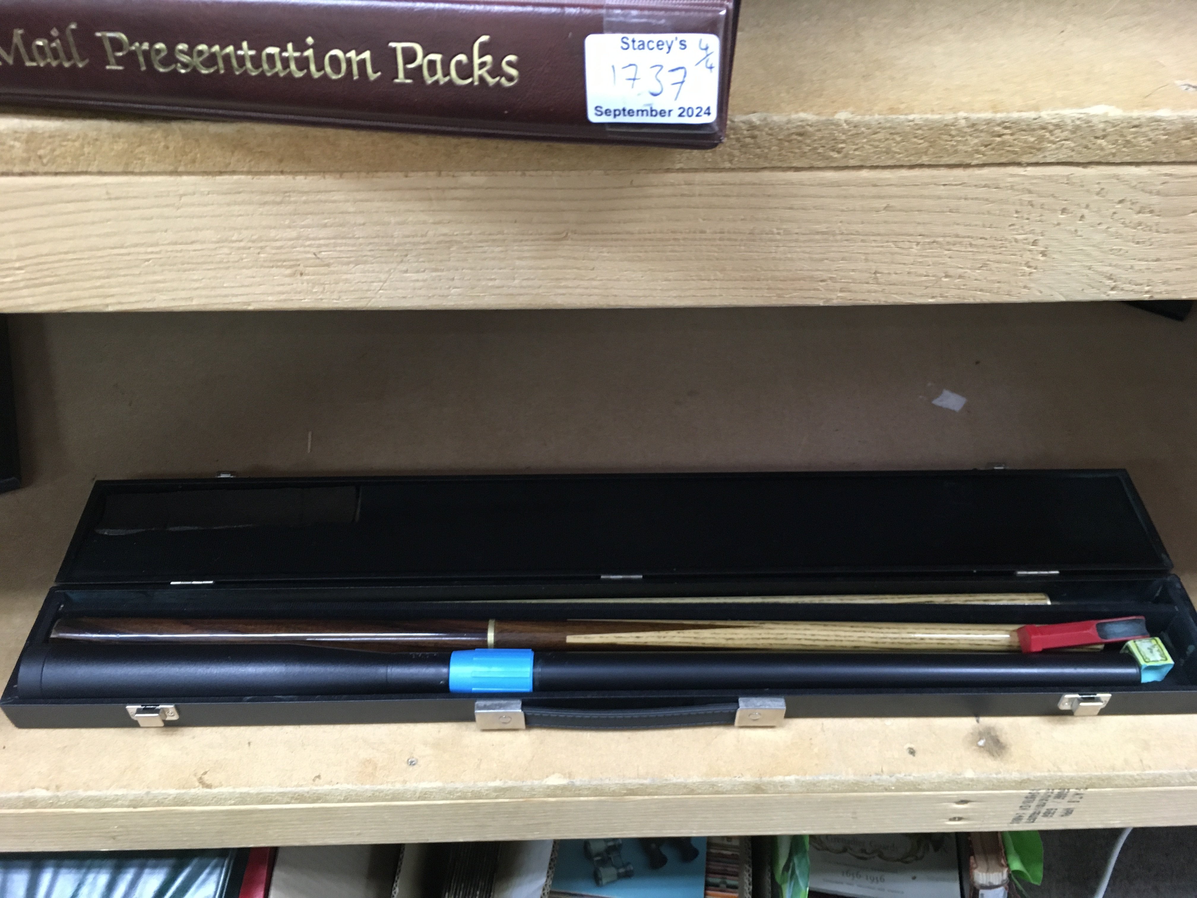 A cased Master Billiard snooker cue. This lot cannot be posted