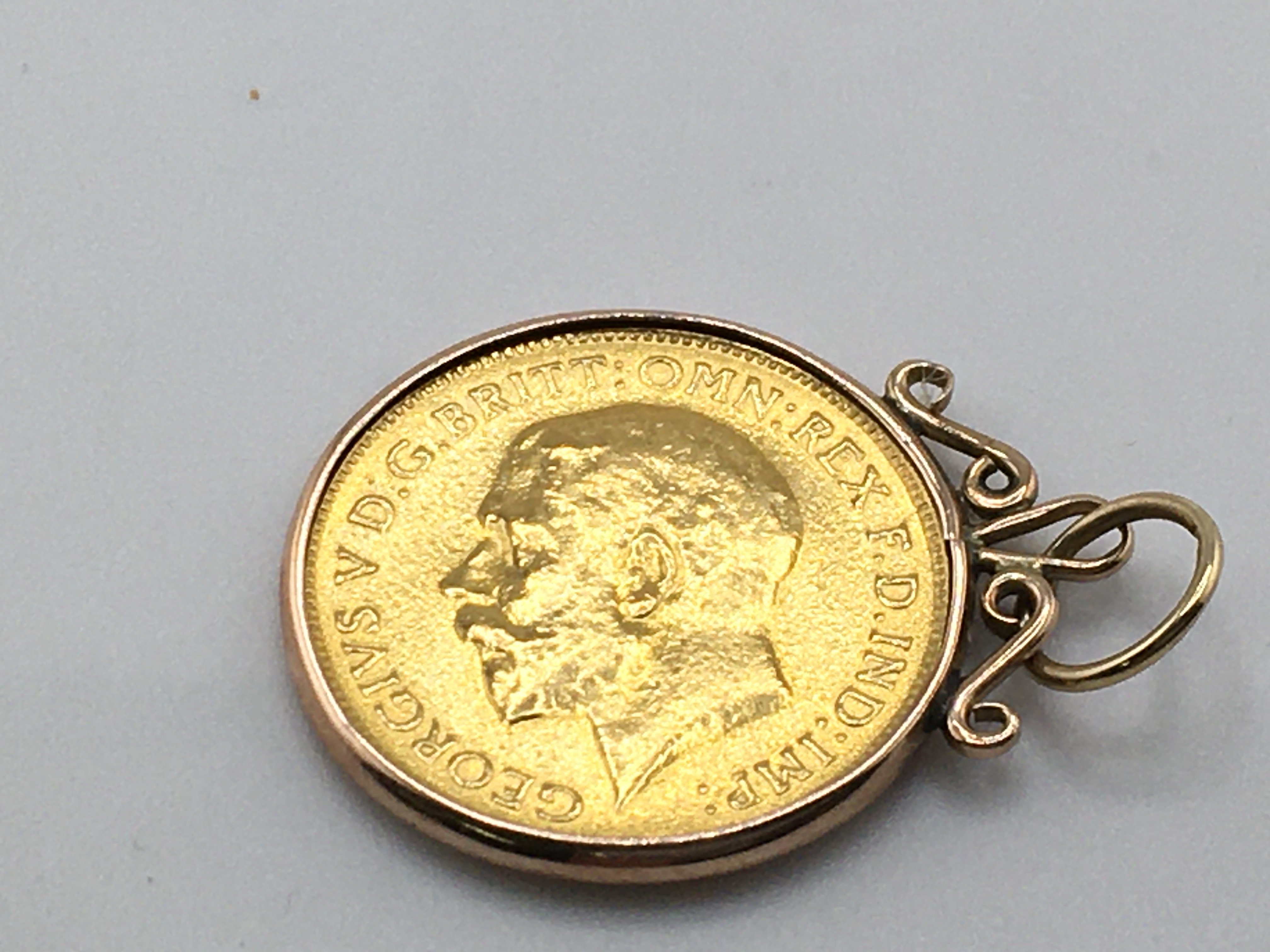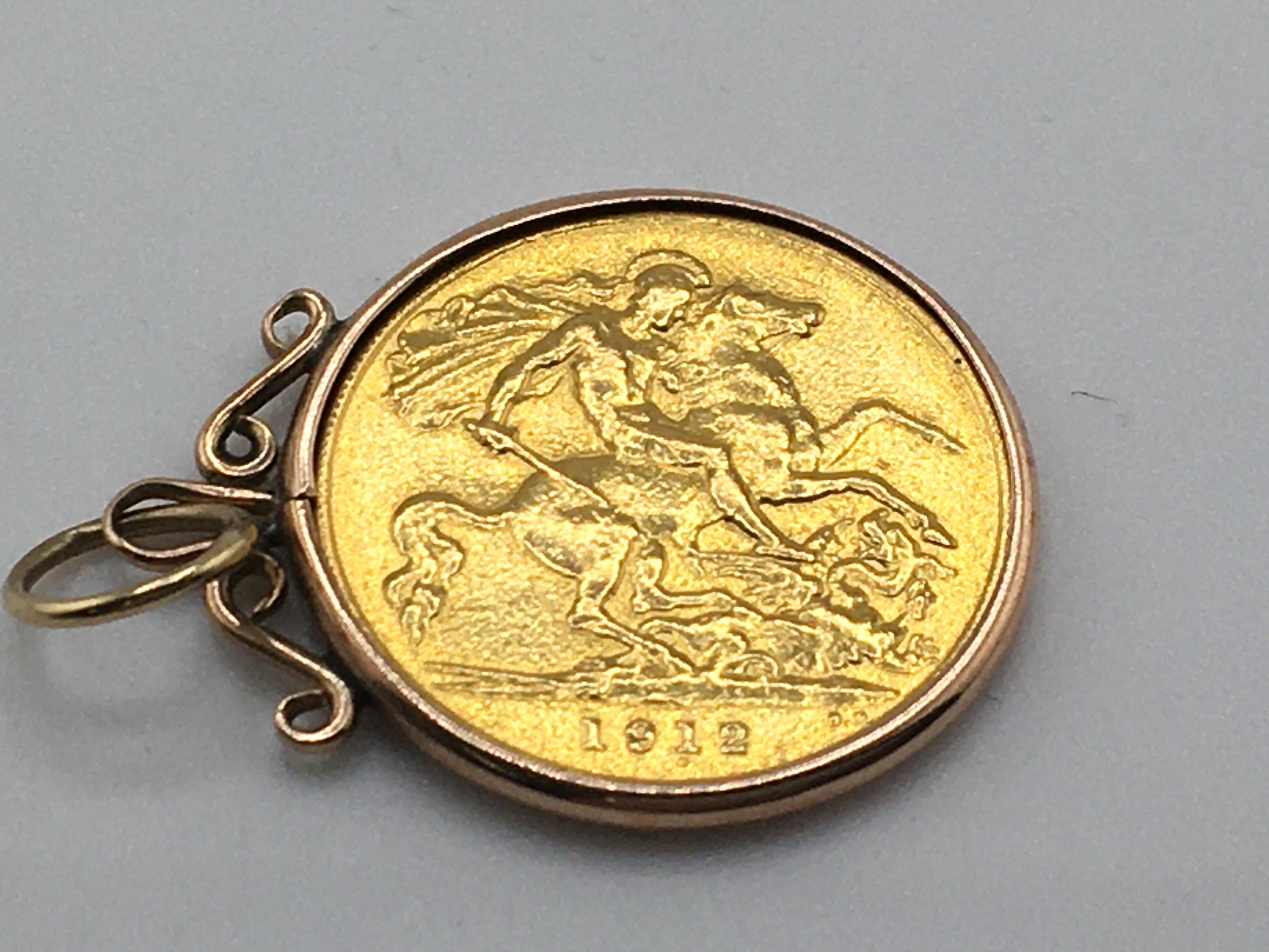 A 1912 half Sovereign in a pendant mount. 4.70g Postage A