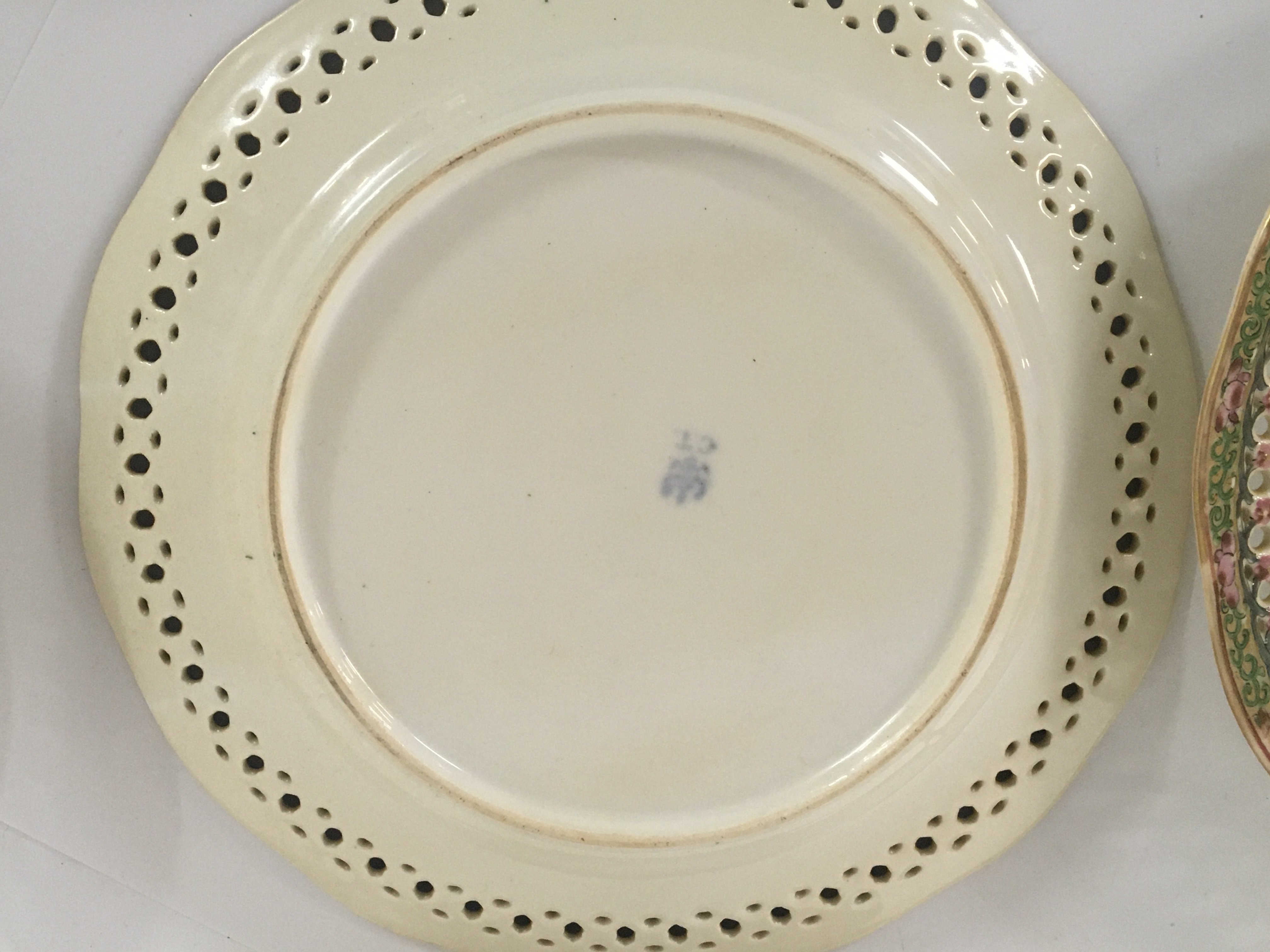 A set of six 19th Cantonese style or Cantonese decorated famille rose ribbon plates decorated with alternating panels of figures flowers and foliage diameter 22.5cm no obvious damage.