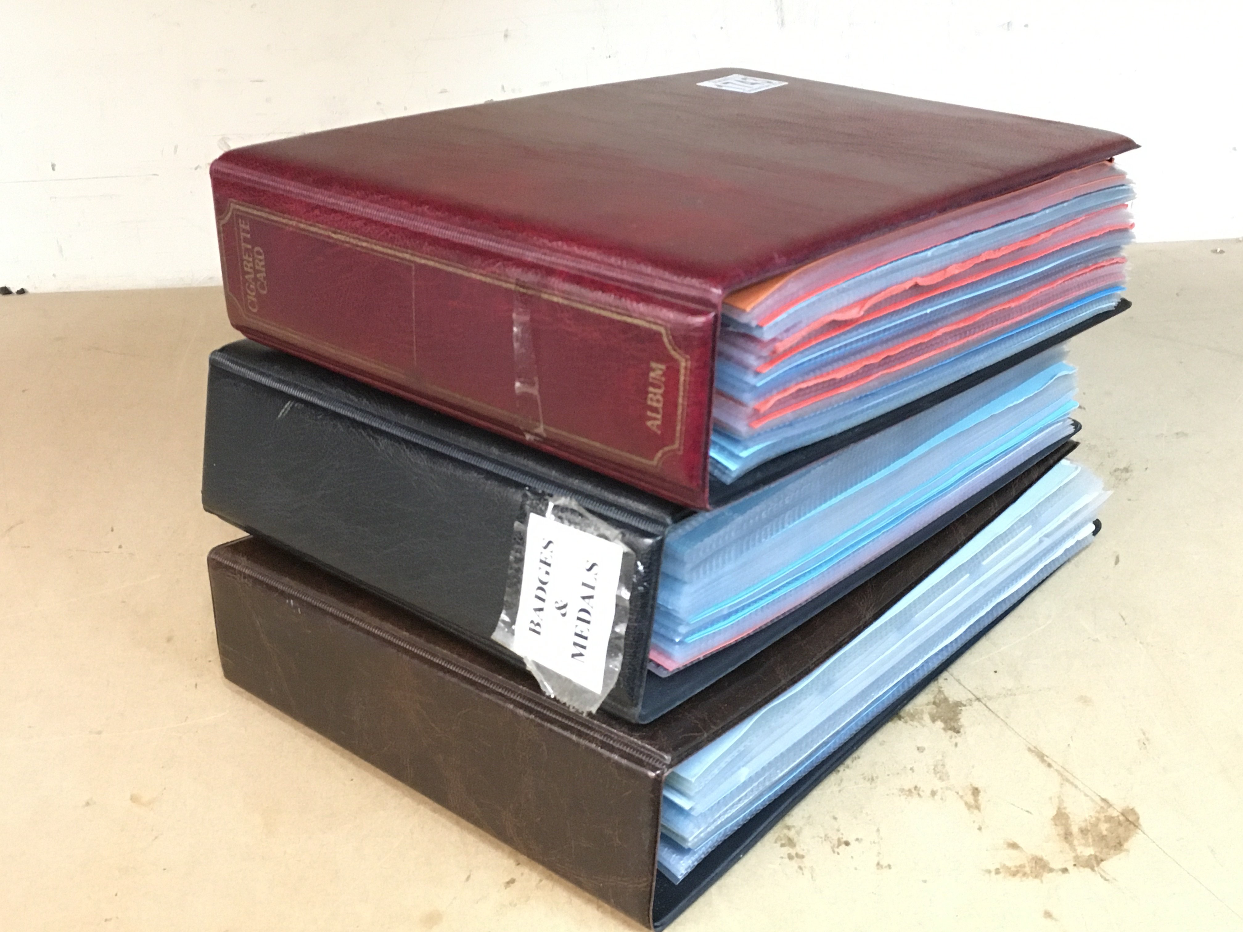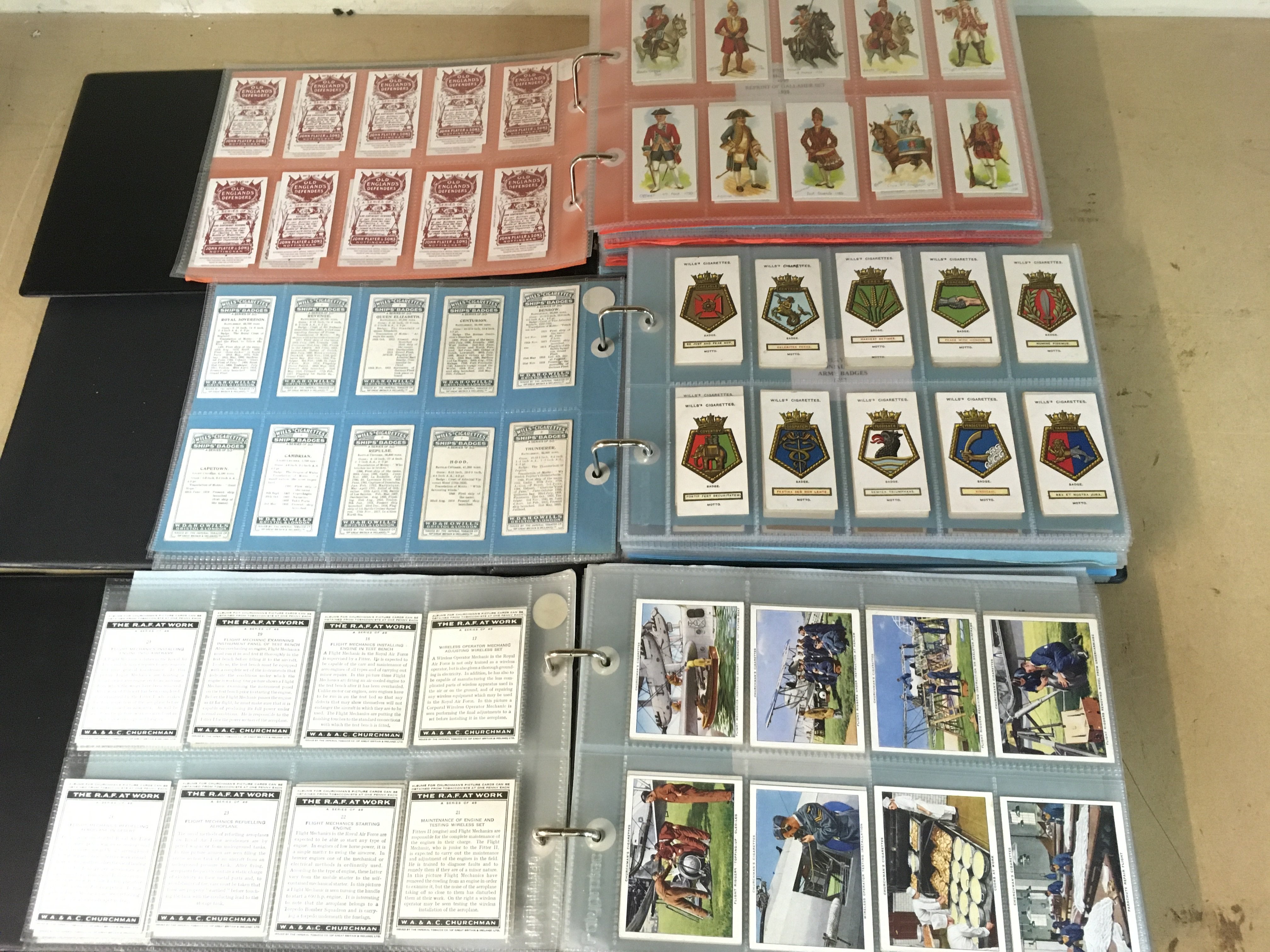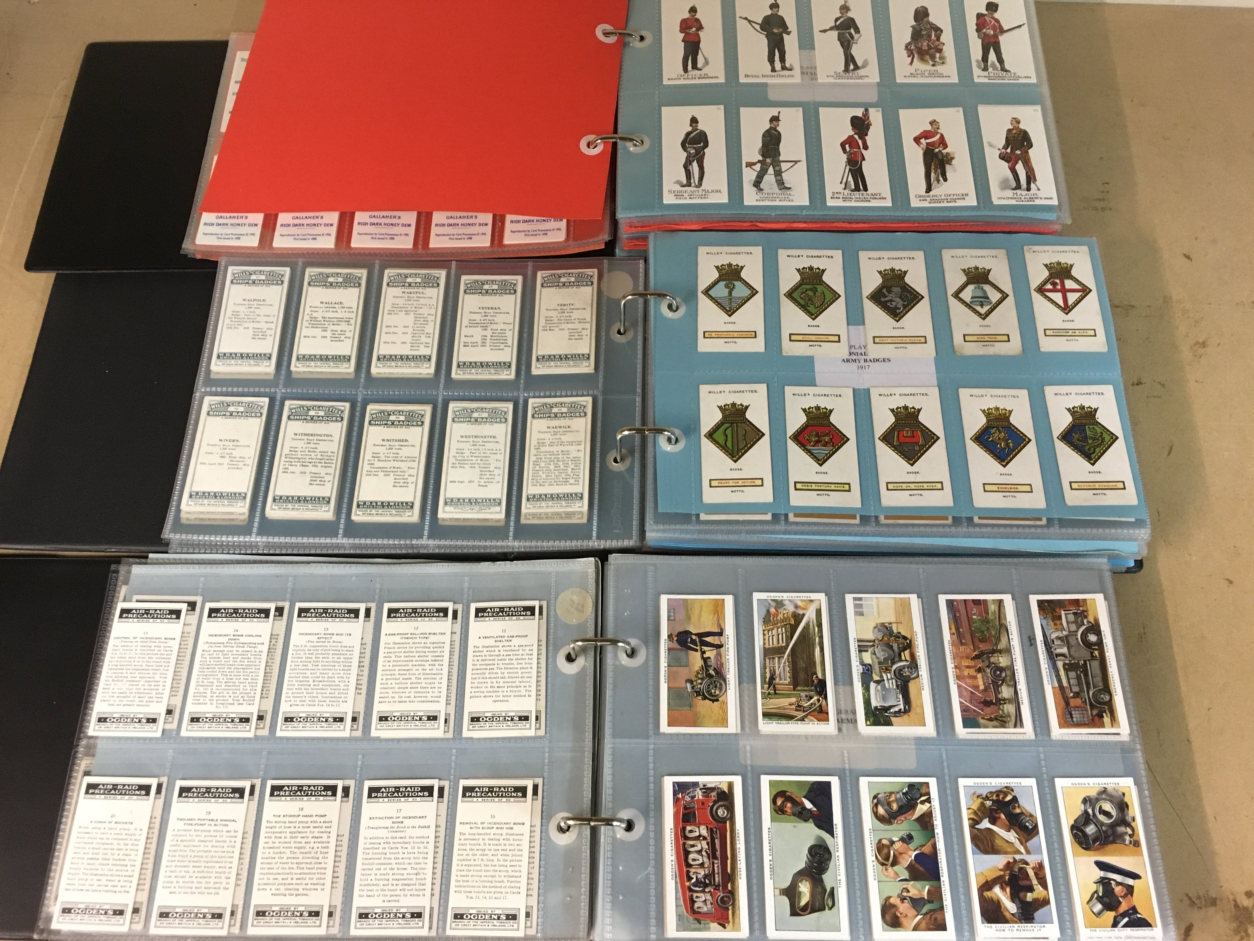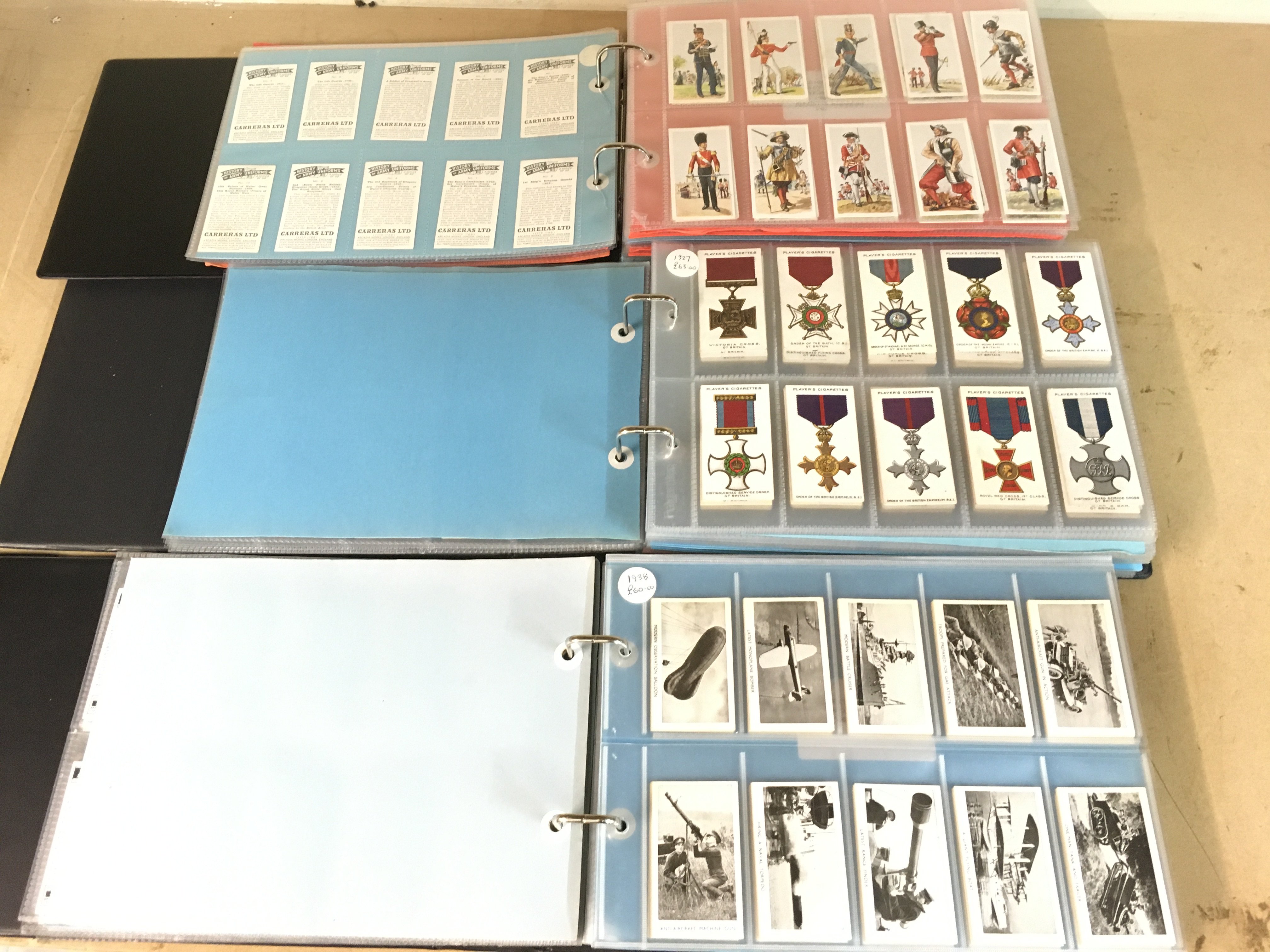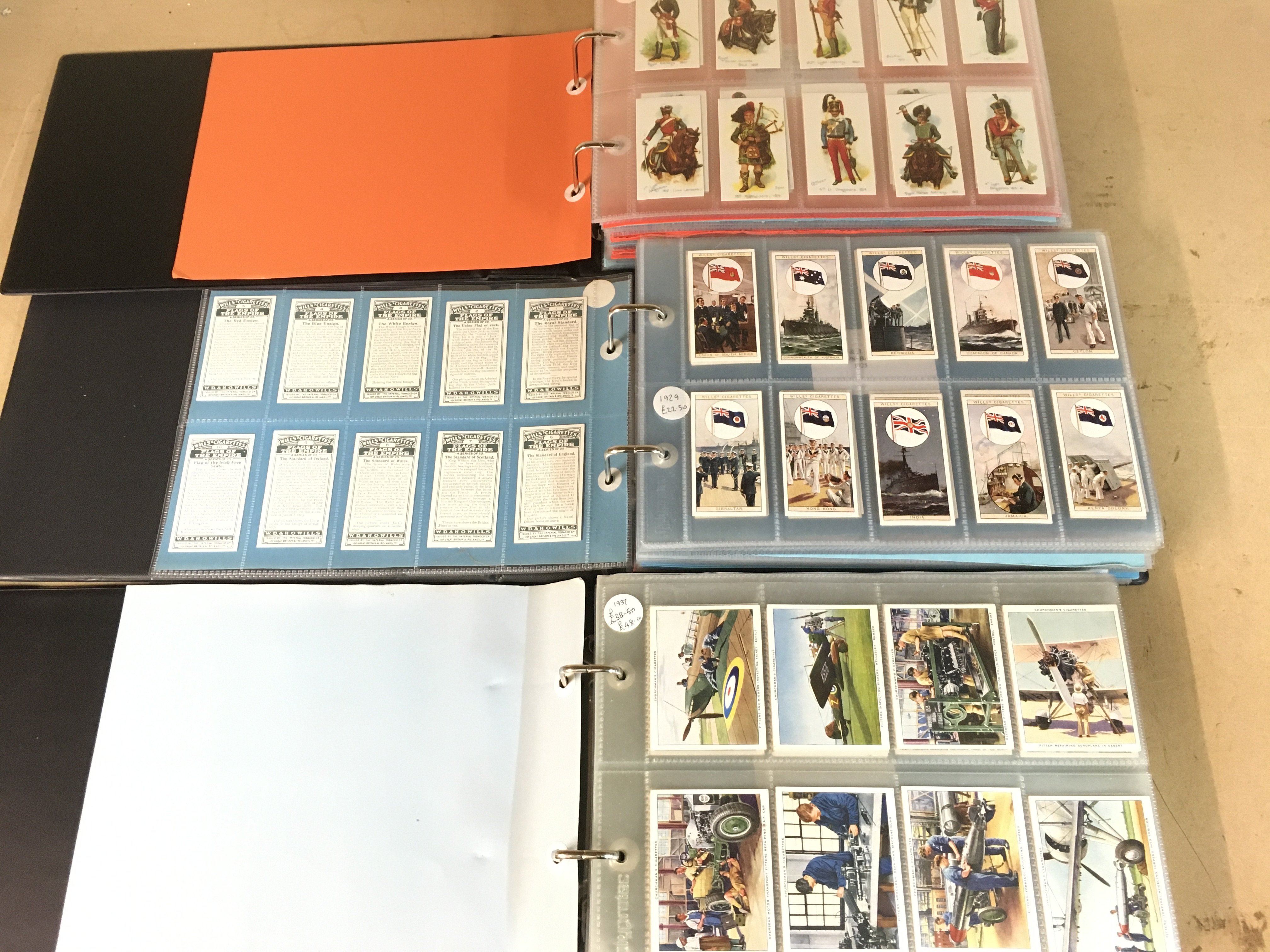 Three albums containing military cigarette cards including Wills, Players, Ogdens, Churchmans etc