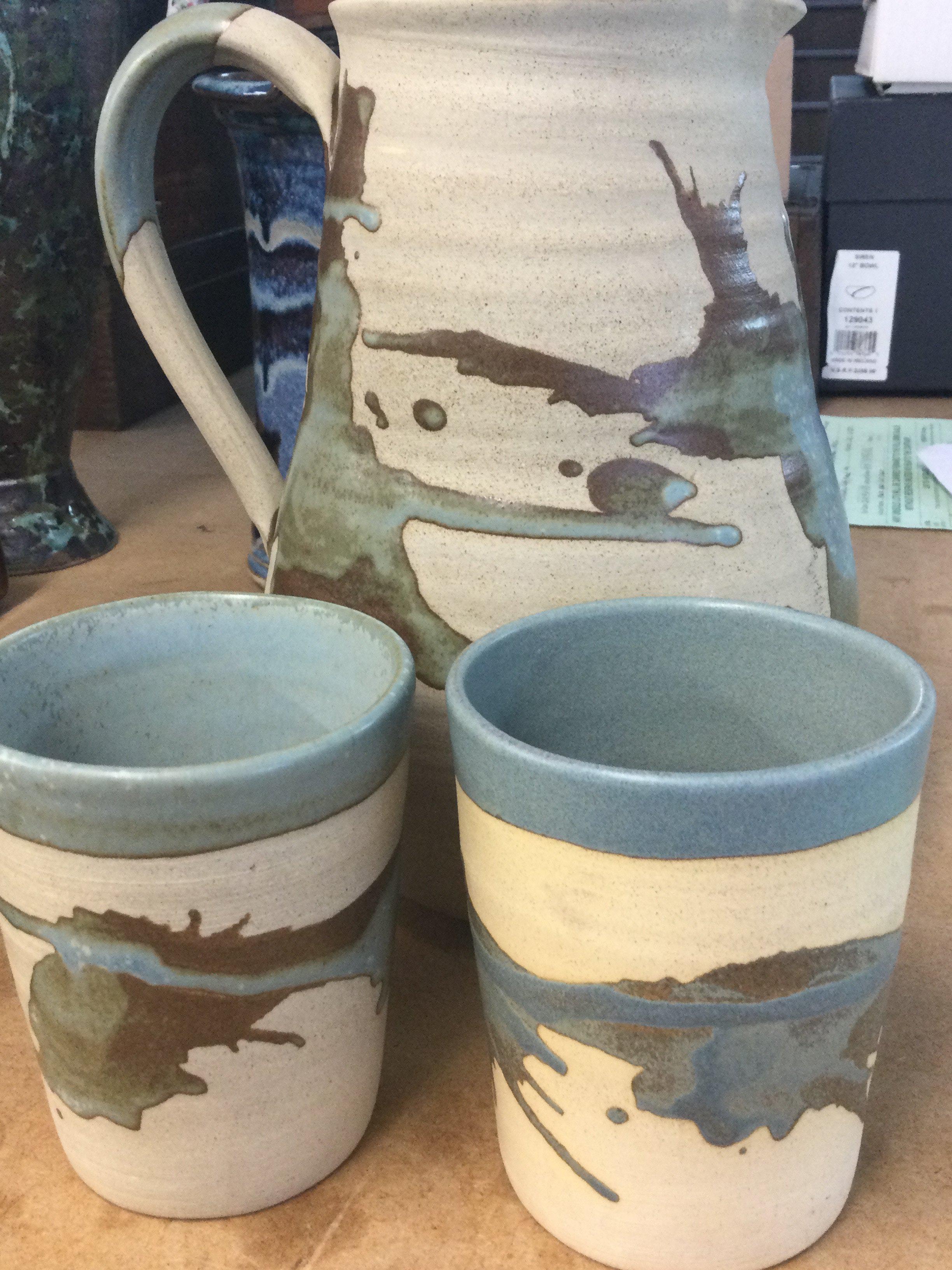 A collection of studio pottery including Roger cockran A N Watson and Brown Great Braxted pottery (7) .