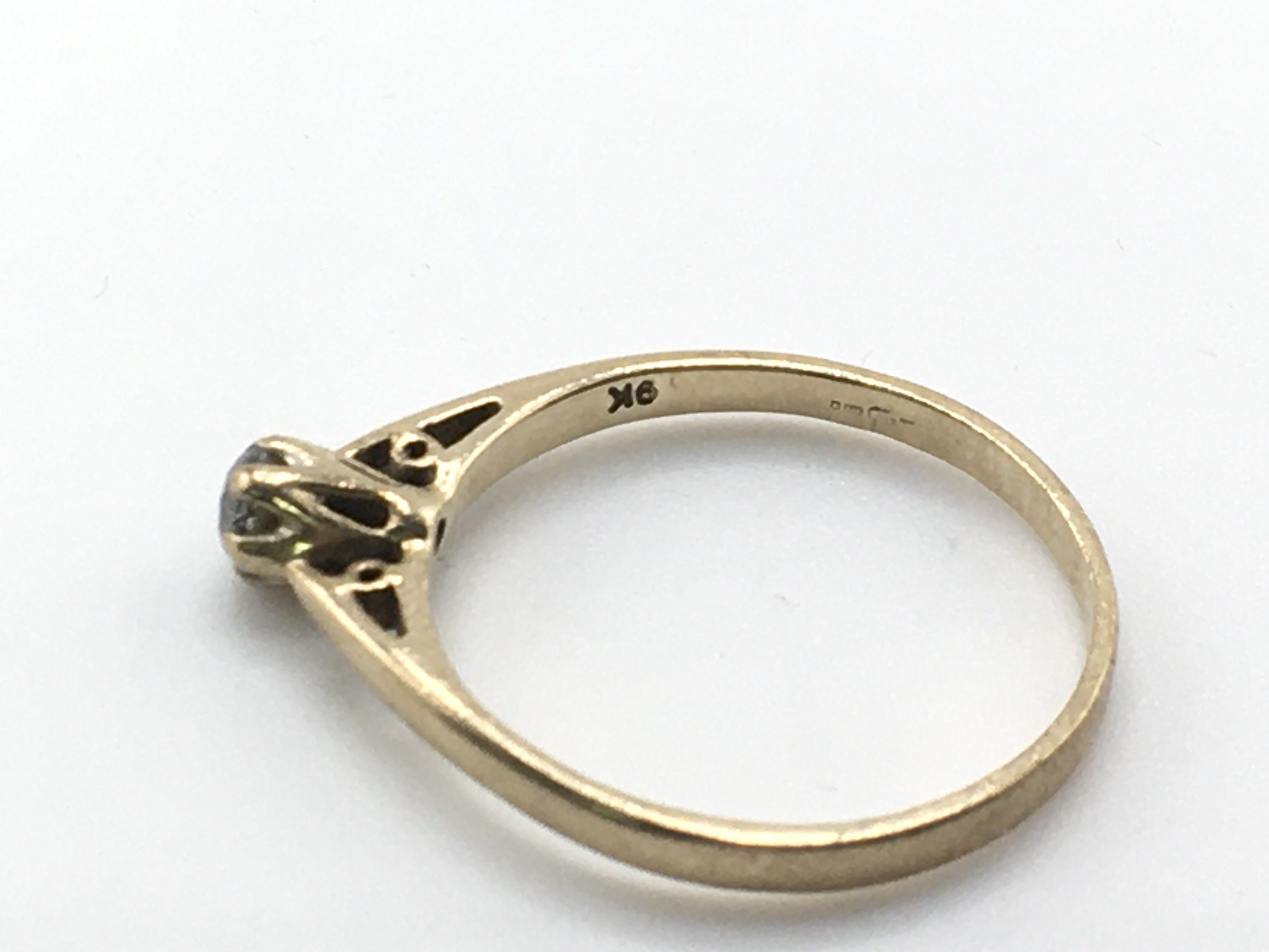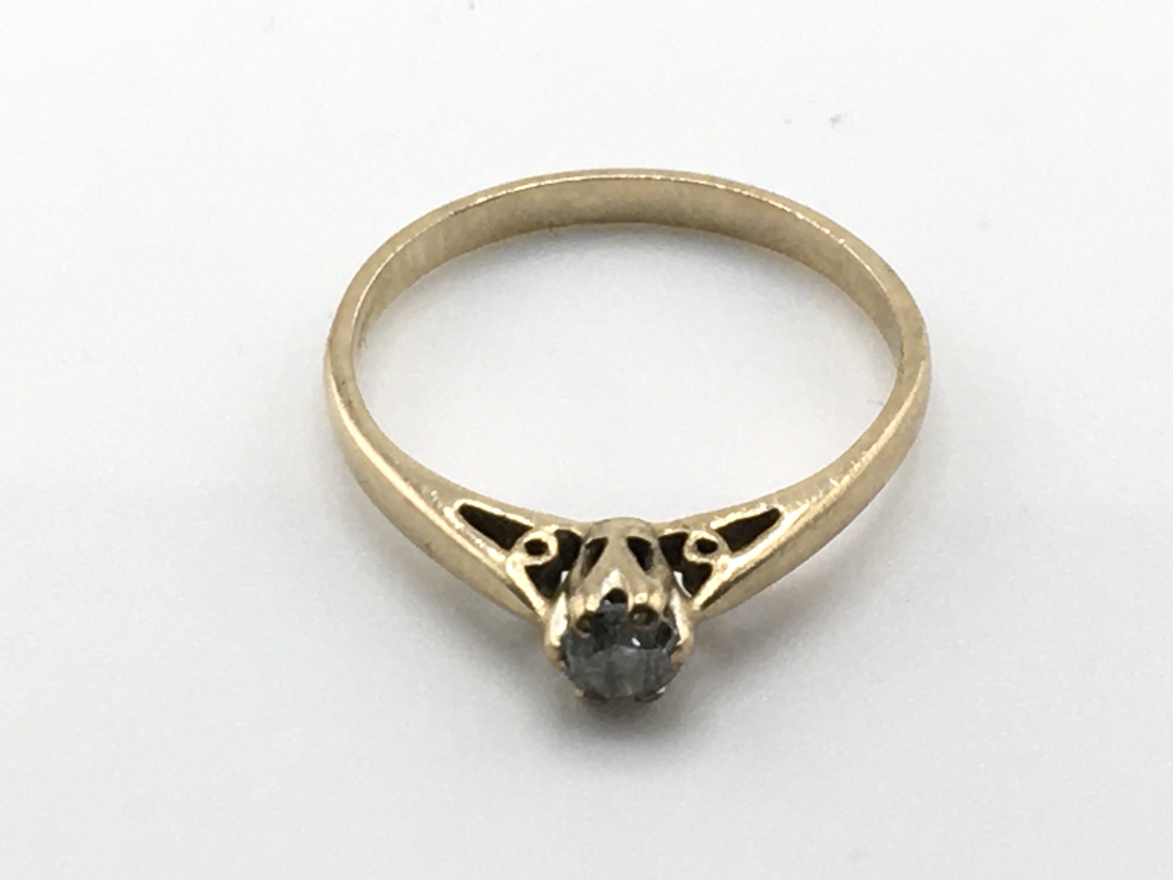 A 9ct gold ring set with a diamond solitaire approximately 0.15 size Q and 1.8g