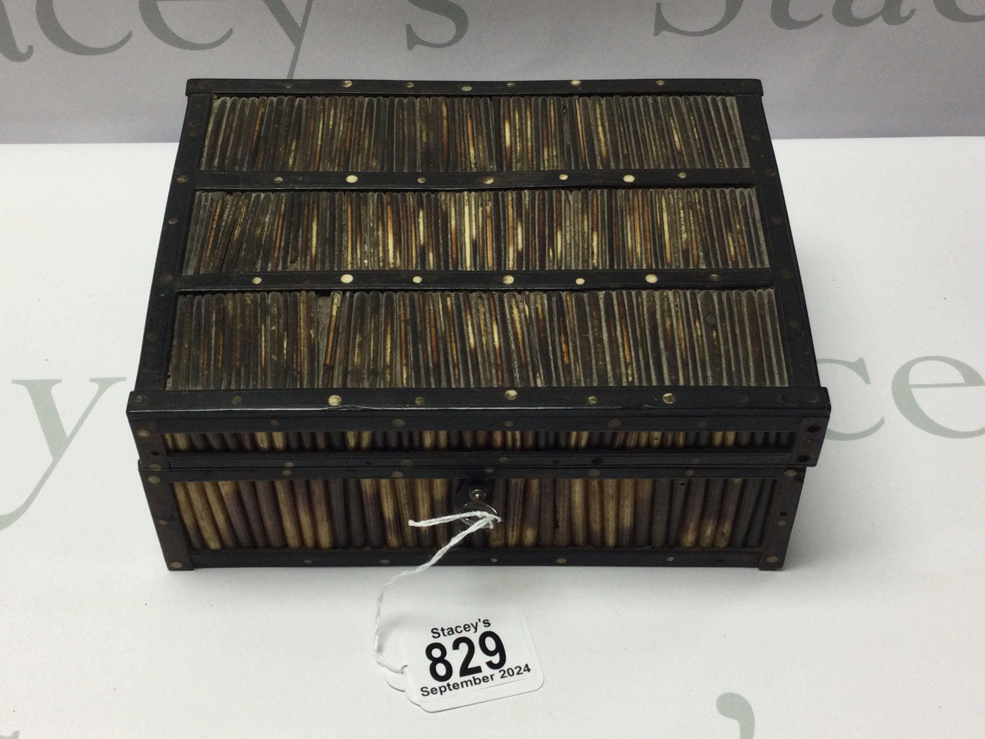 An antique Anglo Indian porcupine quill trinket box, 20cm x 15cm x 8.5cm