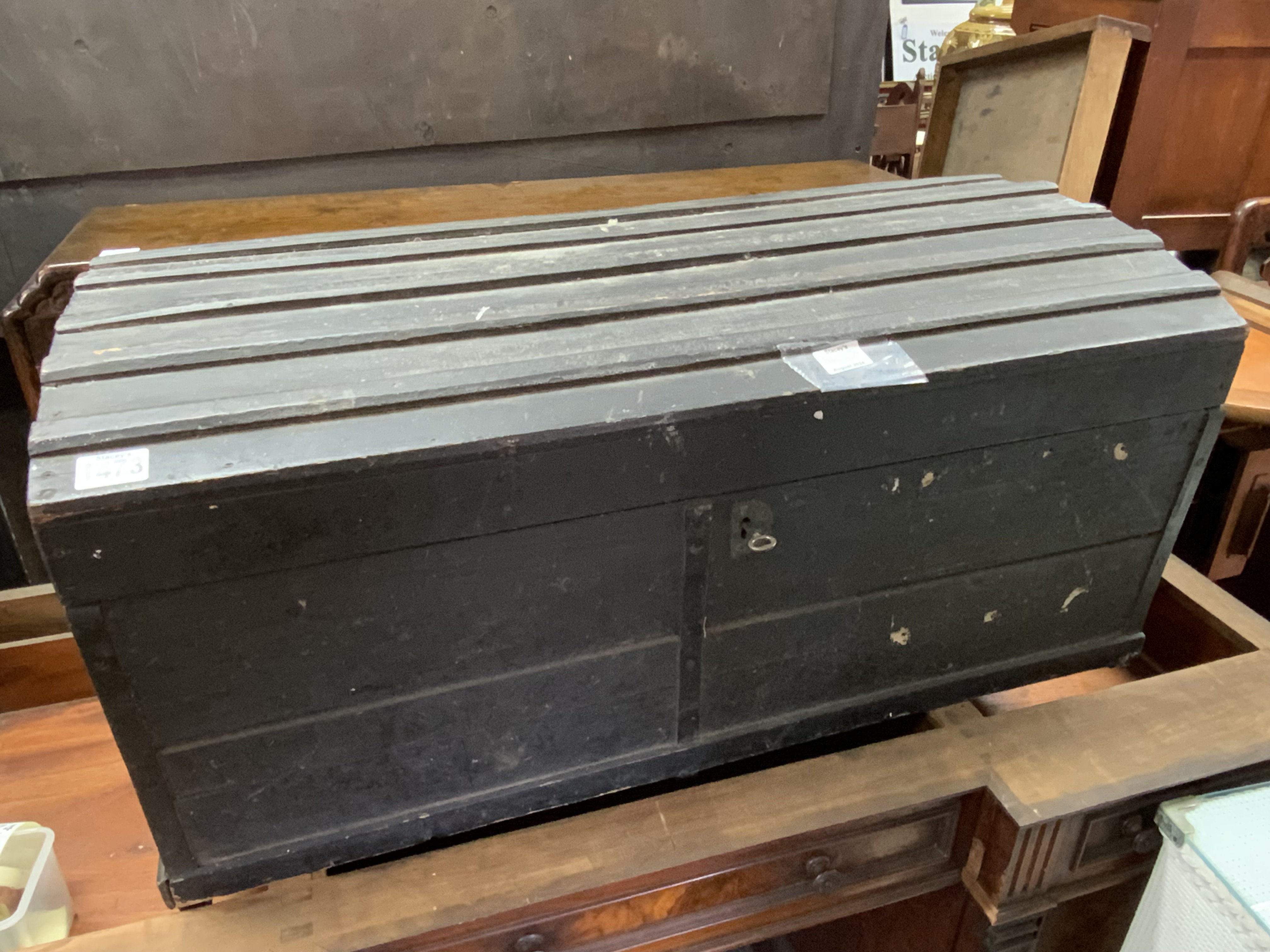 A Vintage domed topped luggage trunk. 88cm x 41cm x 45cm. NO RESERVE