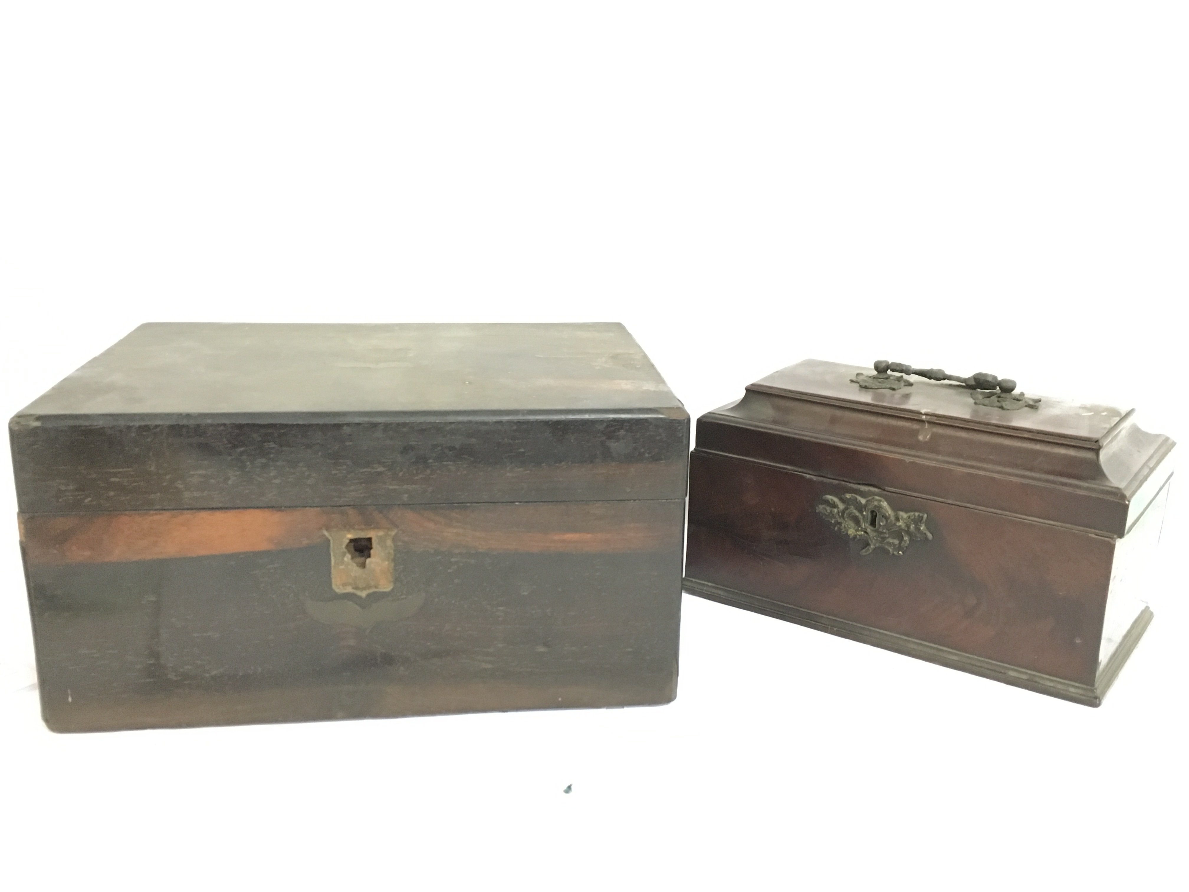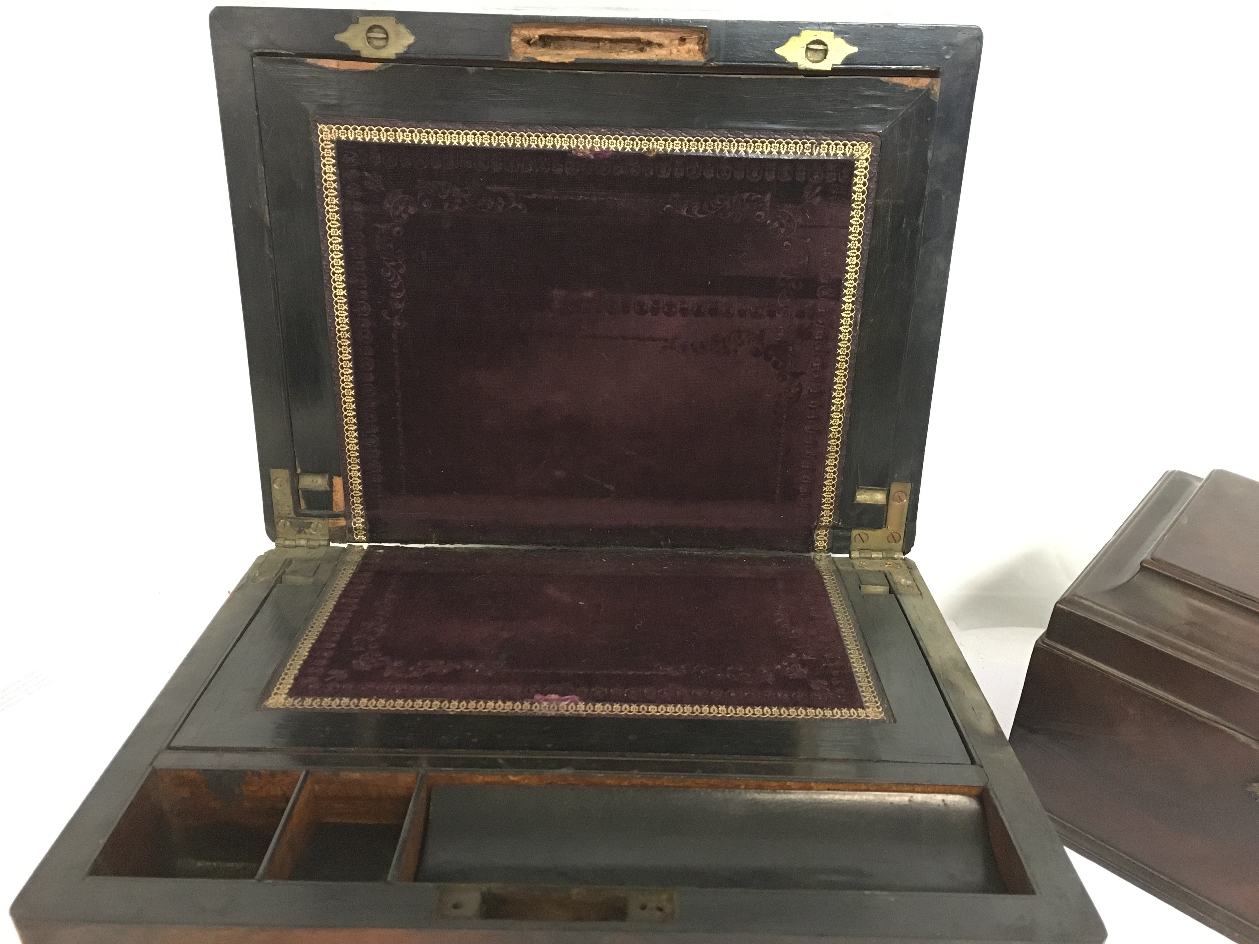 An oak Coromandel wood Writing box and a mahogany tea caddy. Postage category C