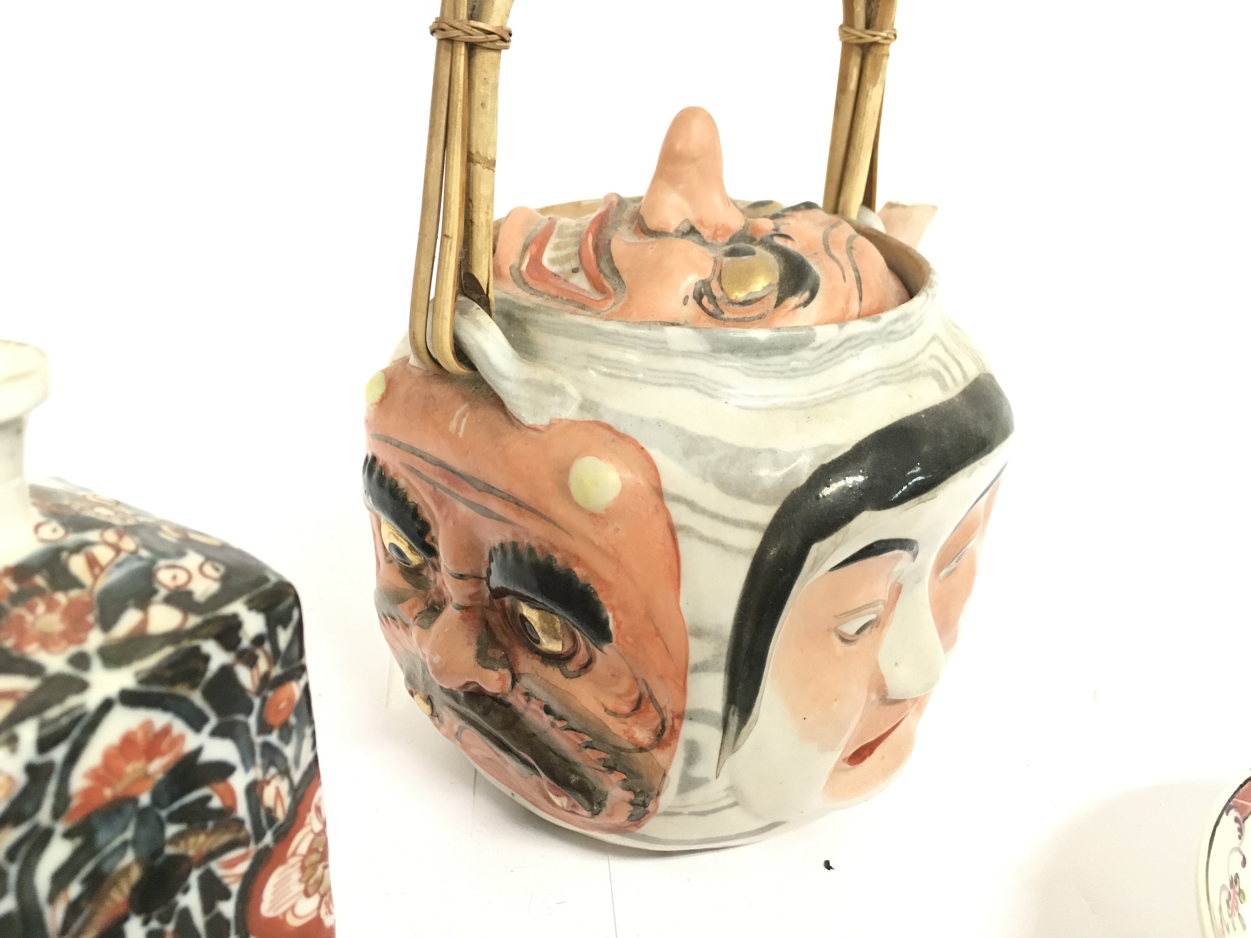 A collection of porcelain including a Wedgwood dish, Banko ware five faces teapot, Imari vase etc. This lot cannot be posted. NO RESERVE