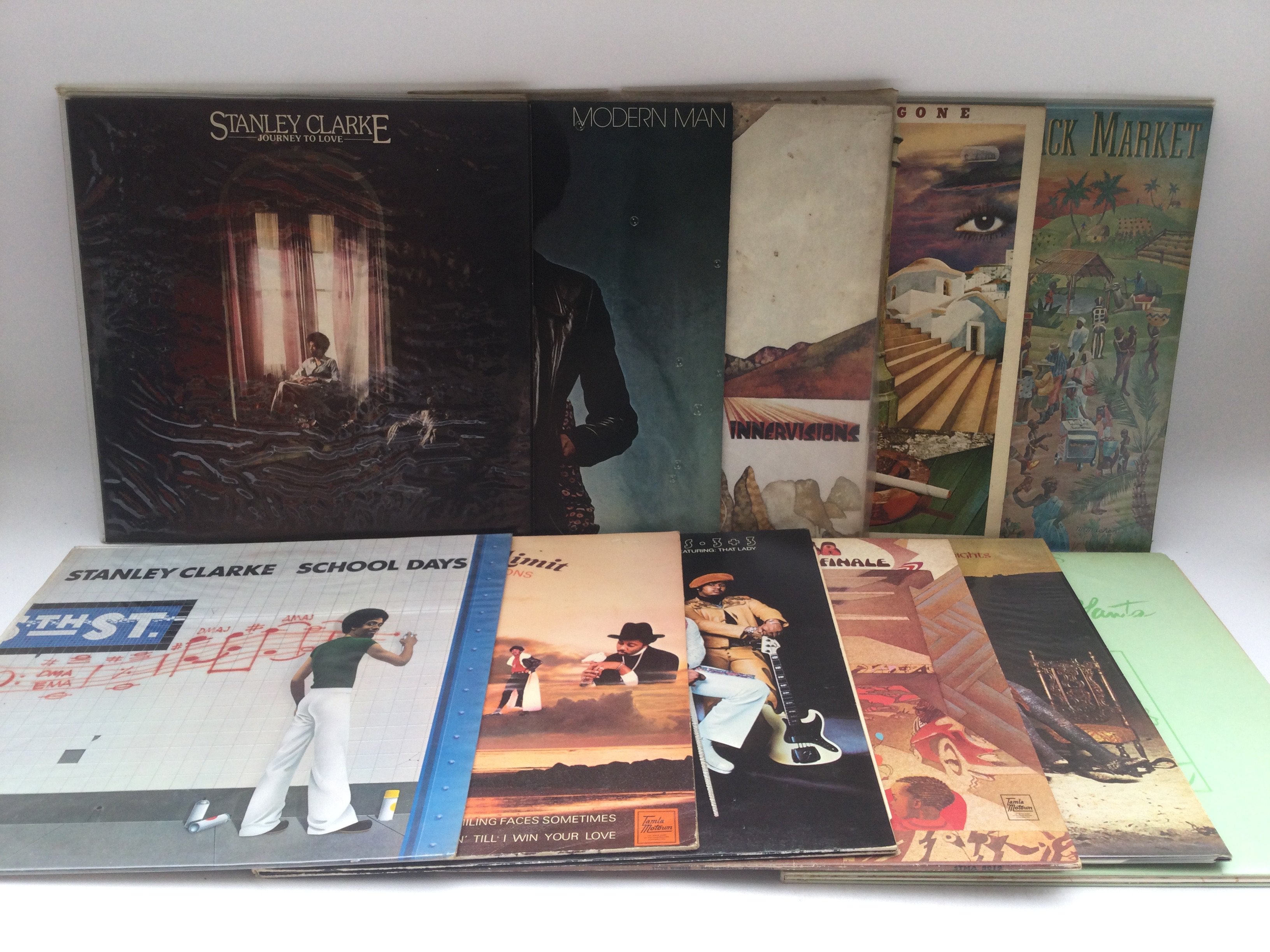 Eleven funk and soul LPs by various artists including Stanley Clarke, Stevie Wonder and others.