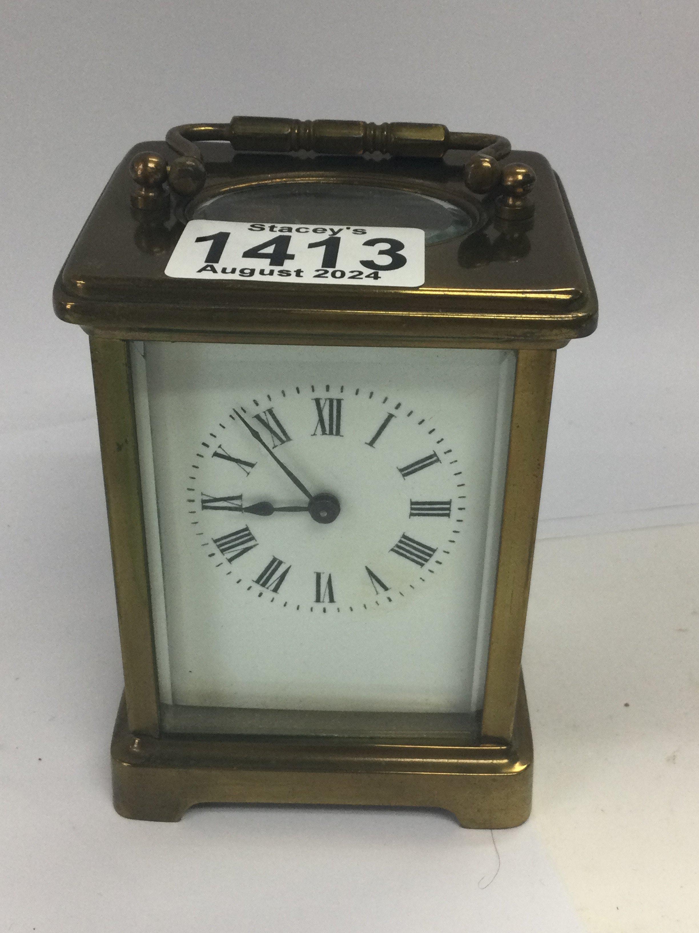 A brass carriage clock the dial with Roman numerals. NO RESERVE