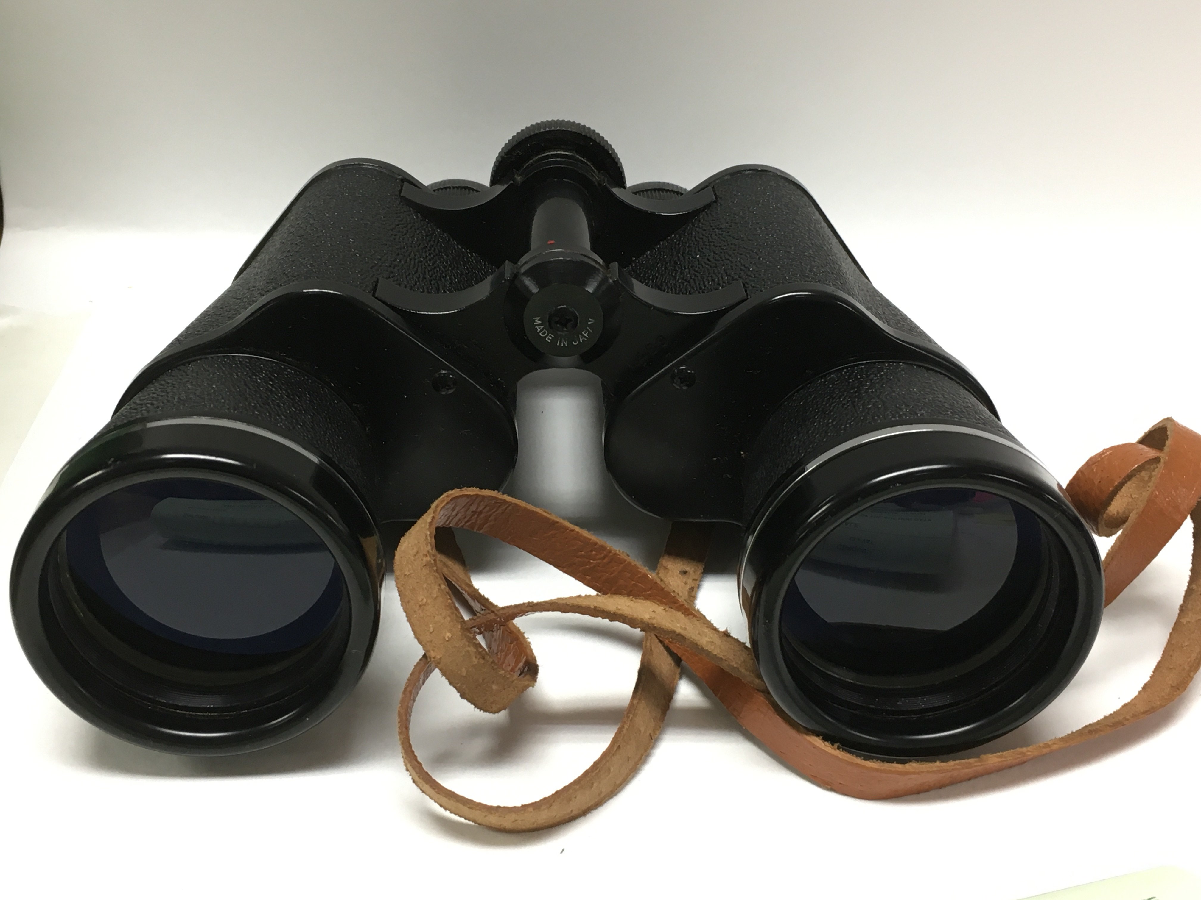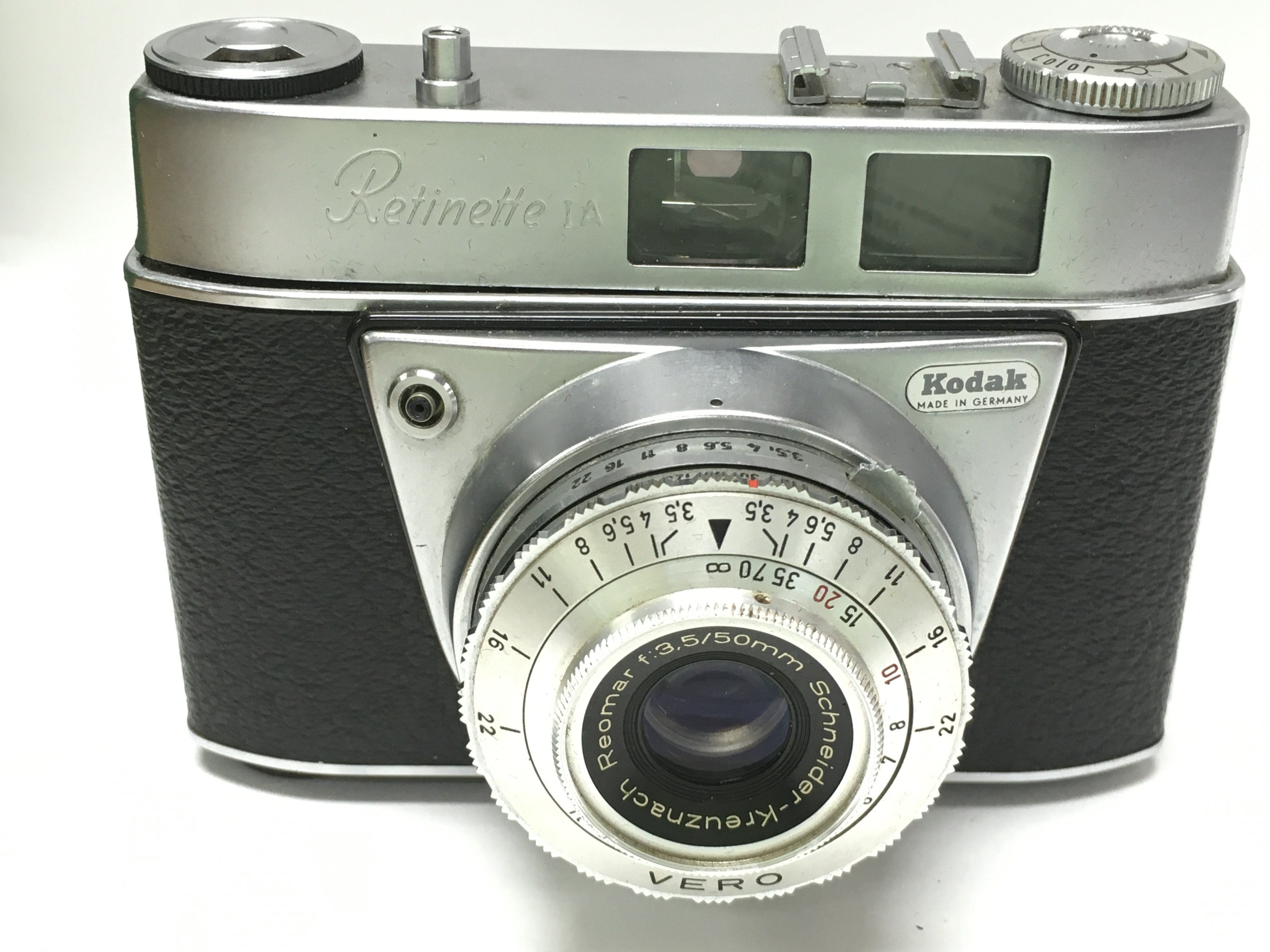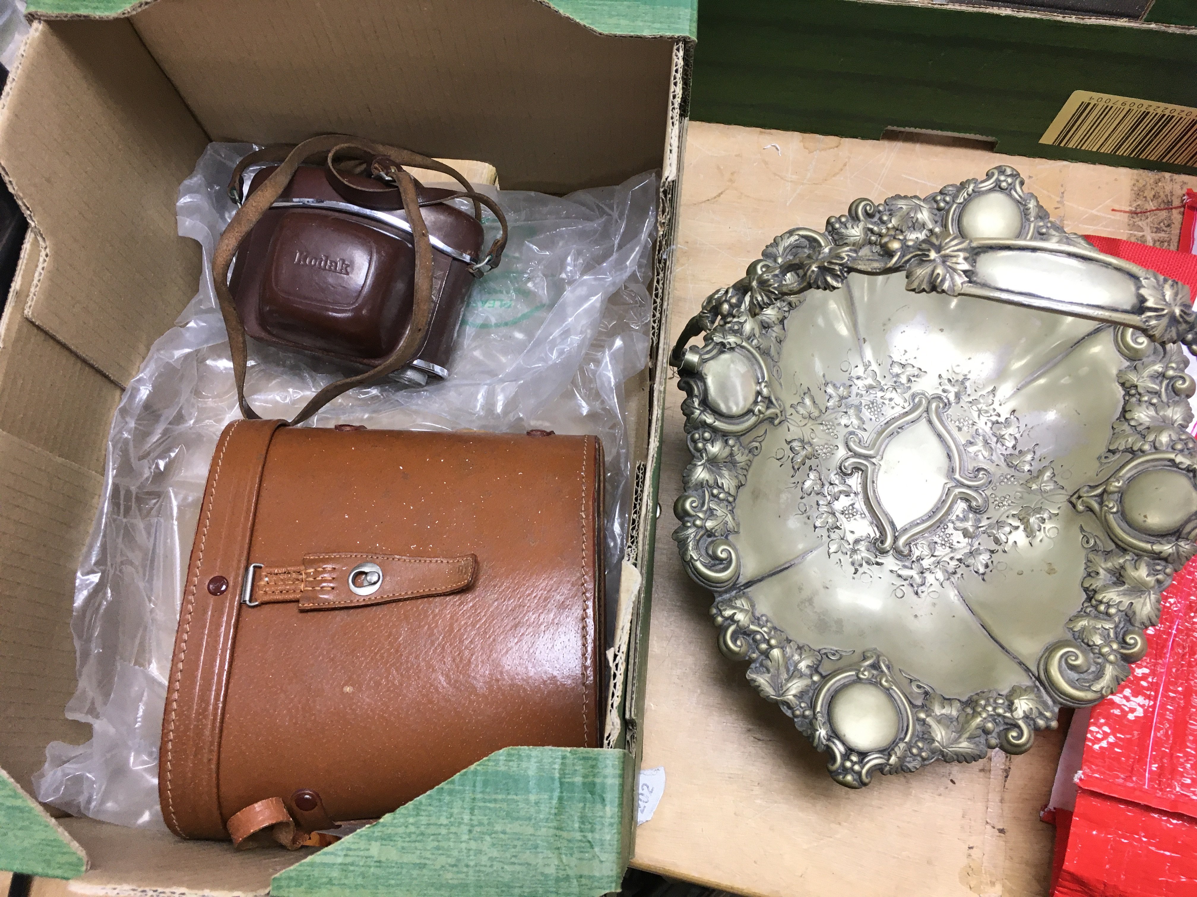 A Viper 10x50 set of leather cased binoculars , leather cased Kodak Retinette 1A camera and a plated dish