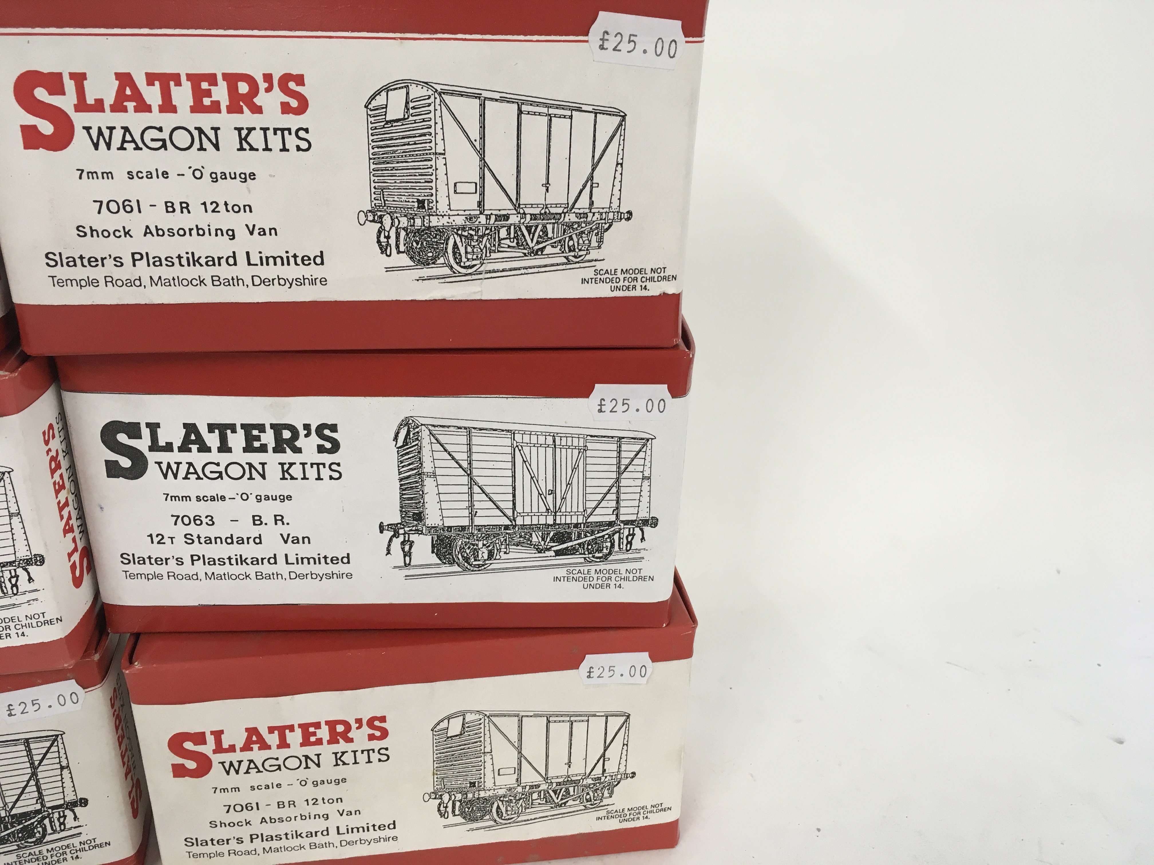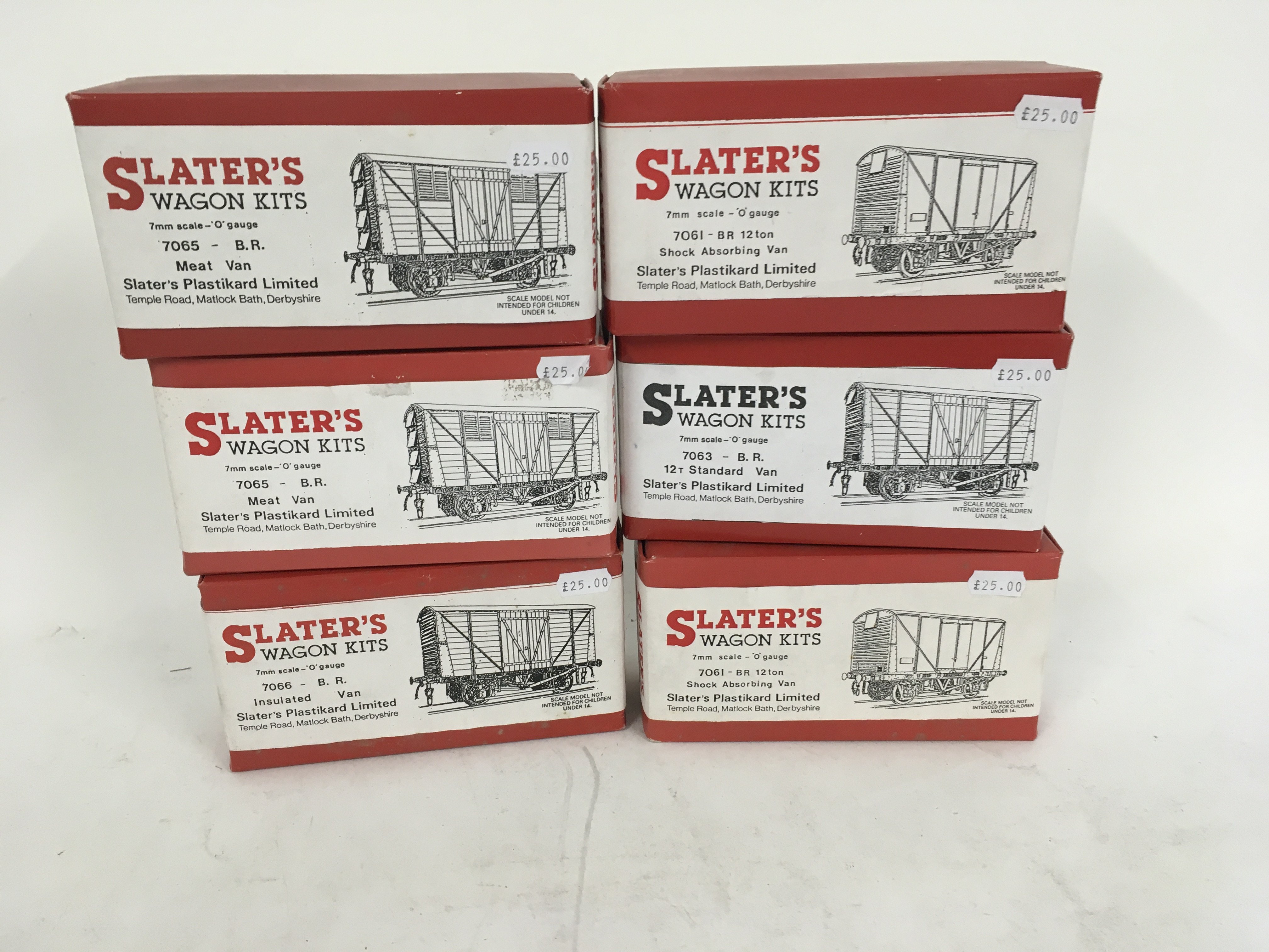 A collection of 6 new and boxed model railway wagon kits by Slaters. 0 gauge