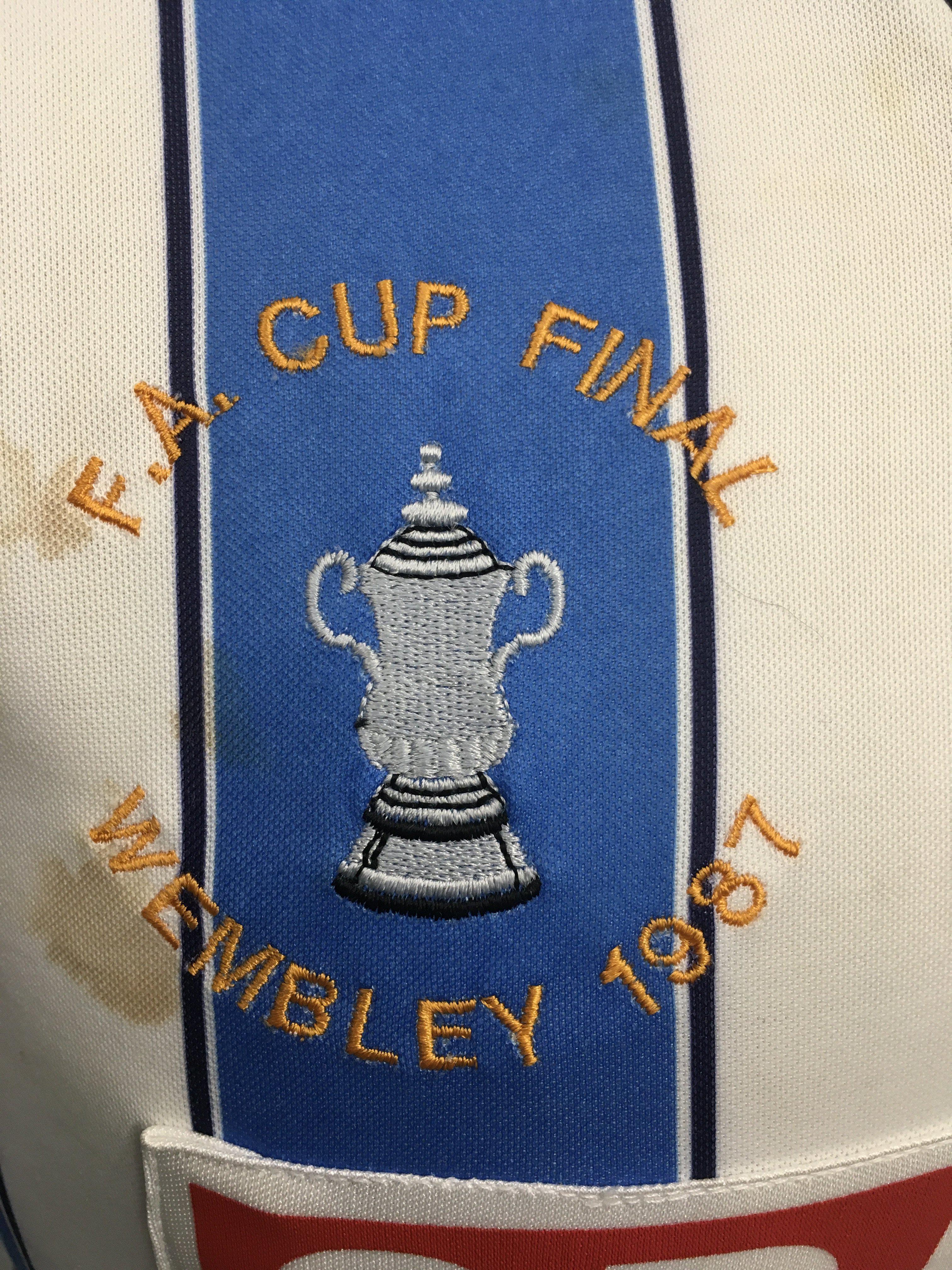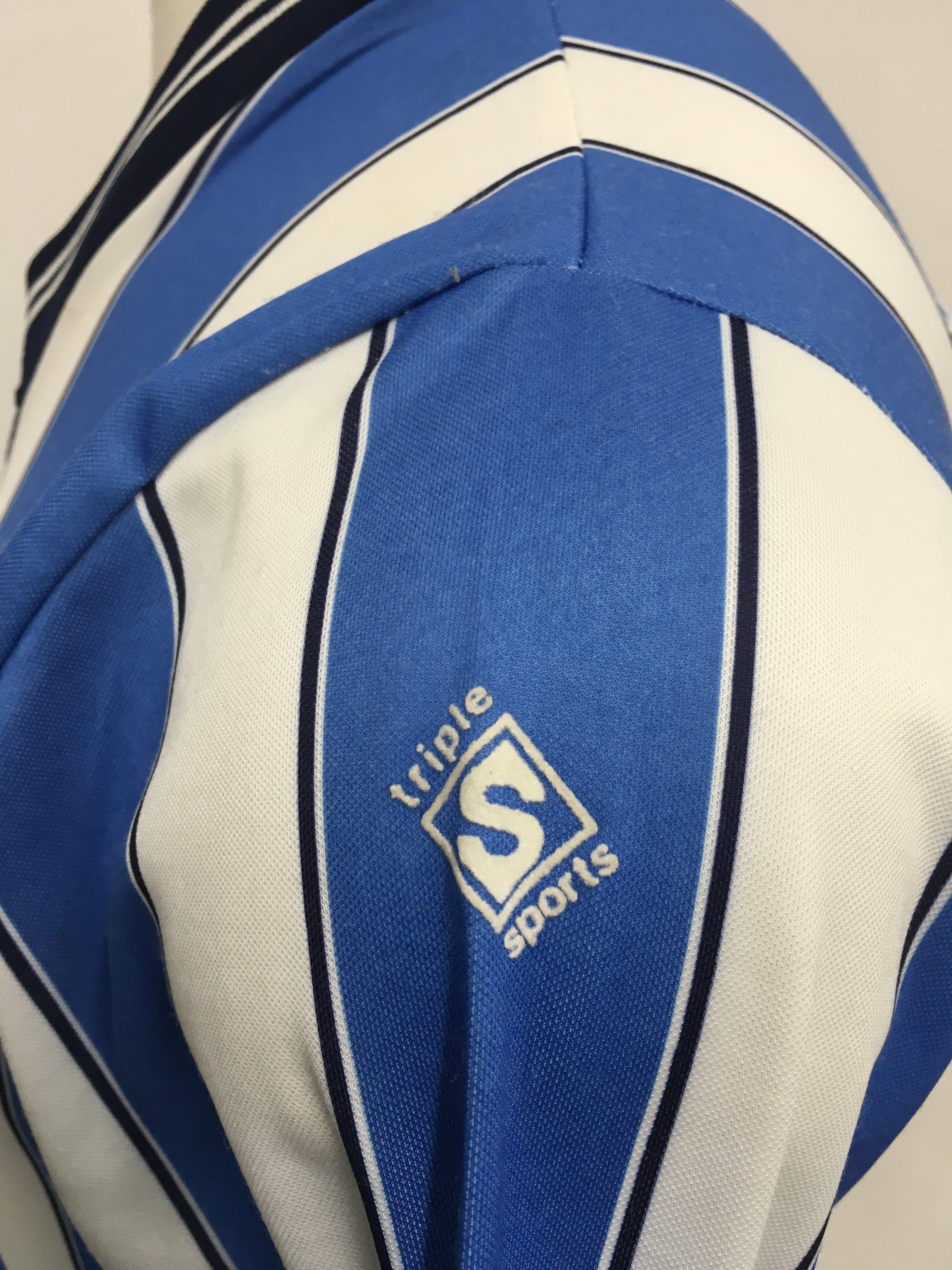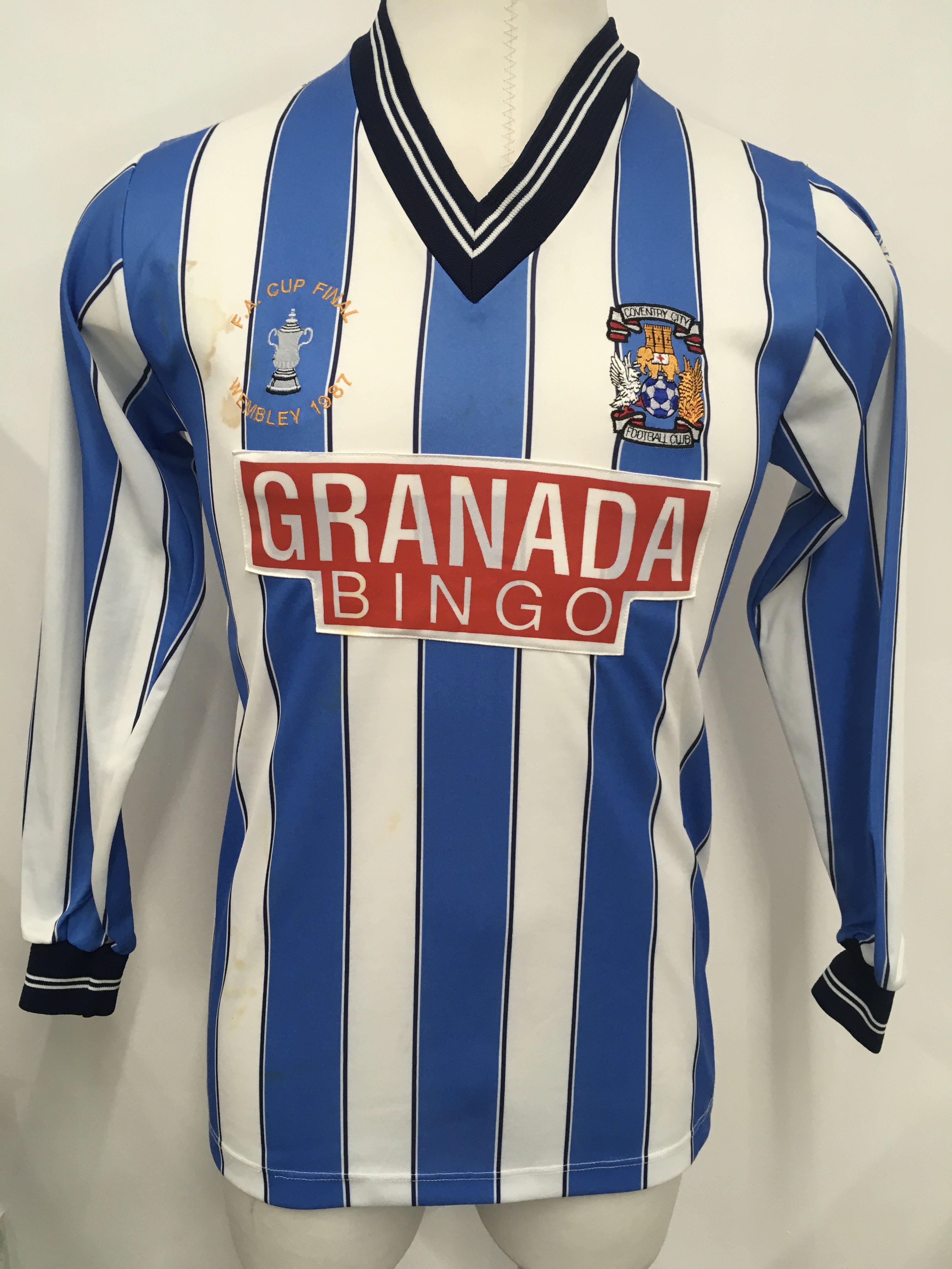 1987 Coventry FA Cup Final Match Issued Football Shirt: Long sleeve blue and white striped shirt made by Triple Sports with Granada Bingo sponsorship. Issued to David Phillips with number 2 to rear. David and some of the other players opted to wear short sleeves in the famous 3-2 victory over Tottenham.