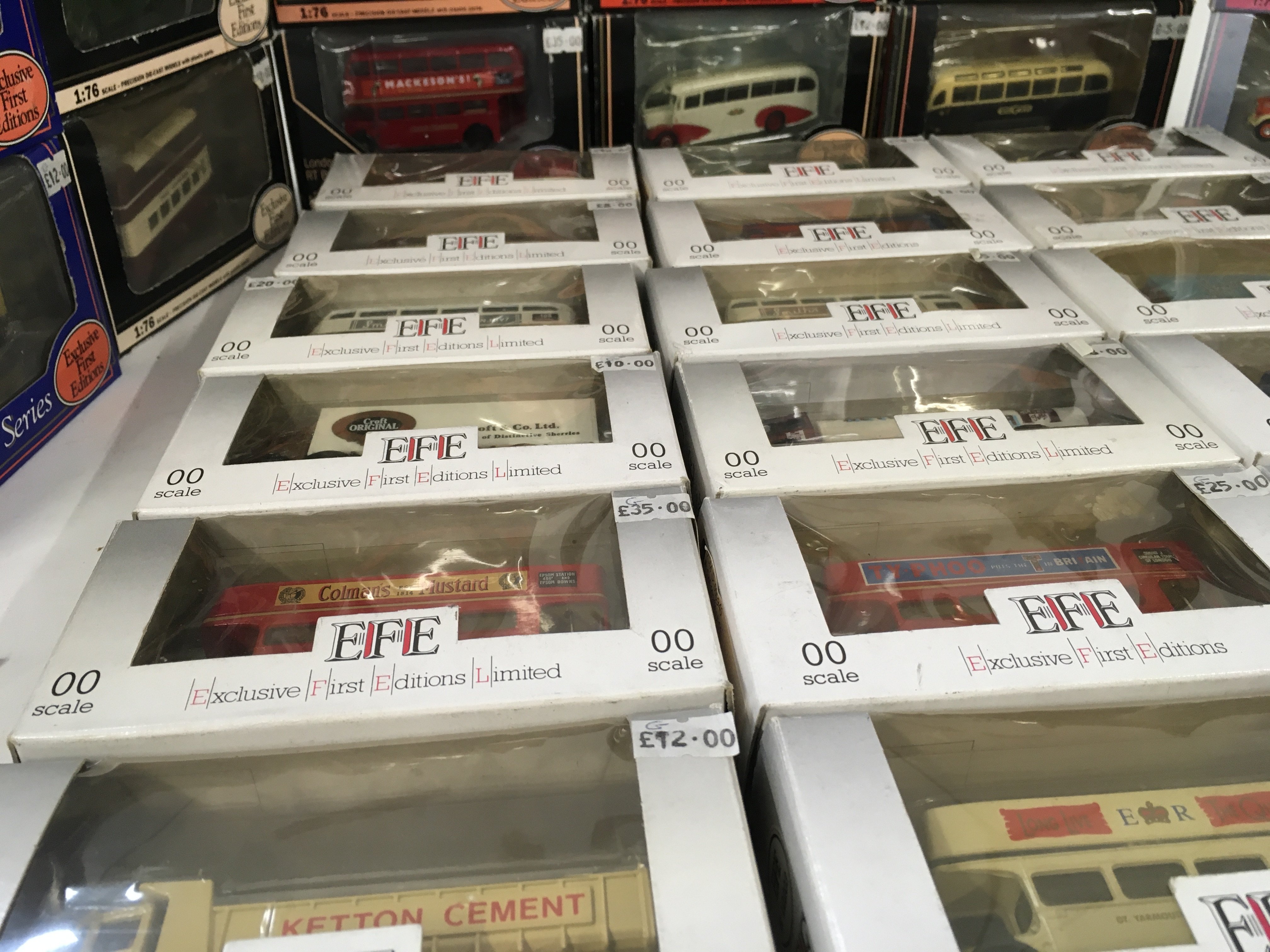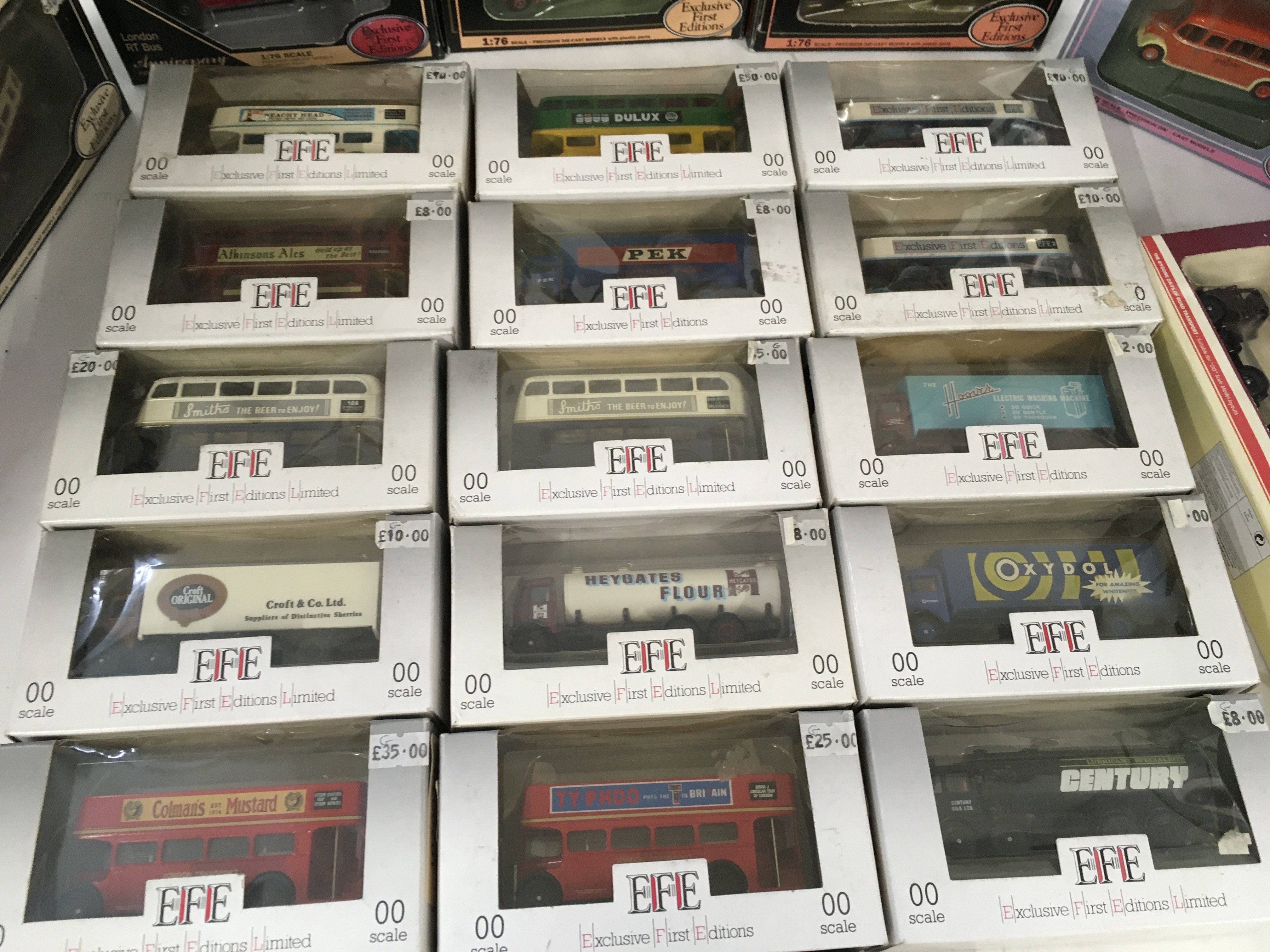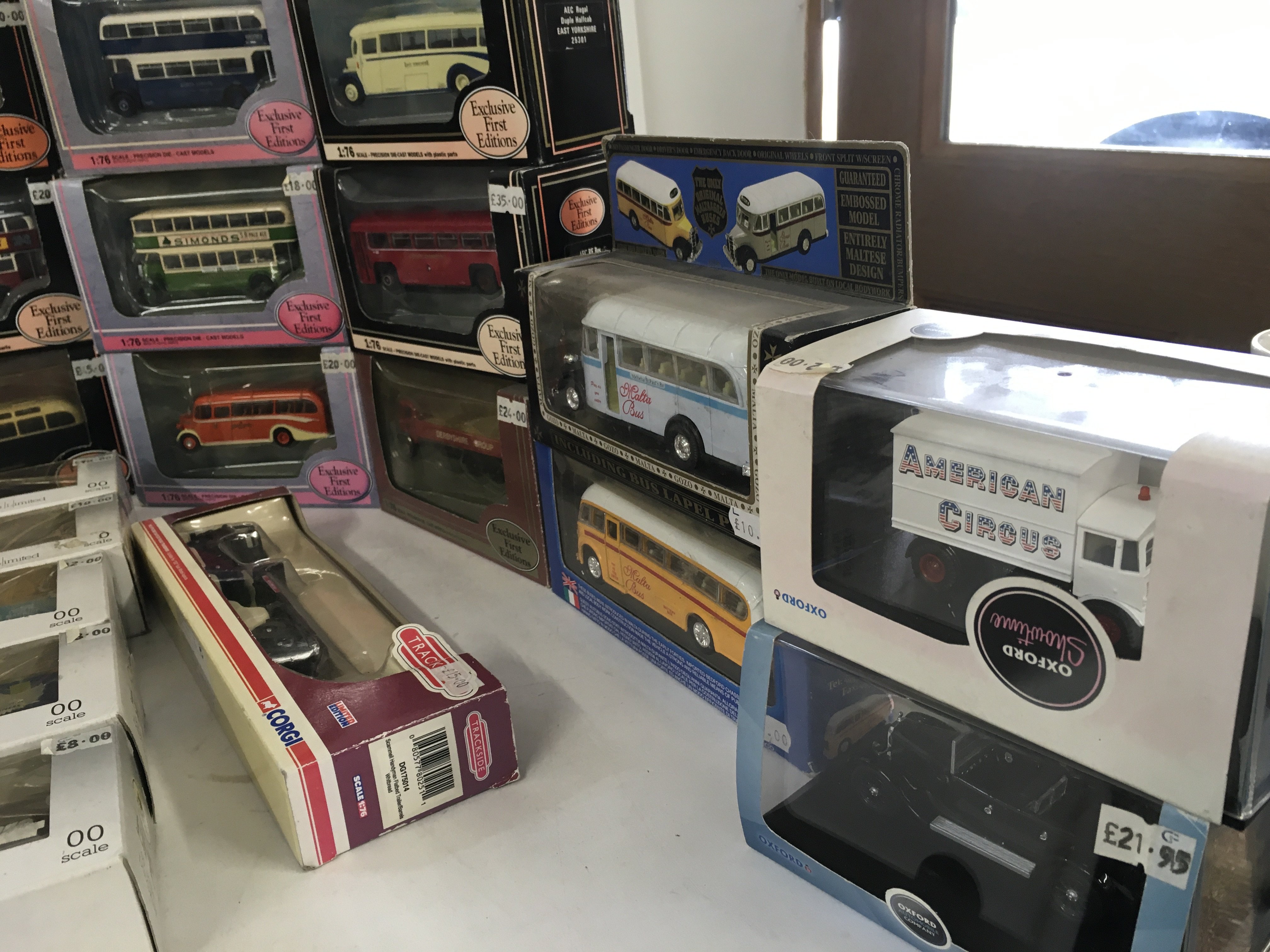 A collection in excess of 30 boxed model buses lorries and vans. Mostly EFE but also corgi and Oxford.