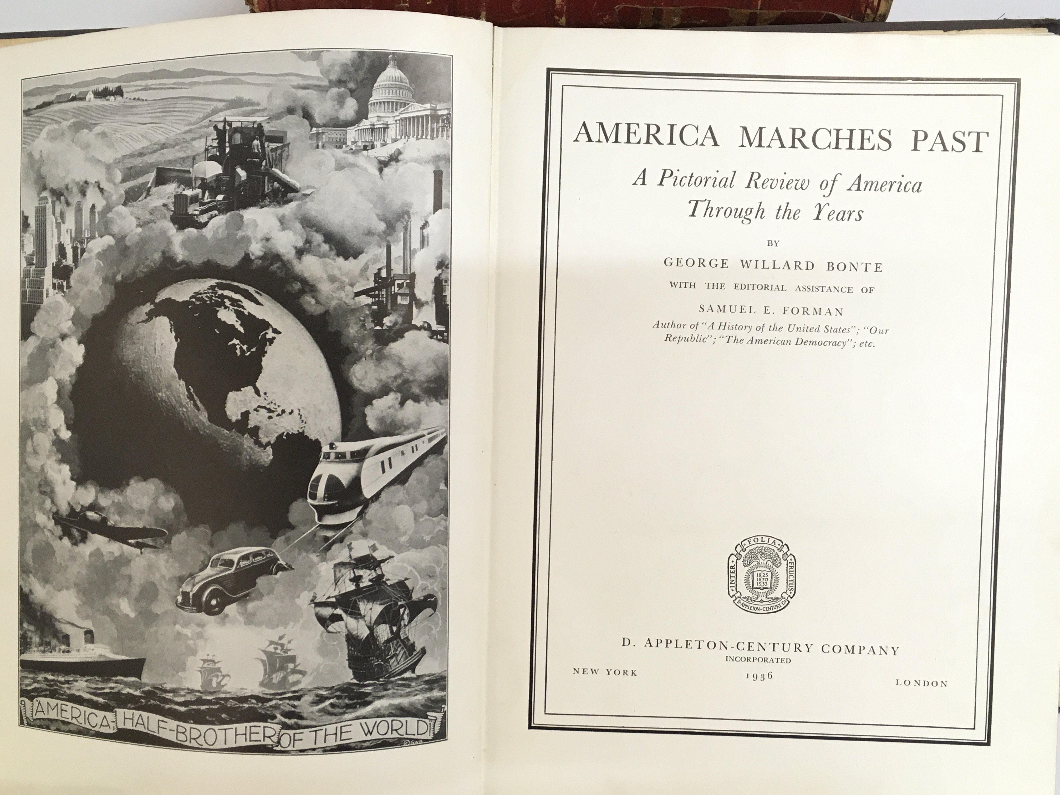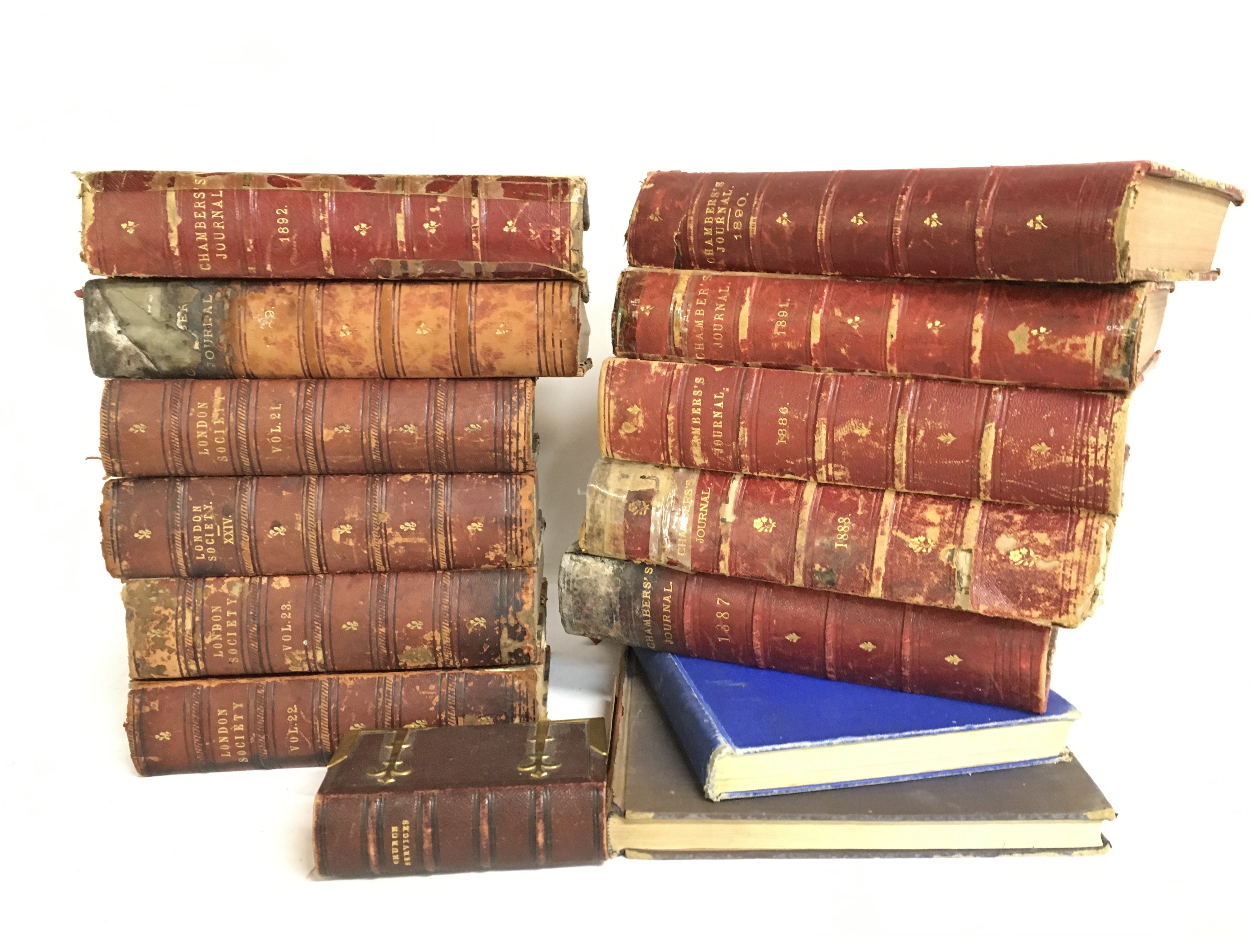 A collection of London Society books, Chambers Journals, leather bound common prayer book, America Marches Past by George Willard Bonte and a Royal Scotland book. This lot cannot be posted. NO RESERVE