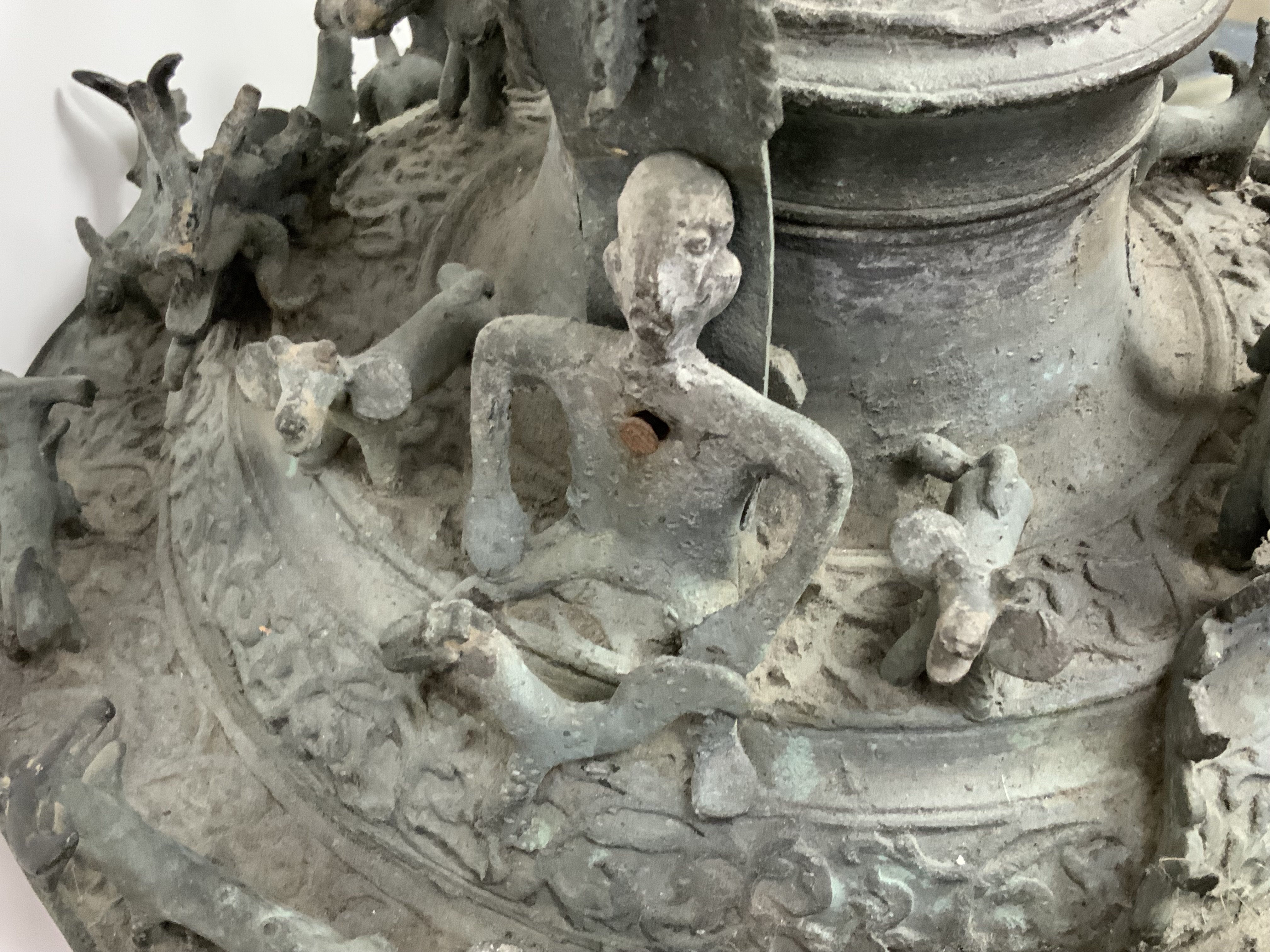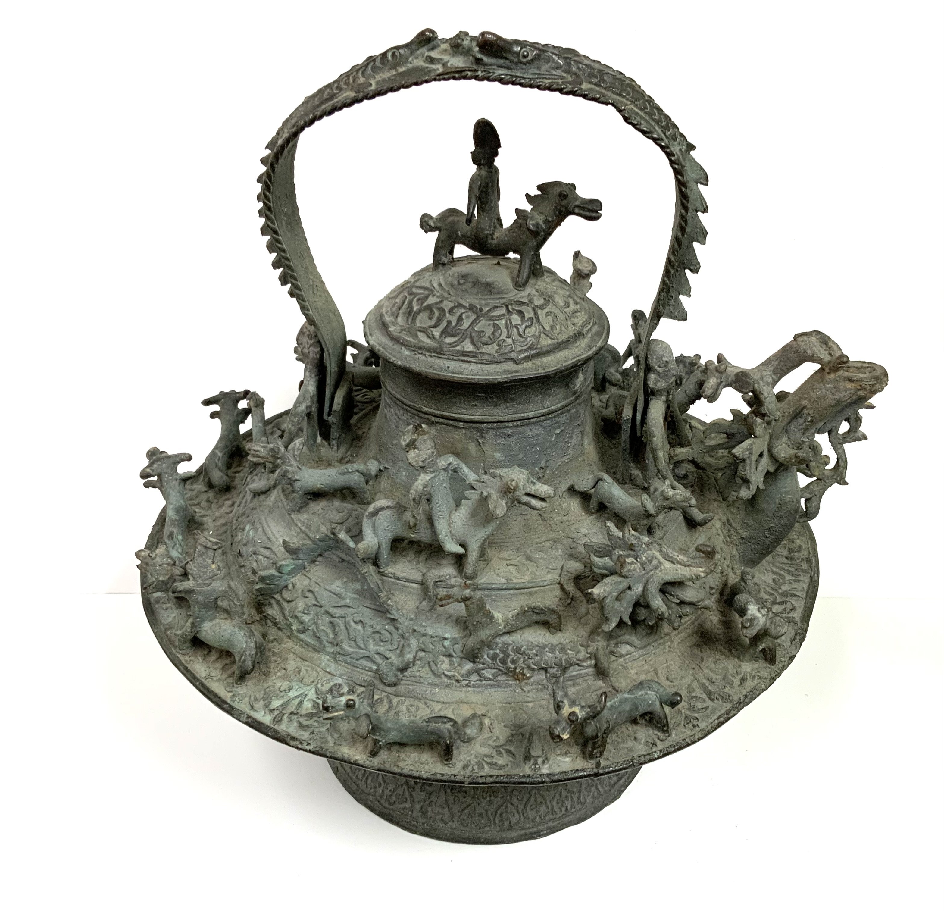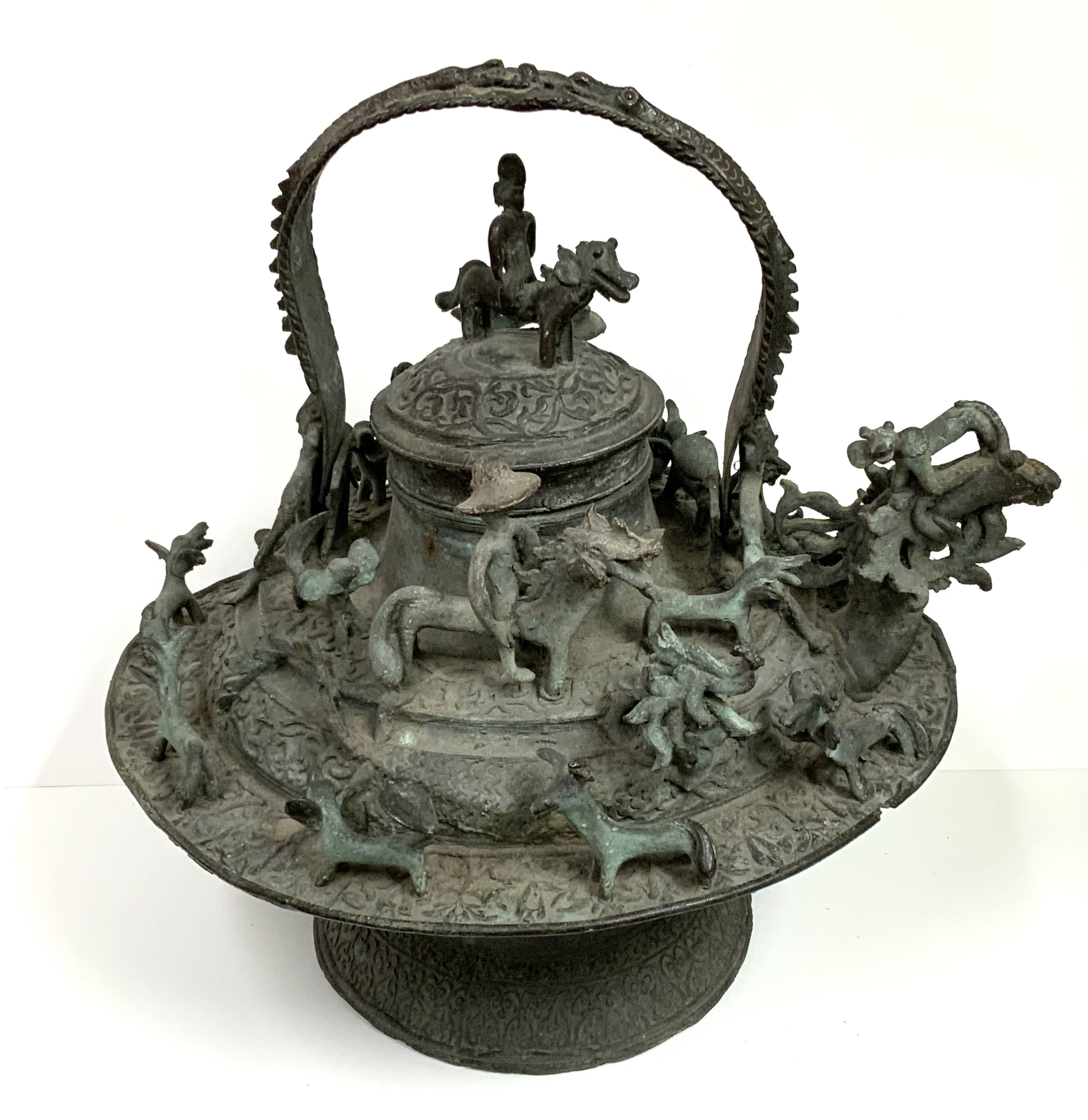 A pair of large 19thC Malay Bronze Ritual Kettles and Covers. (D)