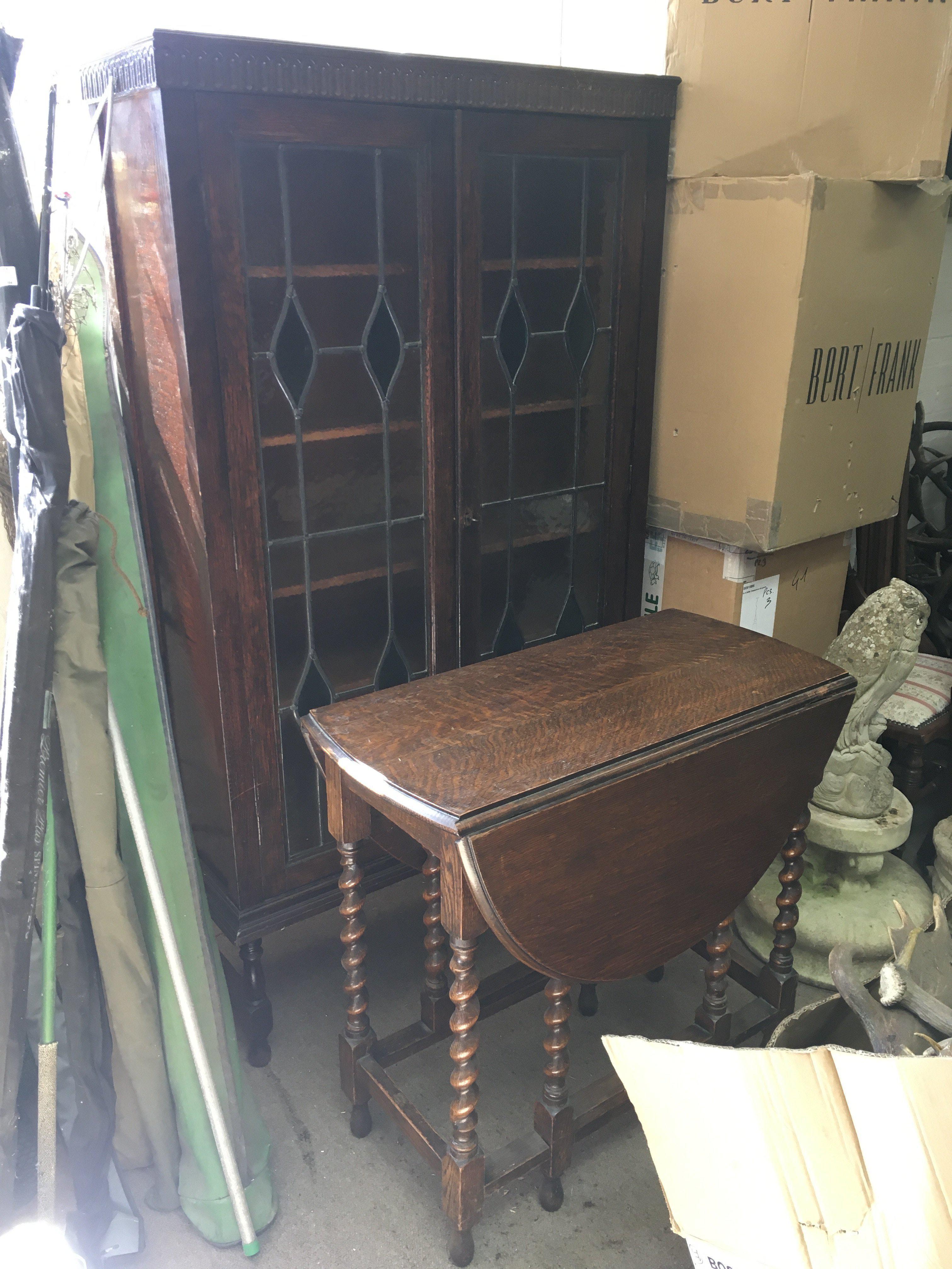 An oak bookcase 29x86x154cm and a oak drop leaf table 39x72x72cm. NO RESERVE