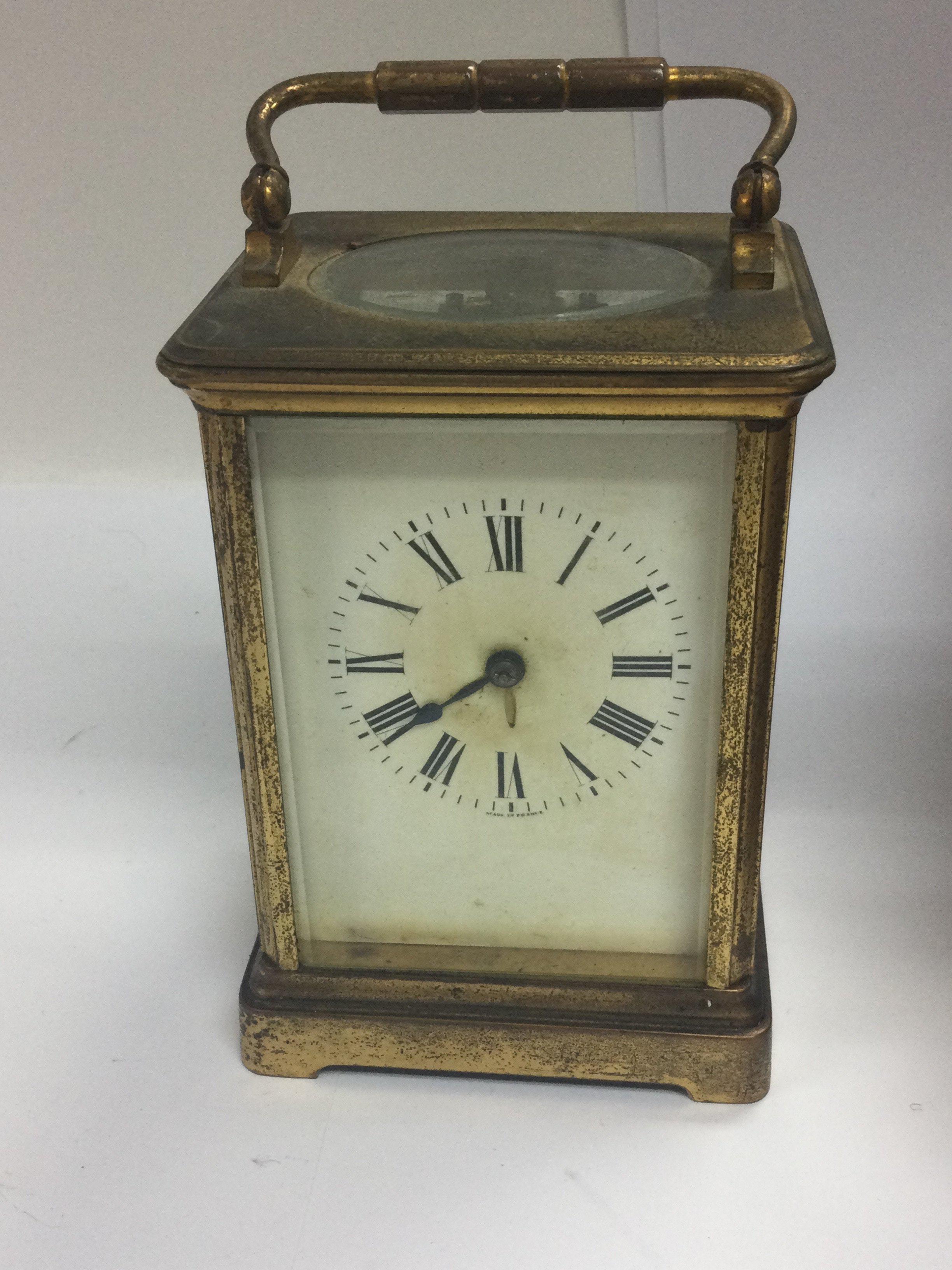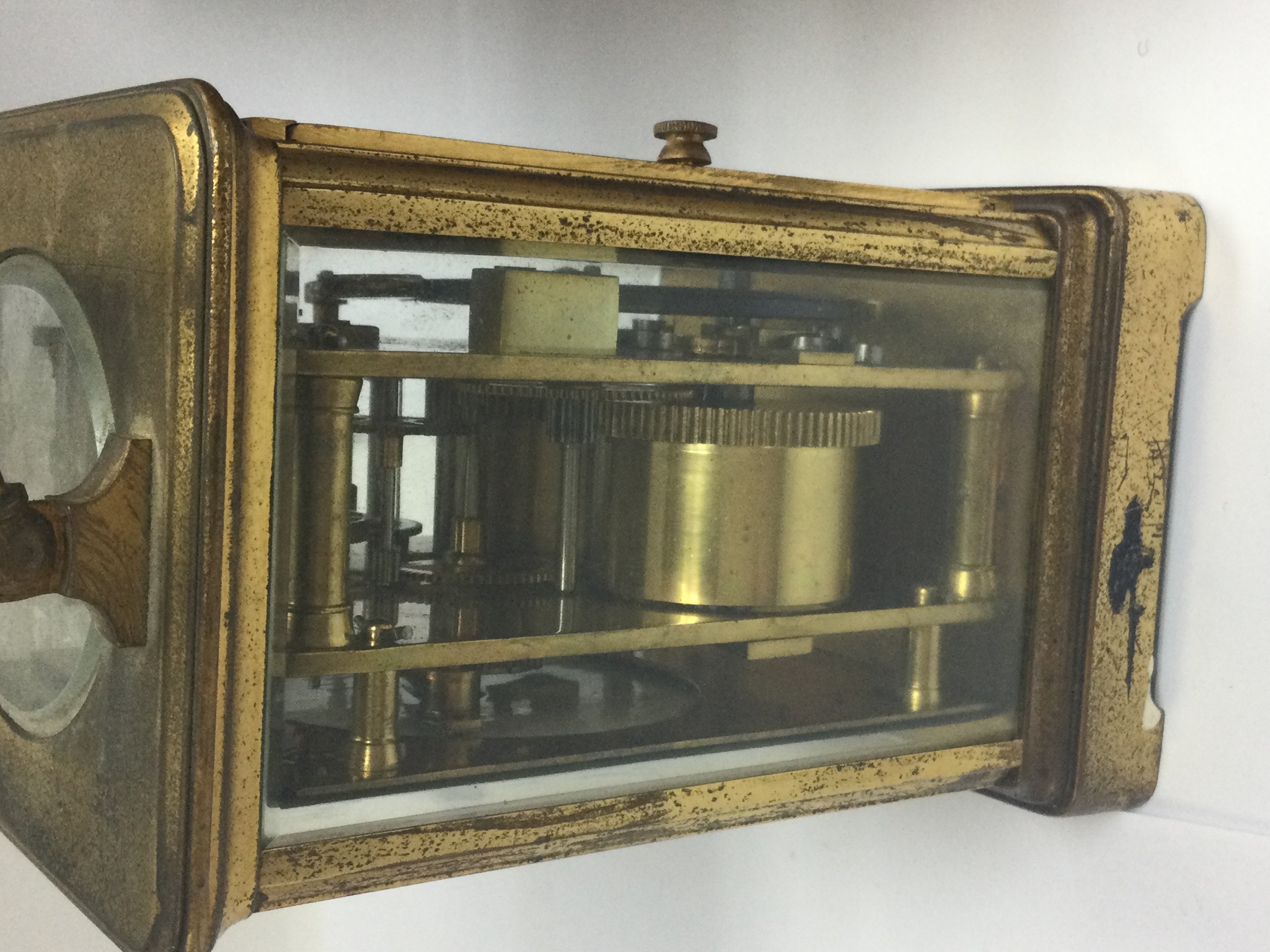 A brass case carriage clock in fitted leather case. NO RESERVE