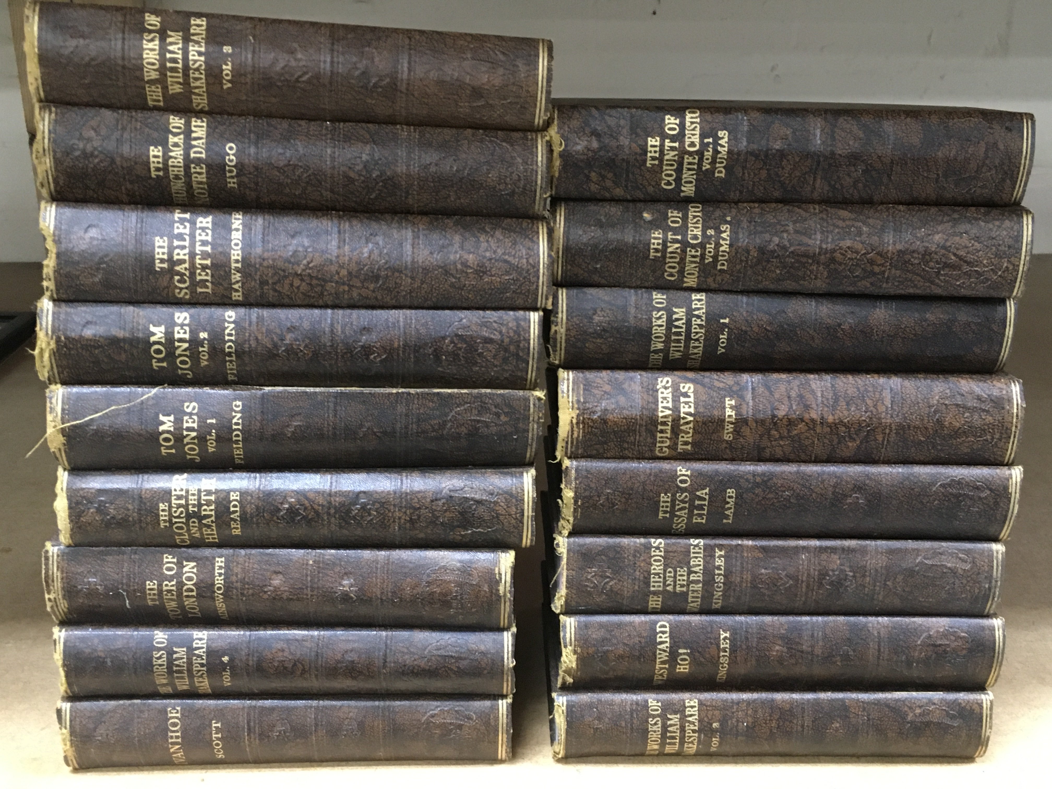 A collection of vintage Odhams Press Leather bound books including The Count of Monte Cristo, The Tower of London, Tom Jones etc. This lot cannot be posted