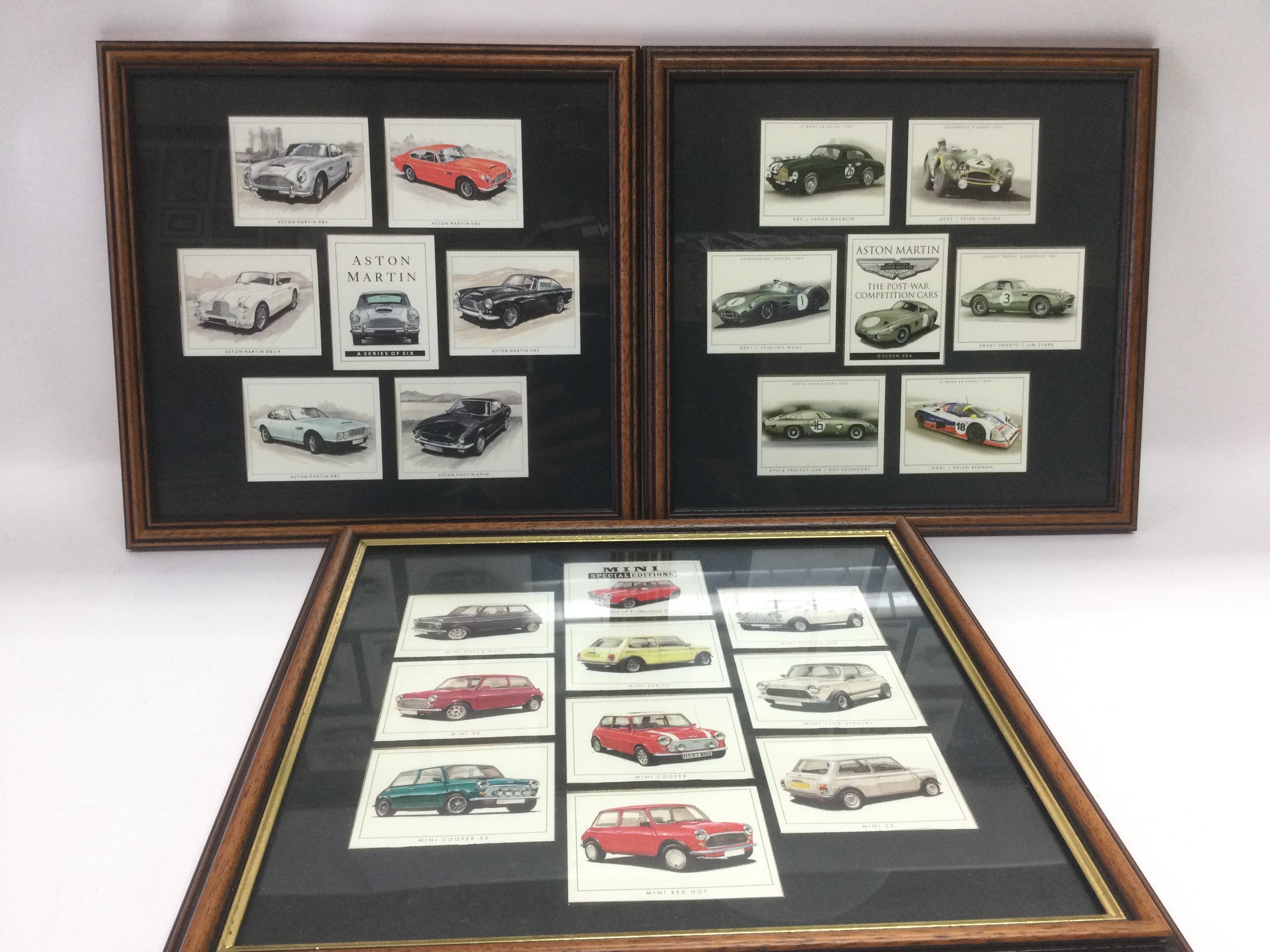 Three framed sets of collector's cards of automobiles. Shipping category D. NO RESERVE