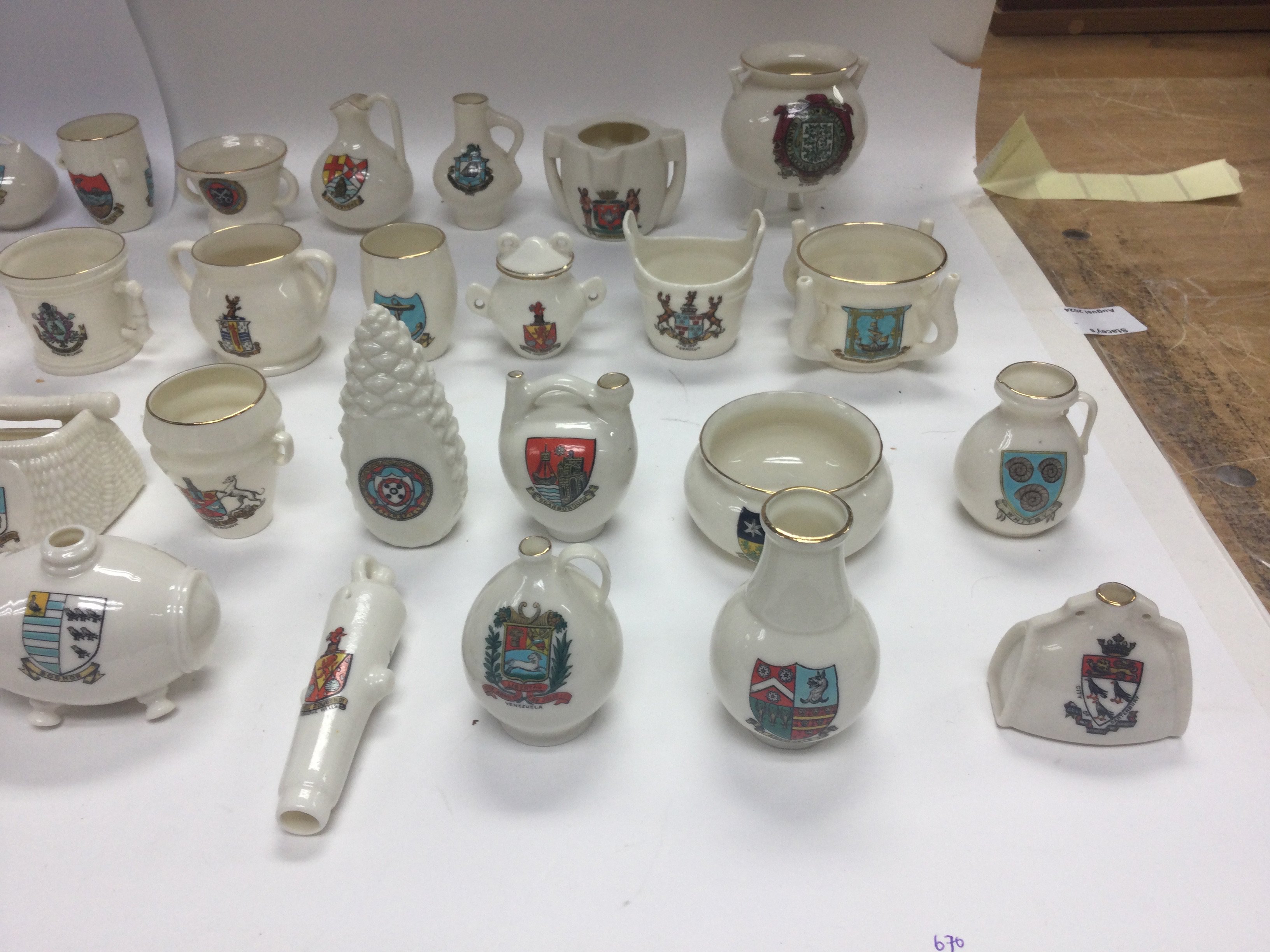 A collection of 55 items of WH Goss ware with various crest and model shapes .