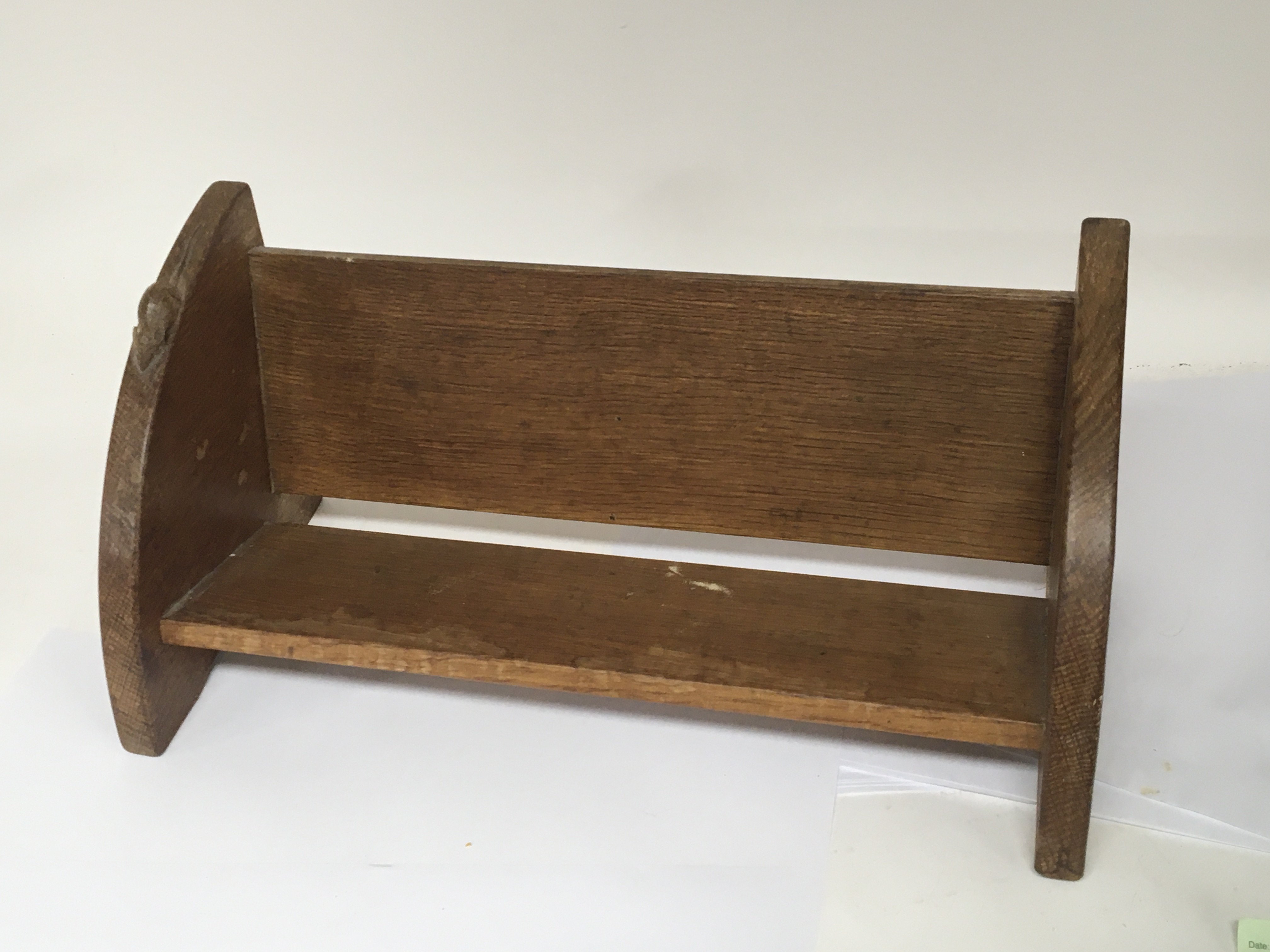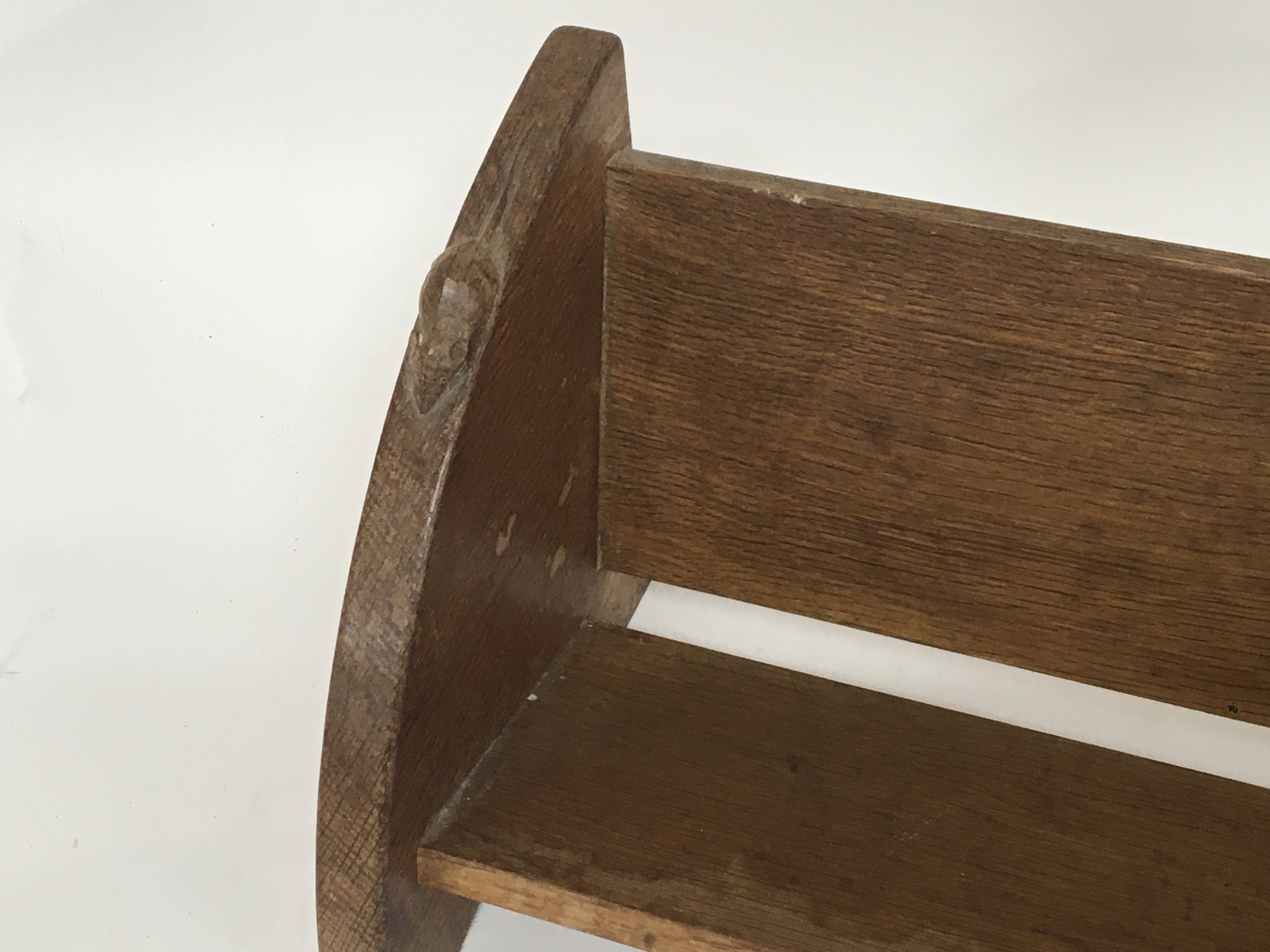 A Robert Thompson Mouse man desk top bookcase length 45cm Hight 20cm depth 20cm some marks to the wood in keeping with use no other condition issues. Postage available in house. (C)